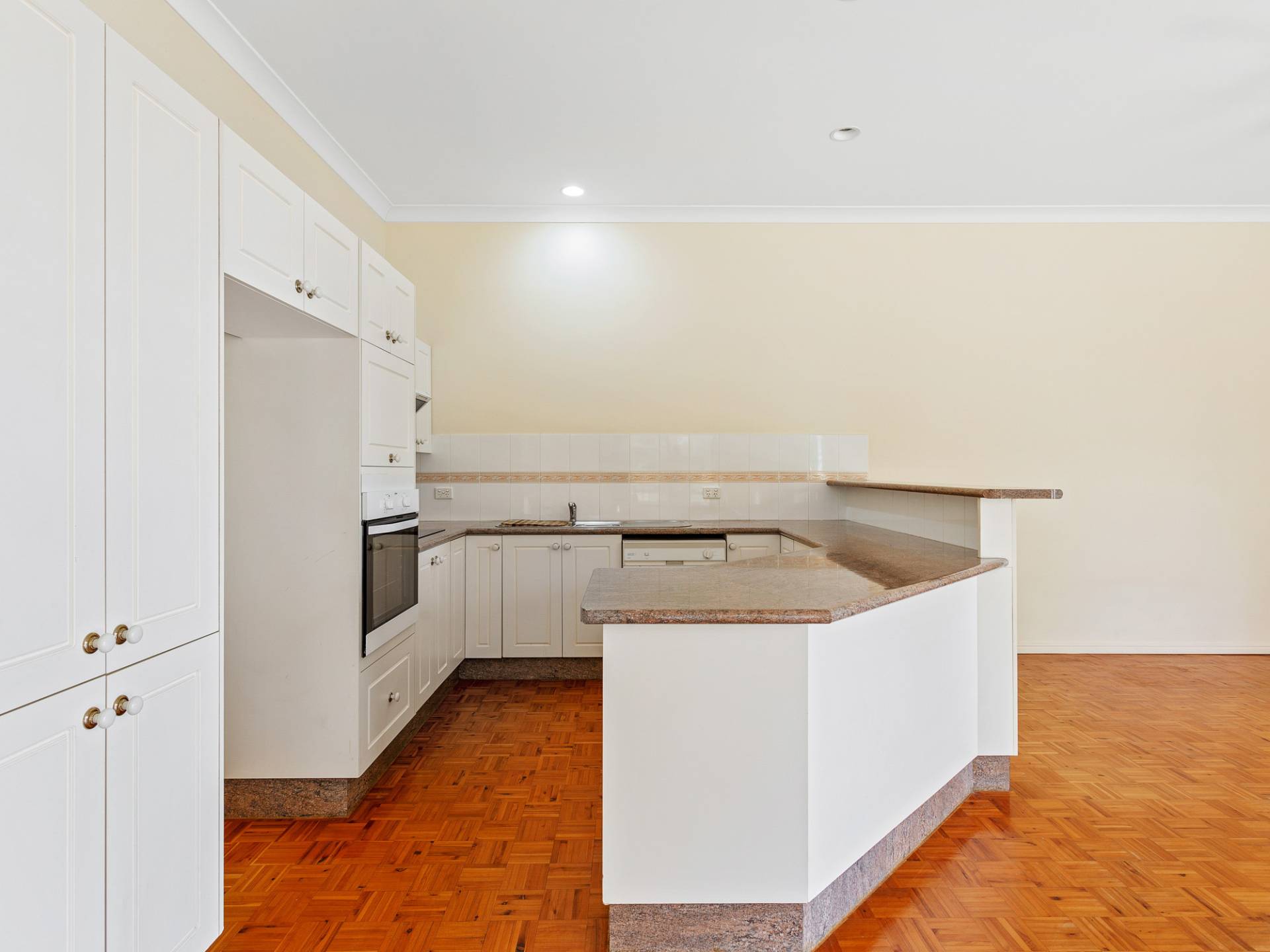 • Good sized kitchen with a near new wall oven and ample storage