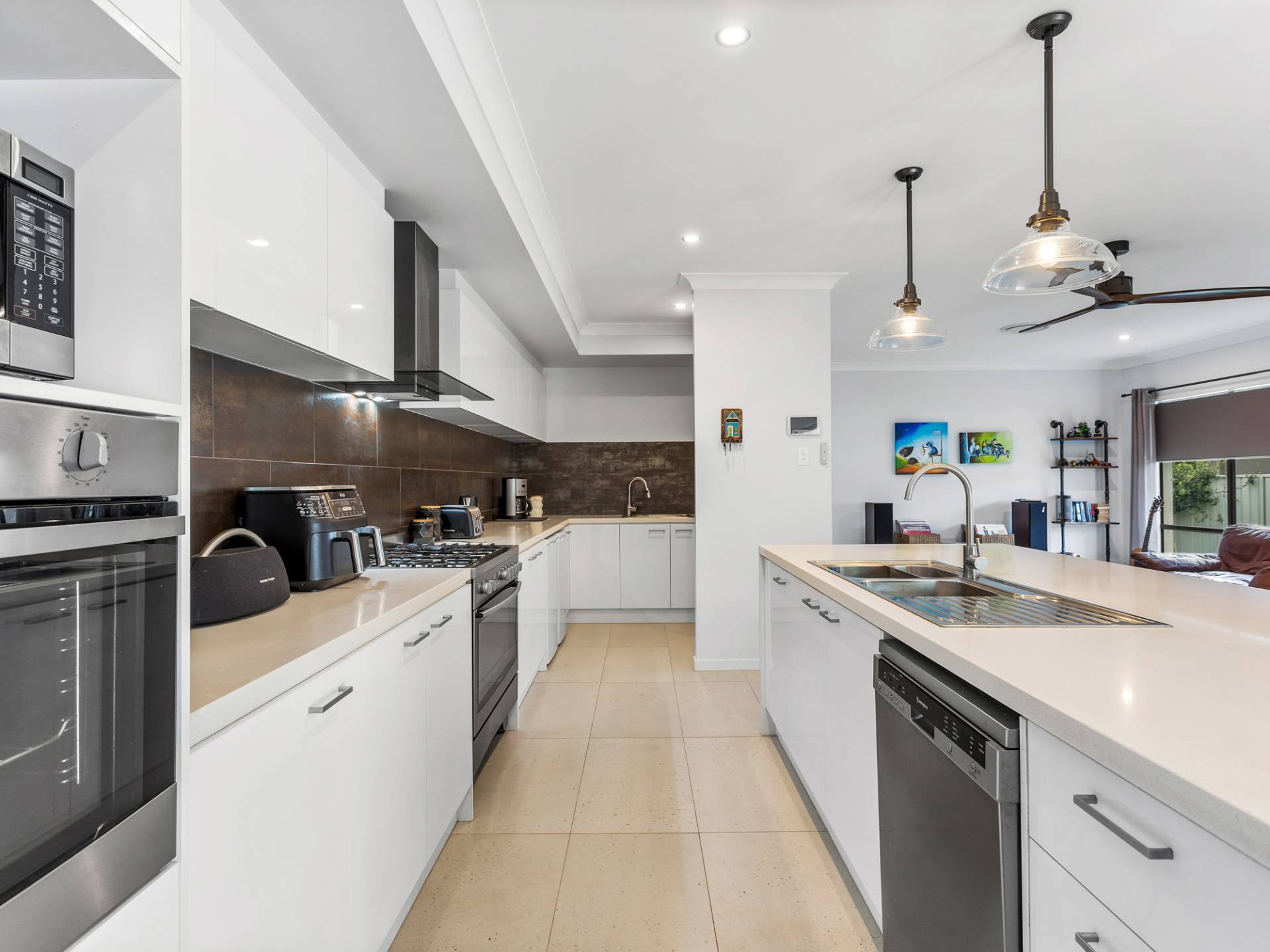 The large open living and dining area makes the most of the connection with the generous walk-through galley kitchen, centrally located for entertaining and complimented by a large bench with waterfall ends and Butler’s Pantry.