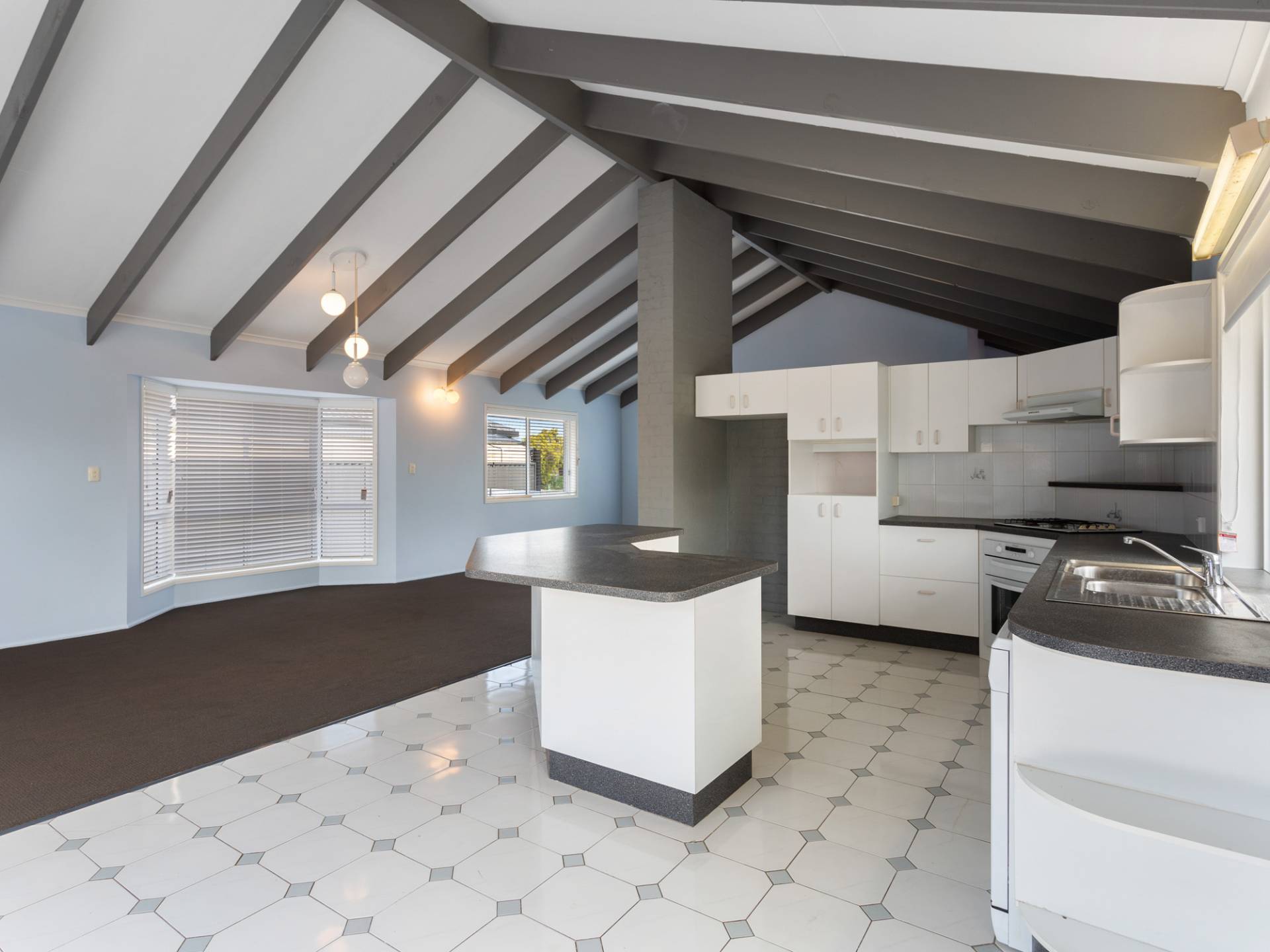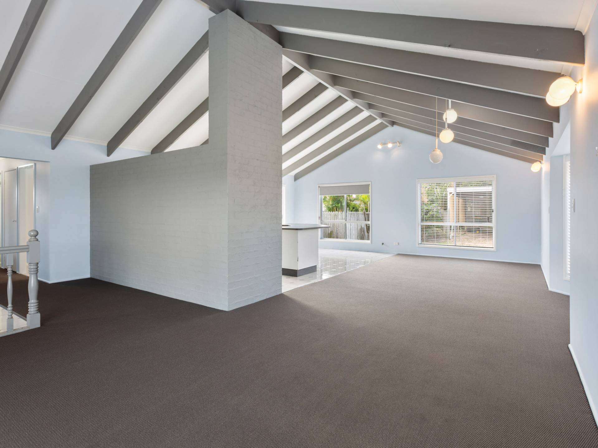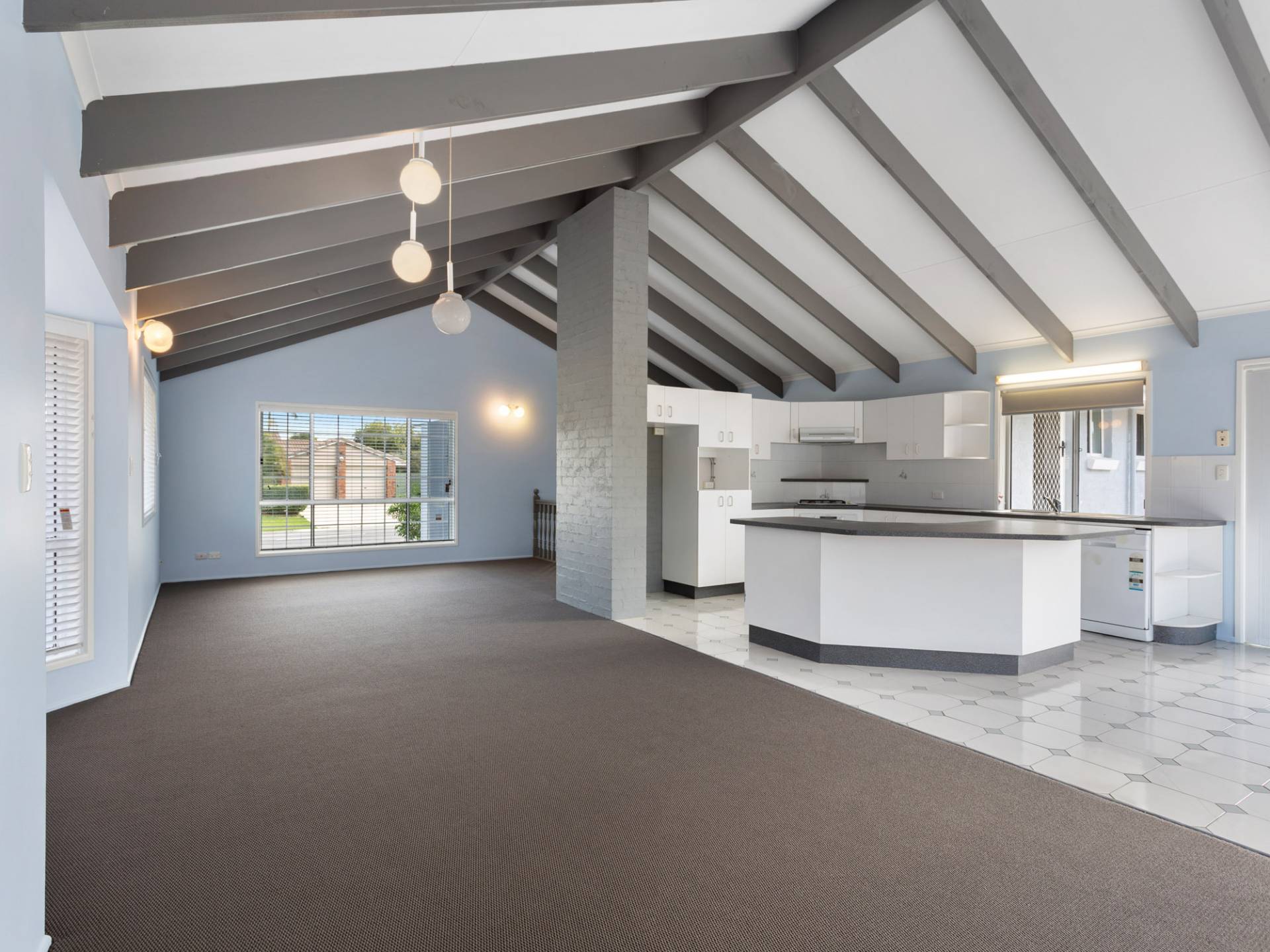 Without doubt, the feature of the home is the cathedral ceilings in the main living space. The open plan living space is accentuated by the grandeur of the ceiling height, giving two living areas (formal lounge and a family room area) along with the open plan kitchen and dining.