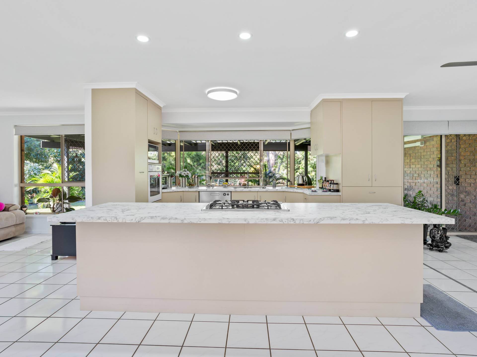• Power connected to each end of kitchen island bench, which also boasts a five burner gas cooking range