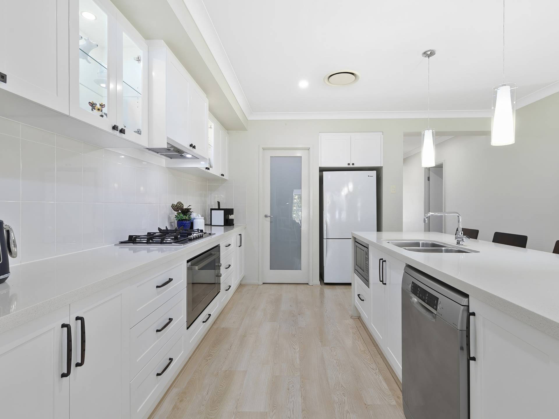 The home is centred around its well-appointed entertainer’s kitchen, featuring an abundance of Caesarstone bench and cupboard space, beautiful cabinetry, a breakfast bar, quality appliances including 5 burner gas cook top, electric oven, exhaust fan vented to ceiling, Bosh dishwasher and built-in microwave.  To add to the joy the next owner will experience in this stunning kitchen is a super large walk-in pantry.