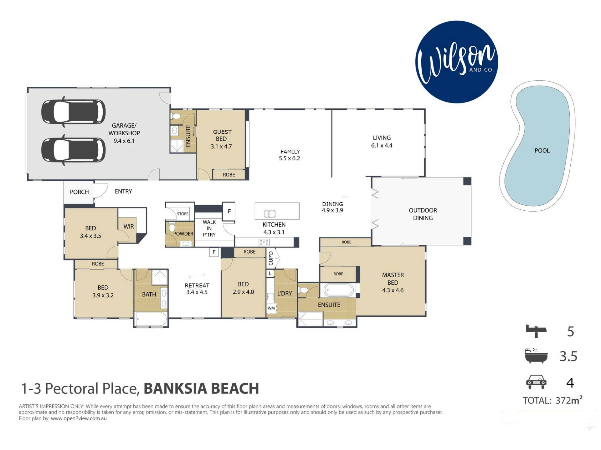Fully ducted zoned air conditioning throughout, a large beautifully appointed master suite with resort style ensuite, 3 king sized bedrooms, plus a king sized guest bedroom with its own ensuite.  In total, 5 bedrooms and 3.5 bathrooms are on offer! All bedrooms are beautifully appointed with plush carpeting, built-ins and quality ceiling fans.