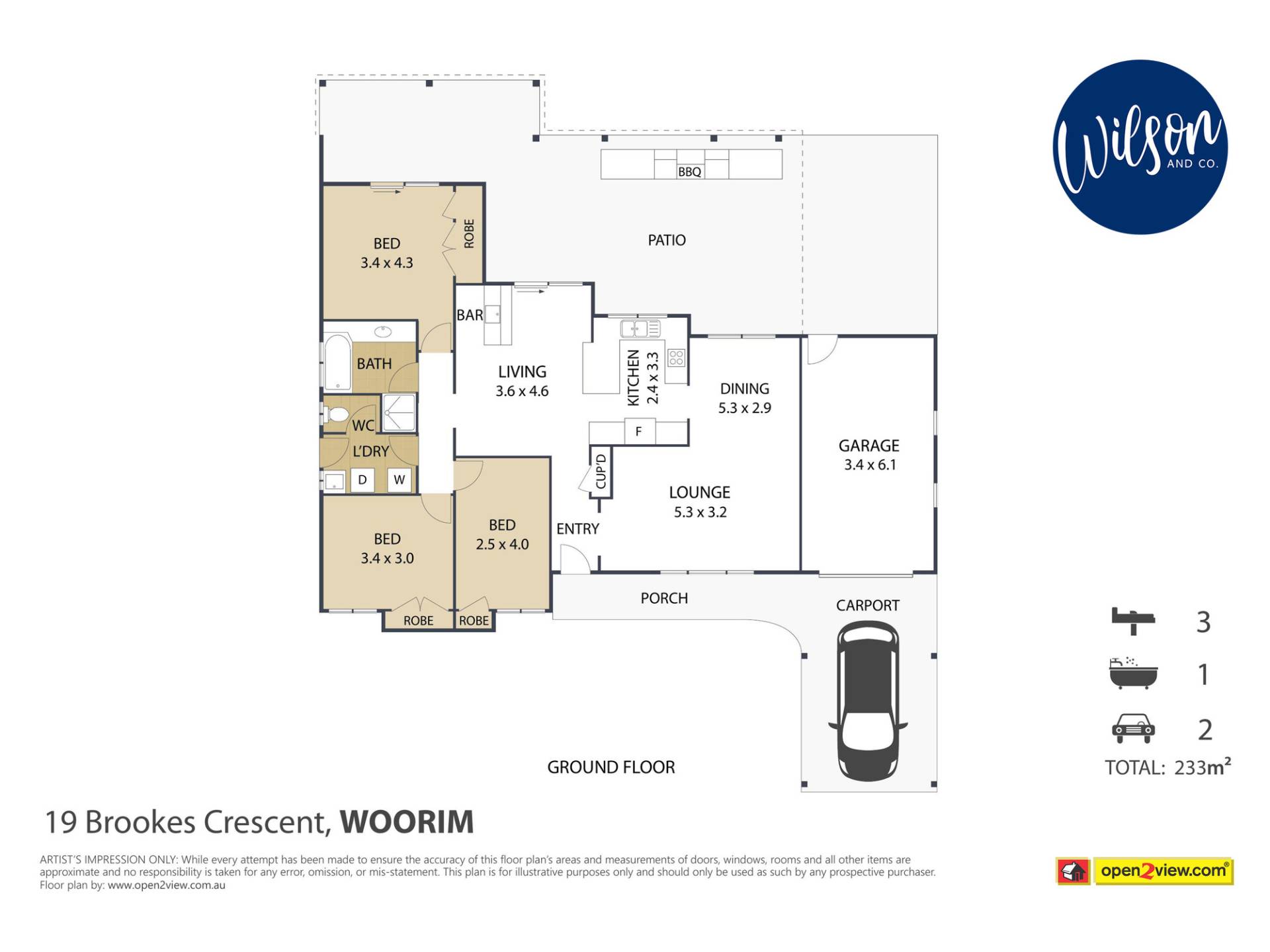 • Bedrooms 2 & 3 with ceiling fans and built in robes