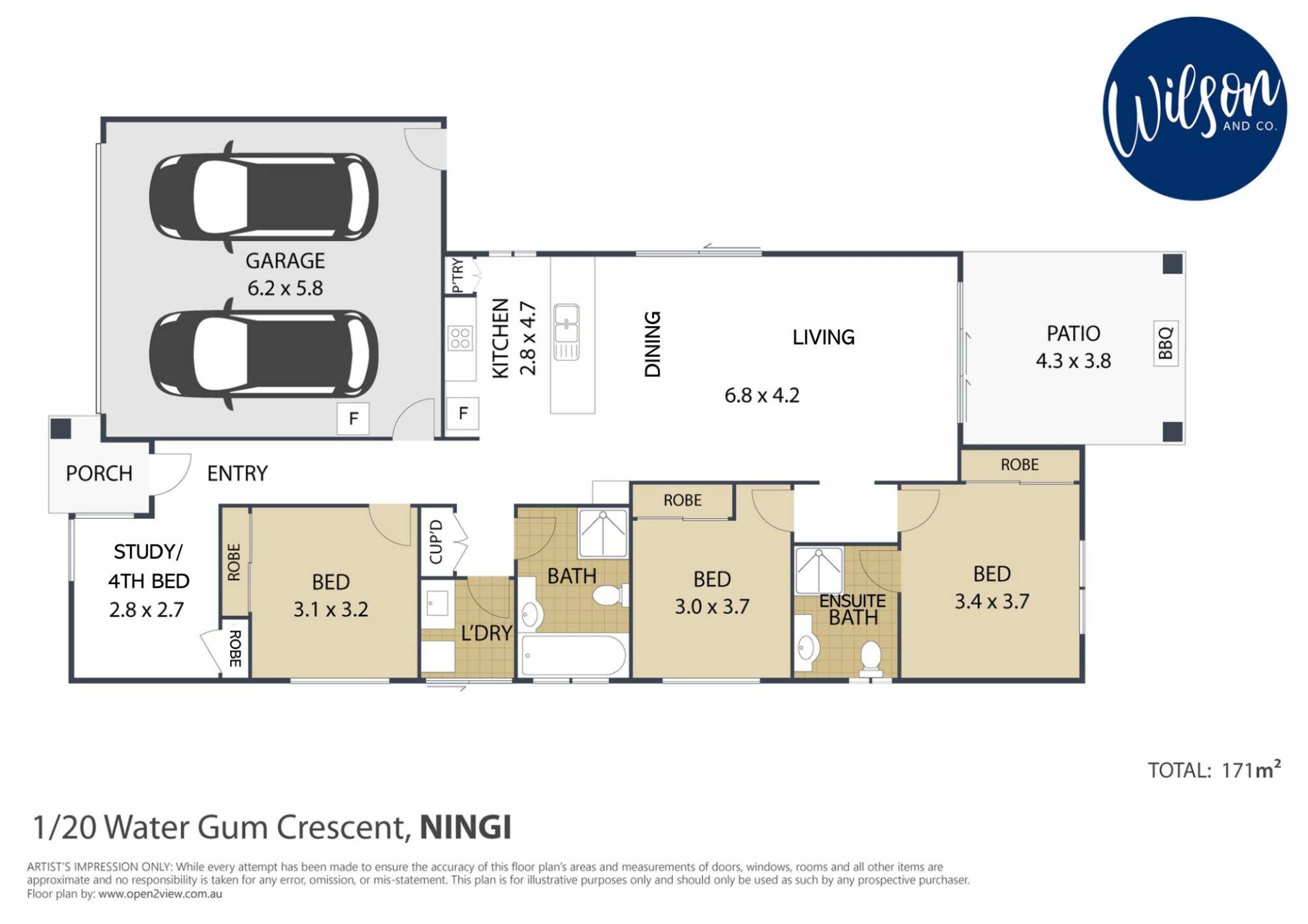Enjoy cool breezes from the open plan air-conditioned kitchen/dining and living. Four bedrooms each with a neutral palette, the 4th could double as a home office/study as it is located to the front of the home. The Master suite is complimented by a good sized ensuite and all bedrooms have built in robes and ceiling fans.