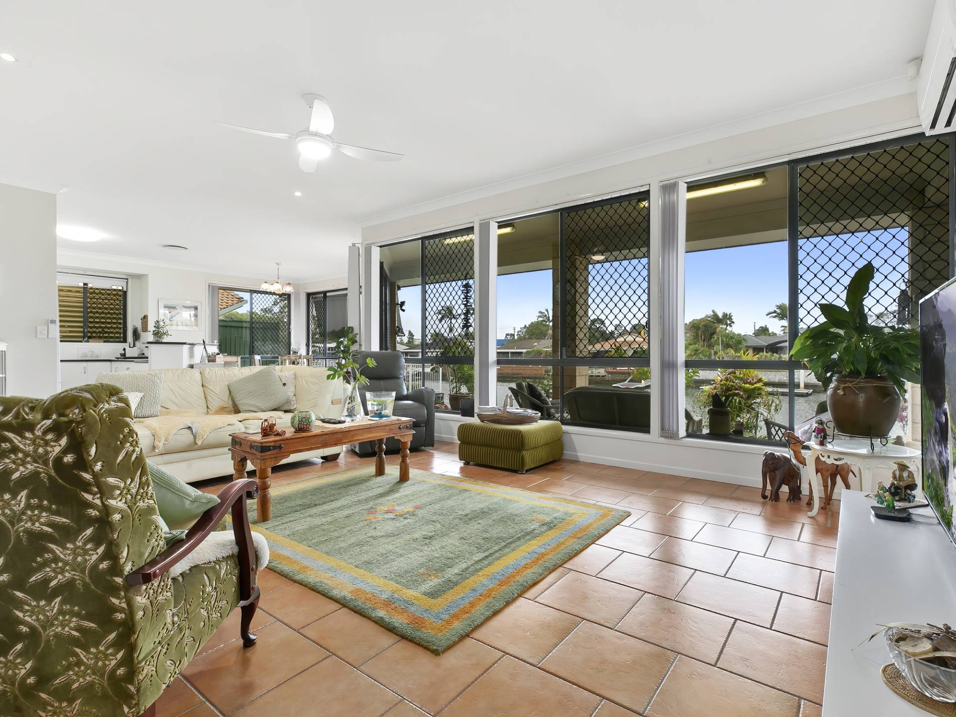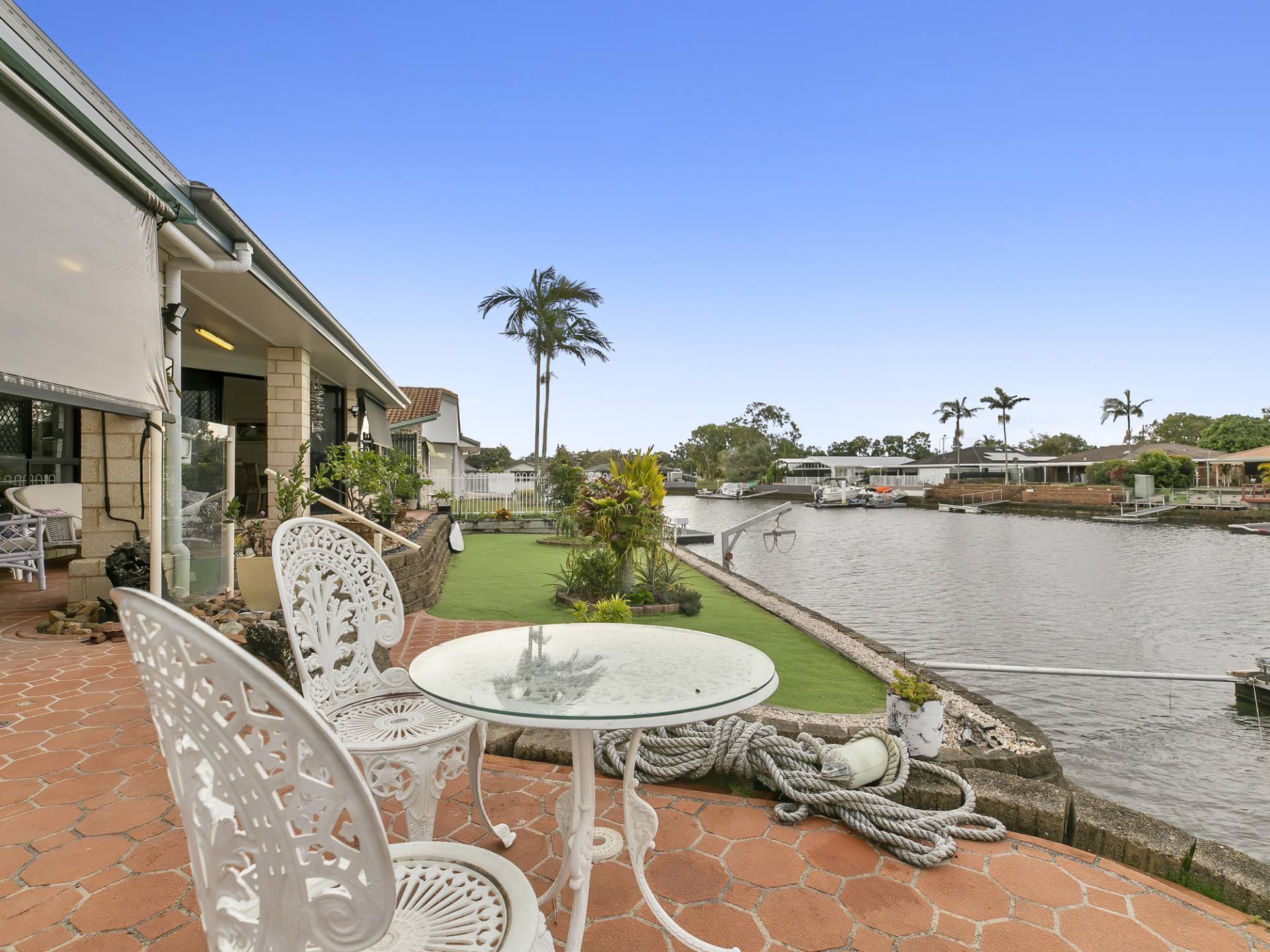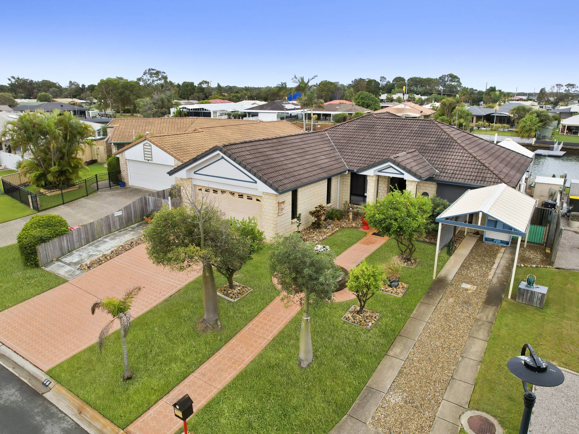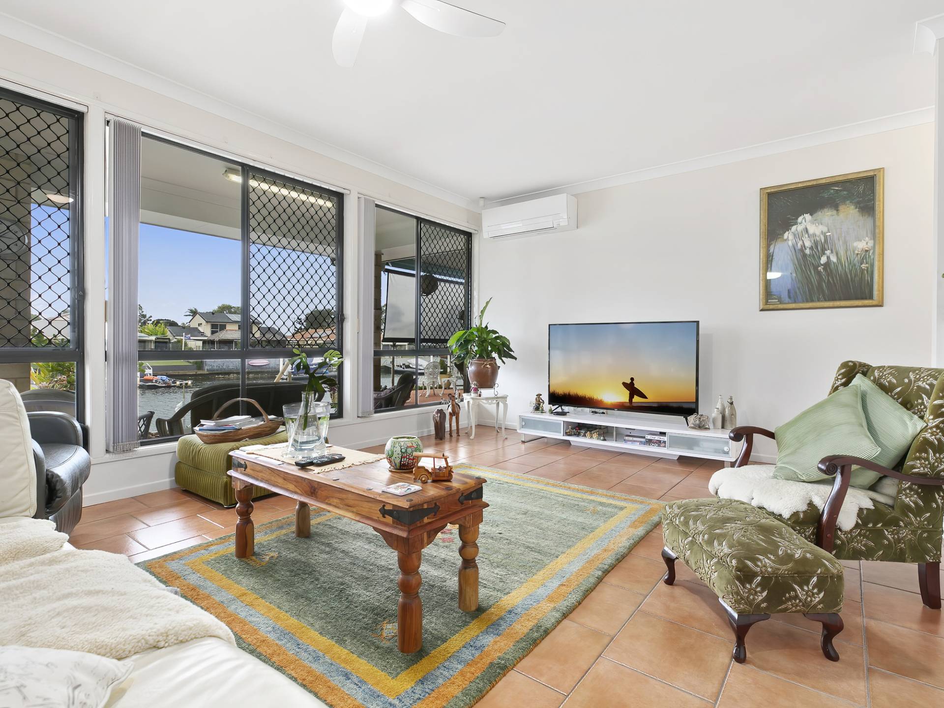 Outdoor entertainment area Water frontage Water access Safety Switch Garage Remote Air Conditioning Solar Power Pontoon Balcony Deck Verandah Terrace/Paved Courtyard Undercover outdoor area Jetty Fenced Low maintenance Outside Spa Level Block Close to school Garden Shed Two Living Spaces Open Plan Living Canal Views Close to shops Plantation Shutters Water Views 5000L water tank Built-in wardrobe Air conditioning Dishwasher