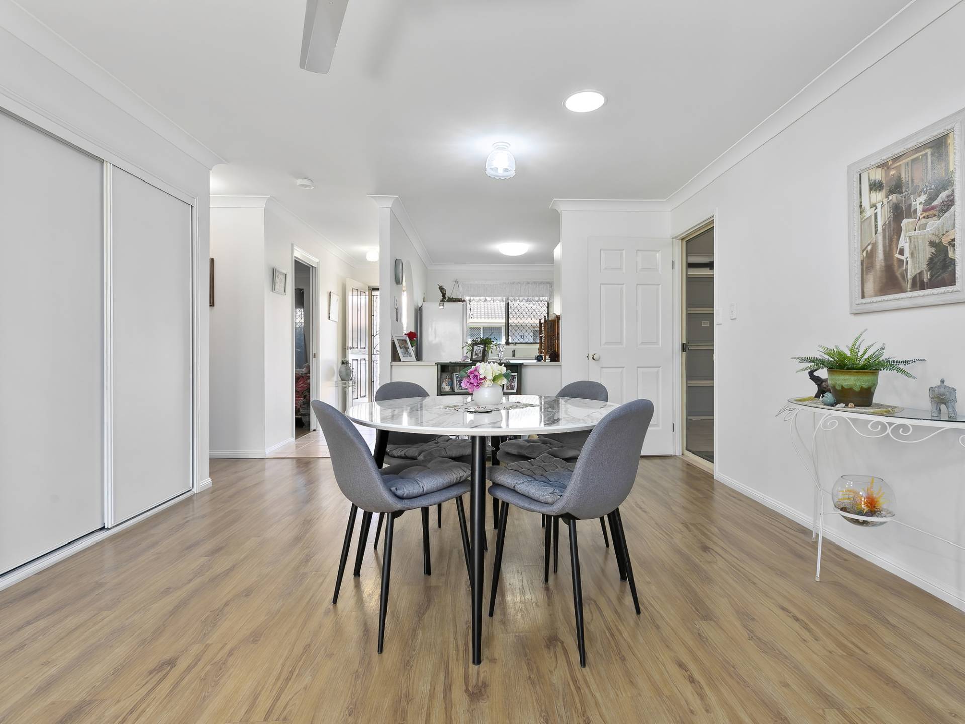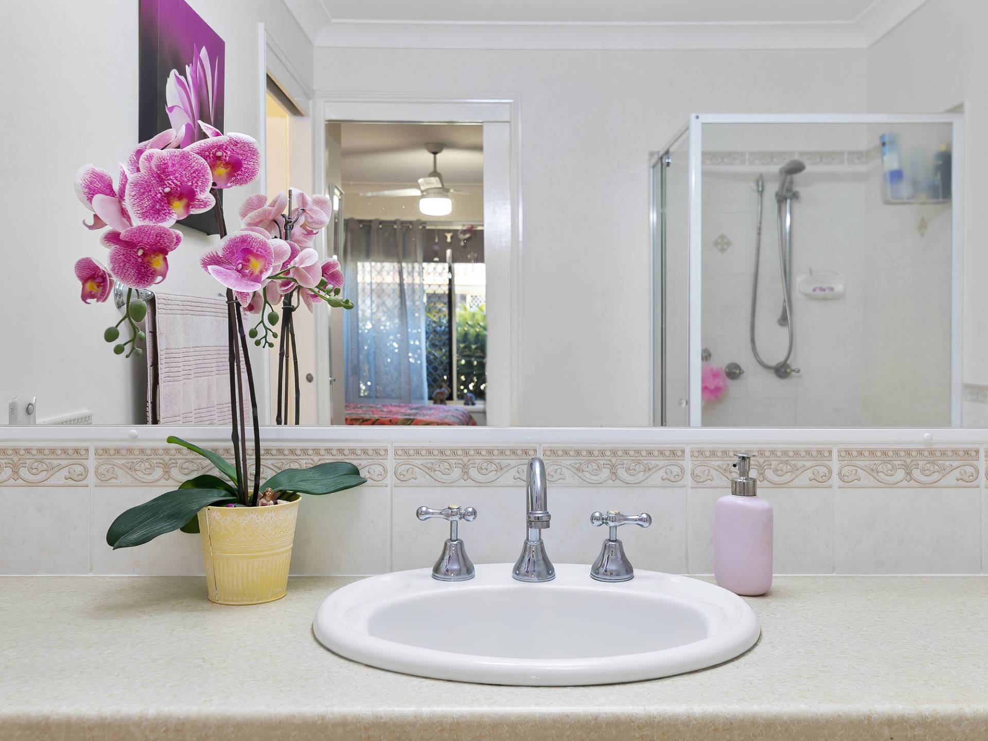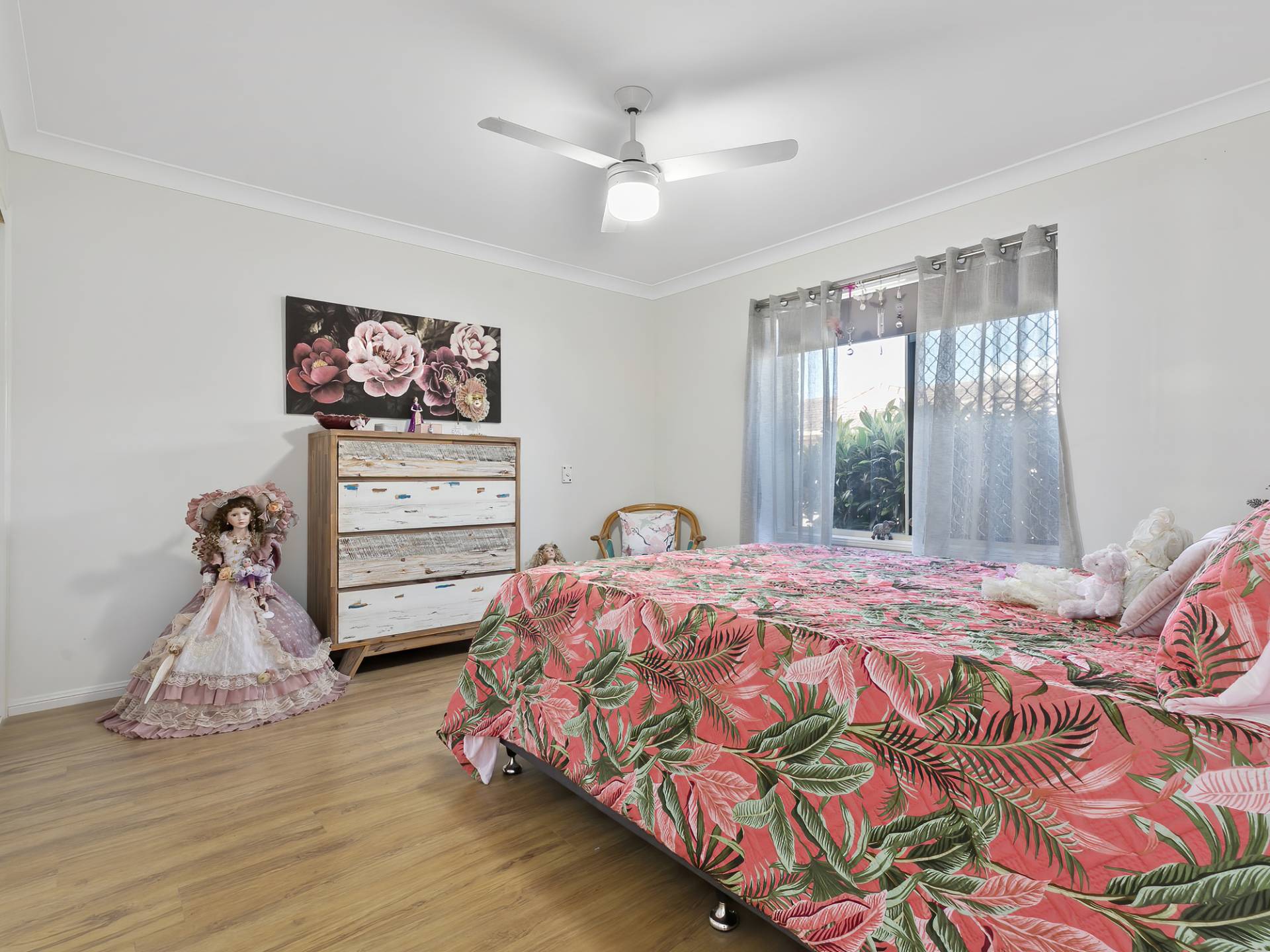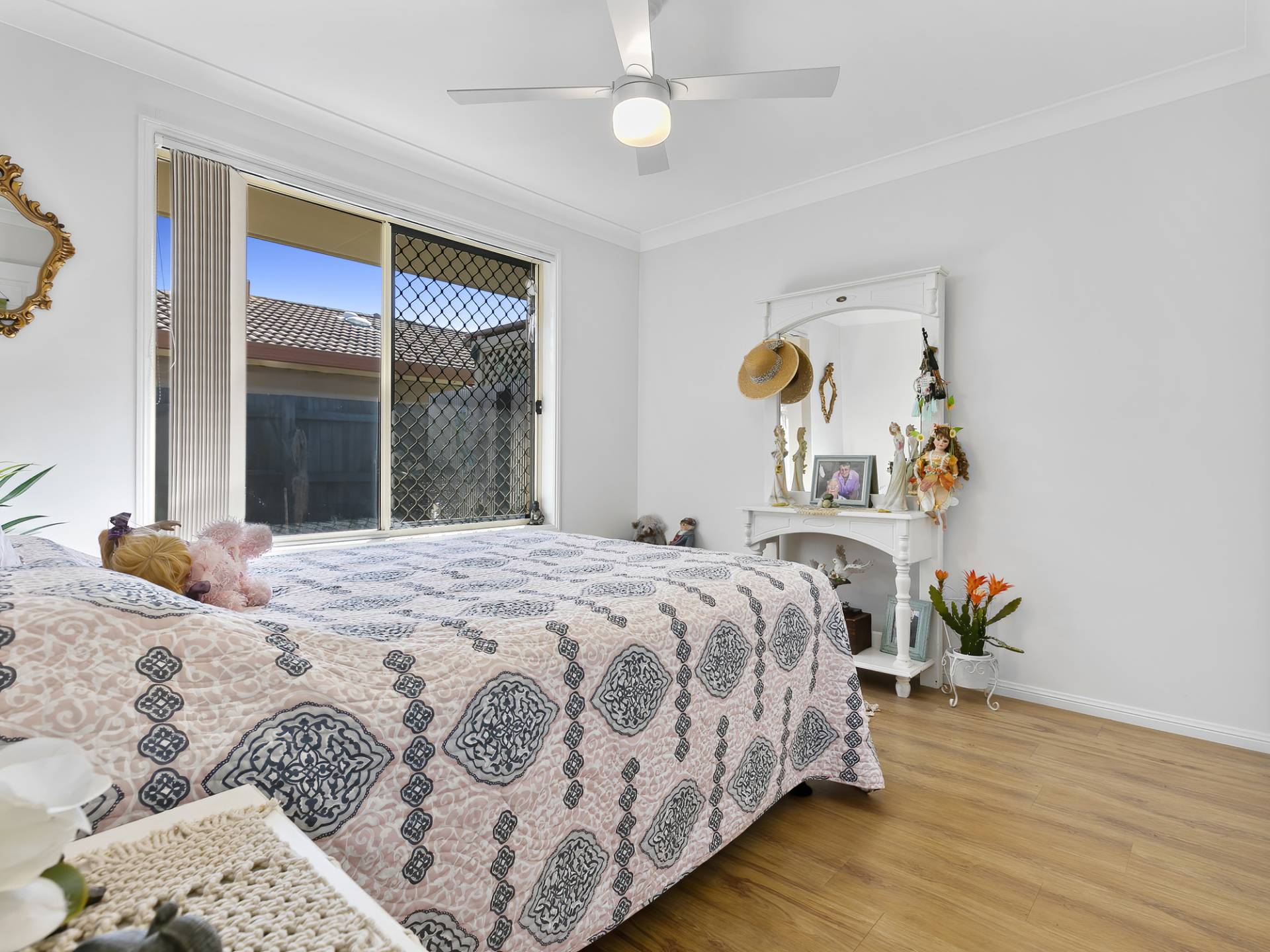 • Master bedroom with built-in wardrobes and ceiling fans is serviced by the two way bathroom