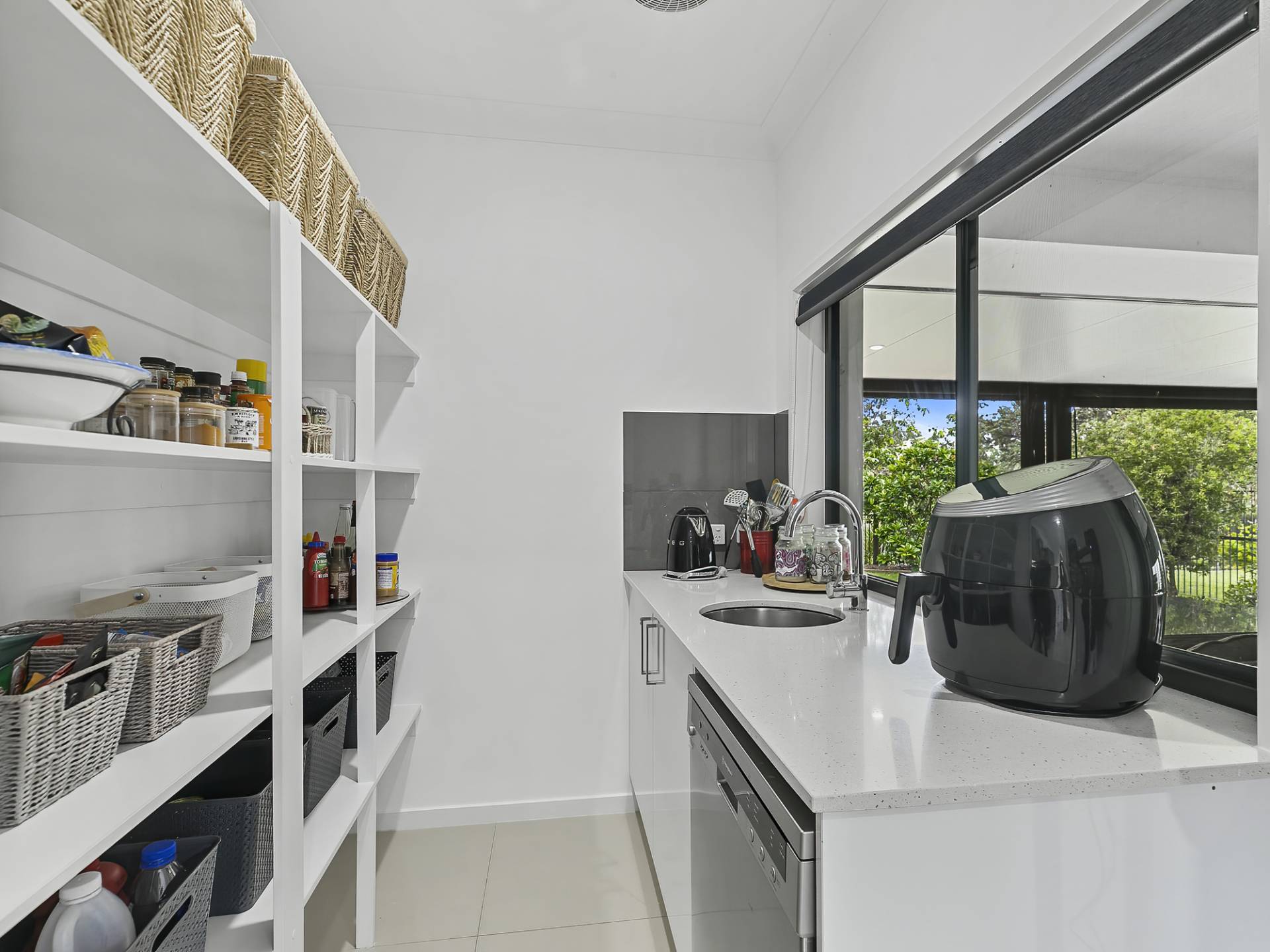 • Versatile scullery with second sink and a dishwasher features a panoramic window with views to the great outdoors