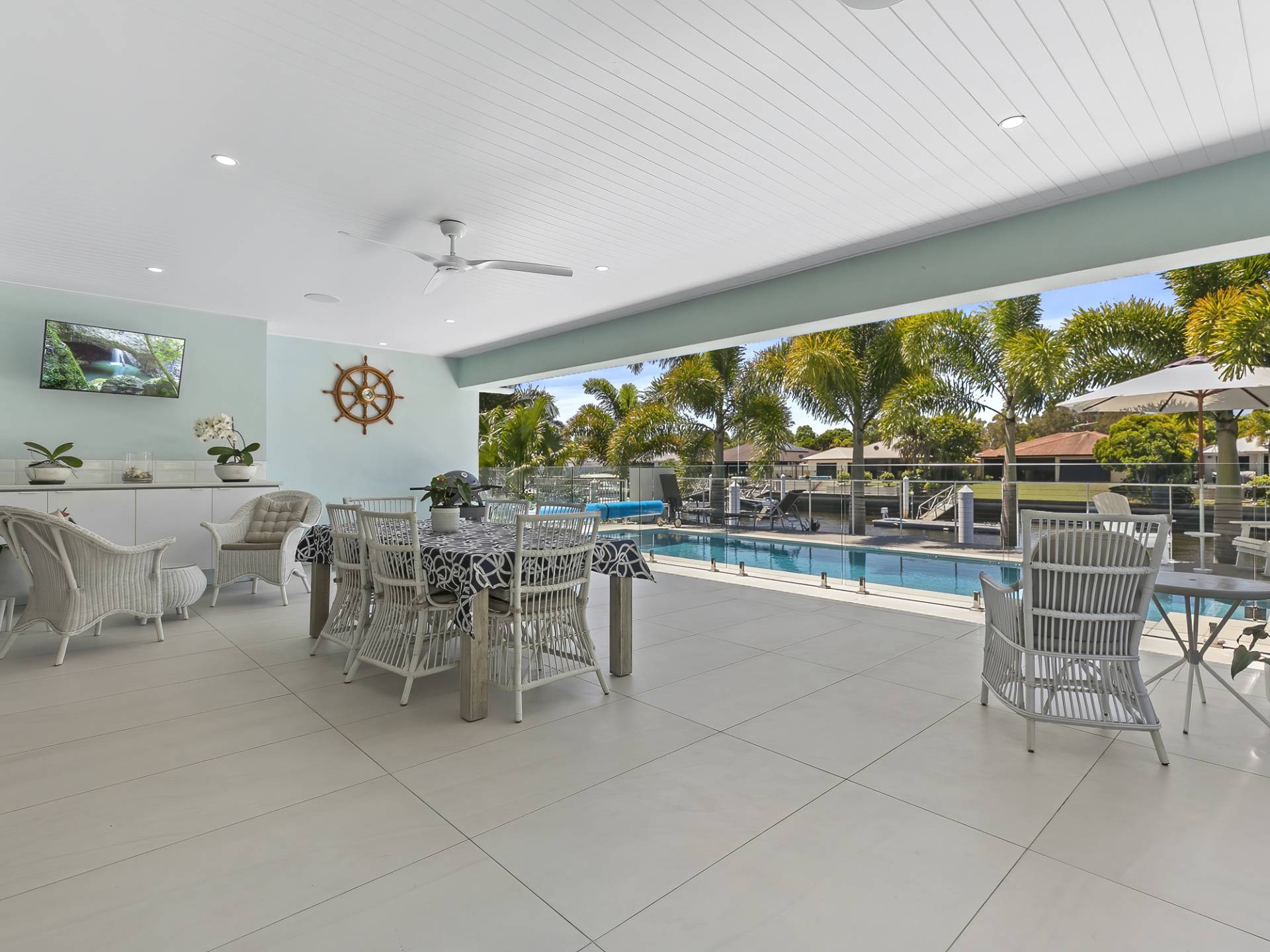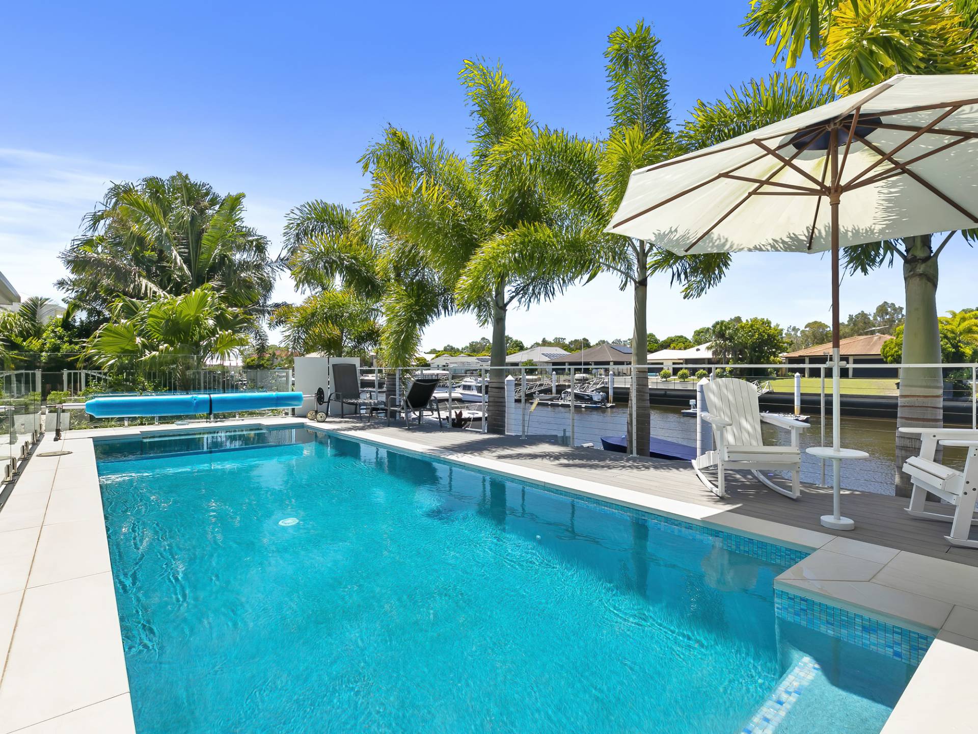 Outdoor entertainment area Undercover outdoor area Water frontage Water access Fenced Safety Switch in-Ground Pool Smoke Alarms Two Living Spaces Ducted air conditioning Secure Parking Canal Views Pontoon Deck Terrace/Paved Courtyard Indoor entertainment area Garage Remote Level Block Water Tank Close to school Close to beach Solar Power Security Screens Garden Shed Open Plan Living outdoor kitchen Water Views solar panels Fully Fenced Workshop Dishwasher Ducted Cooling Ducted Heating