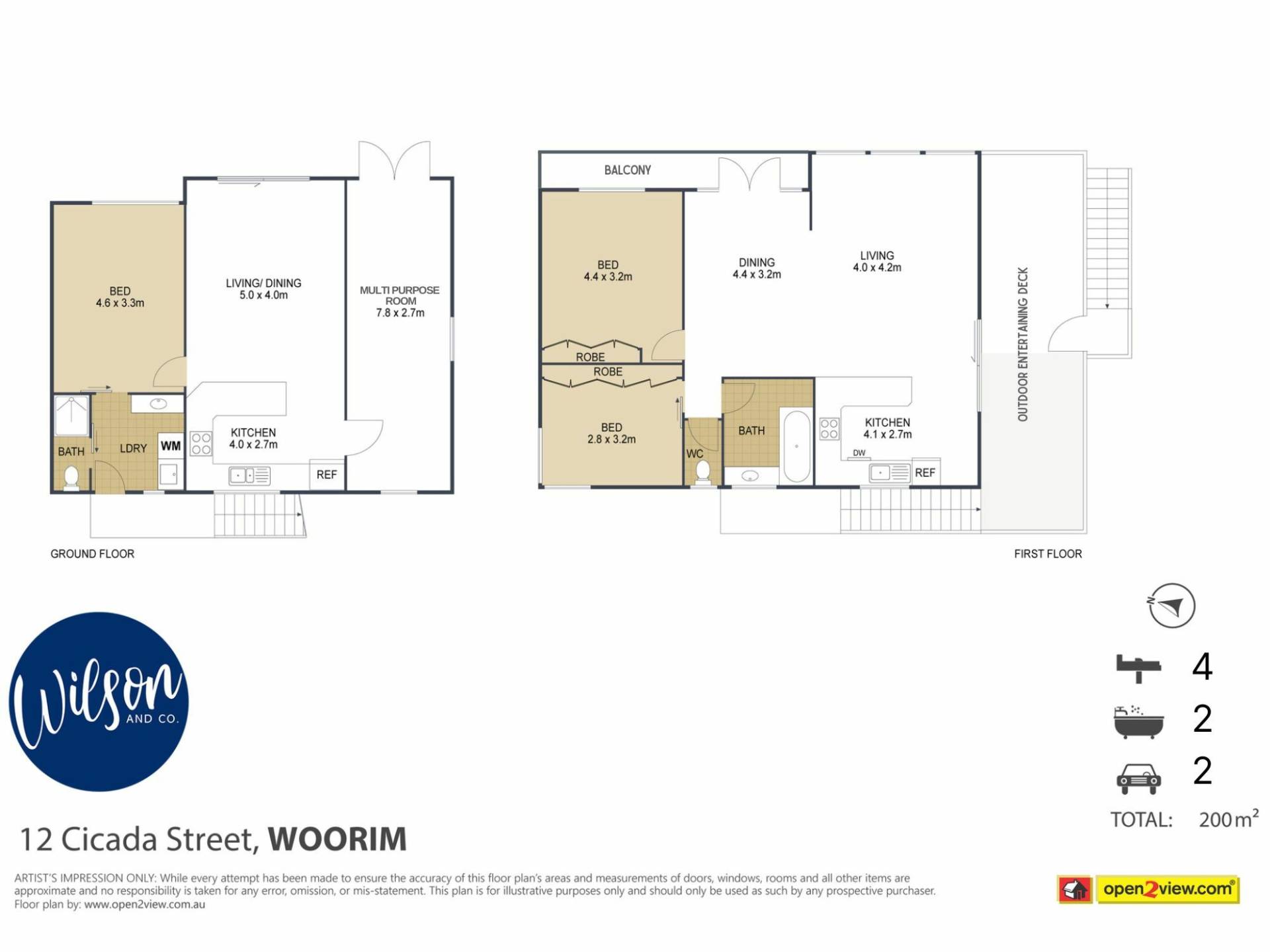 • Two bedrooms (king sized Master), both with built in robes and ceiling fans