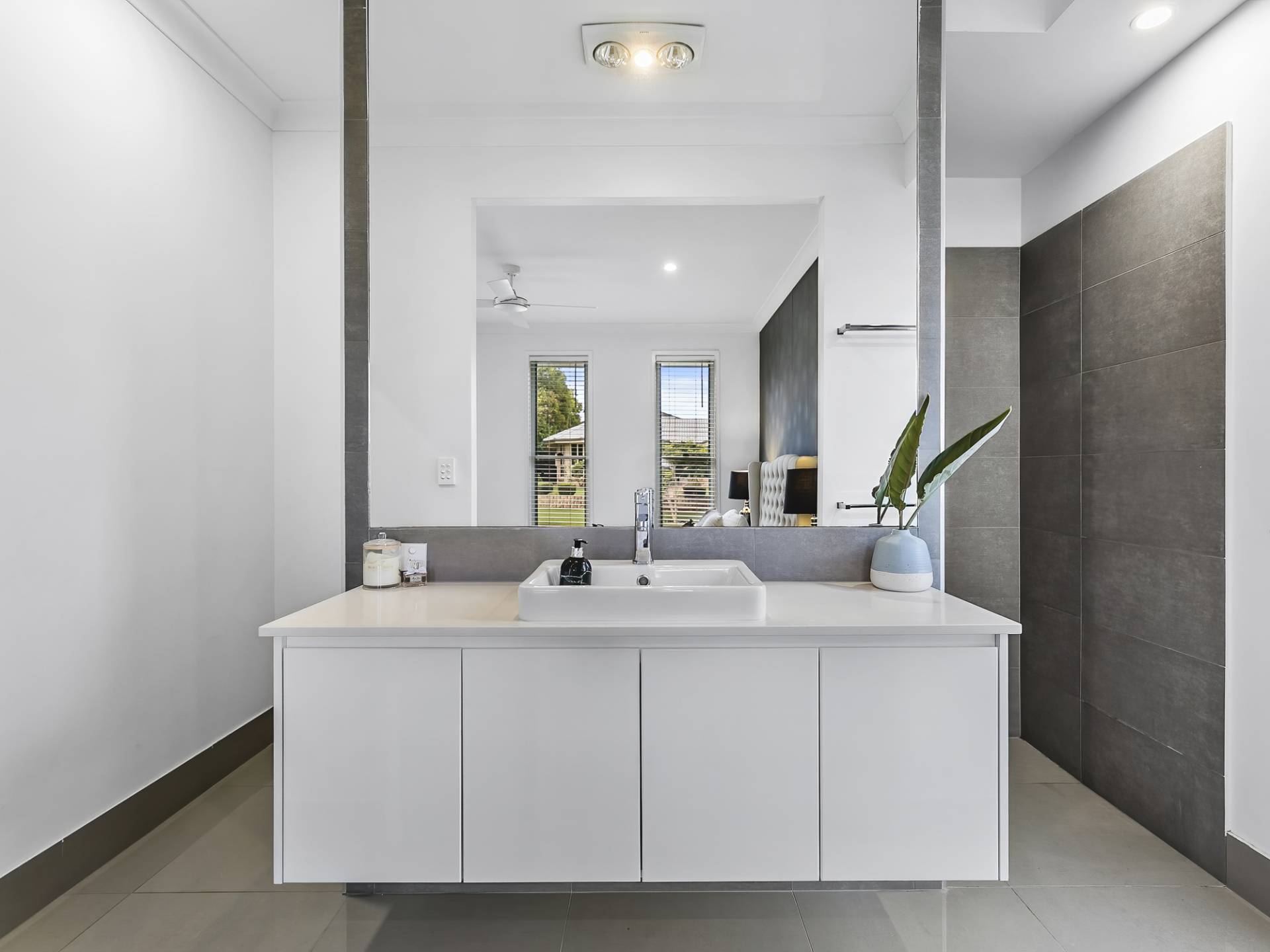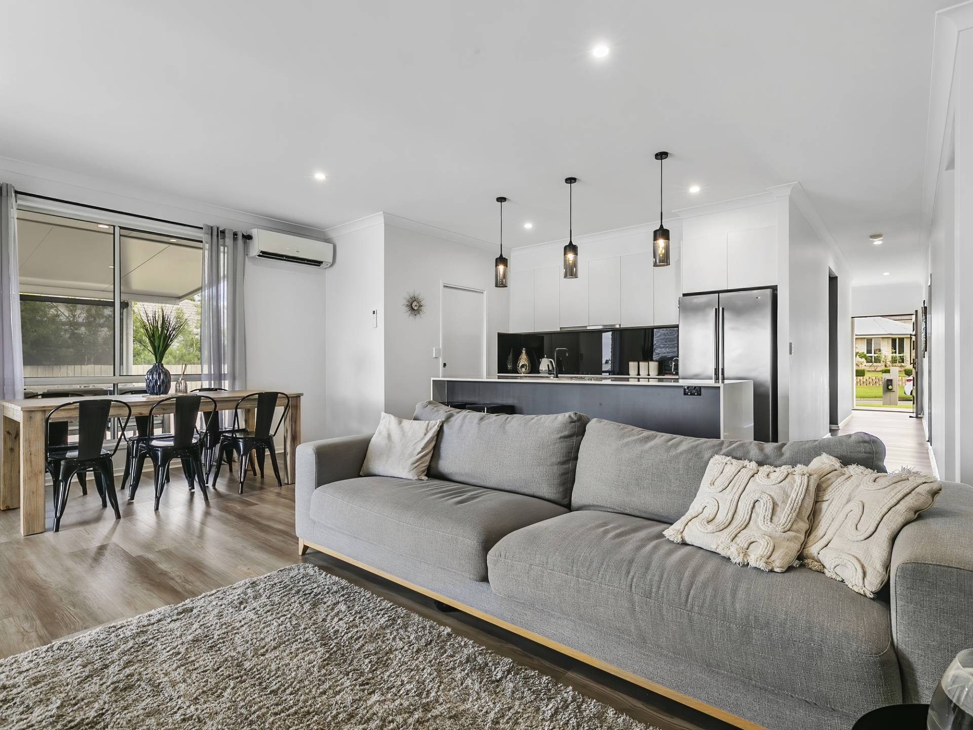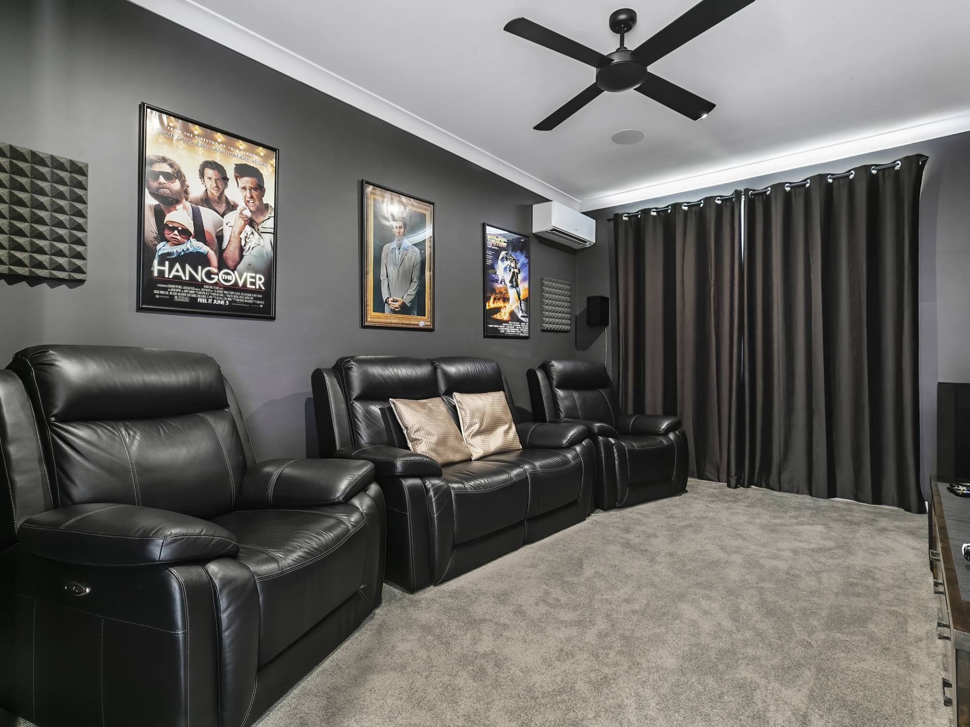 The heart of the home comes to life in the air-conditioned open plan living, dining and kitchen zone which enjoys views to the outdoor entertaining area and sparkling inground pool.  The dedicated air-conditioned media room is the perfect place to watch movies in comfort.