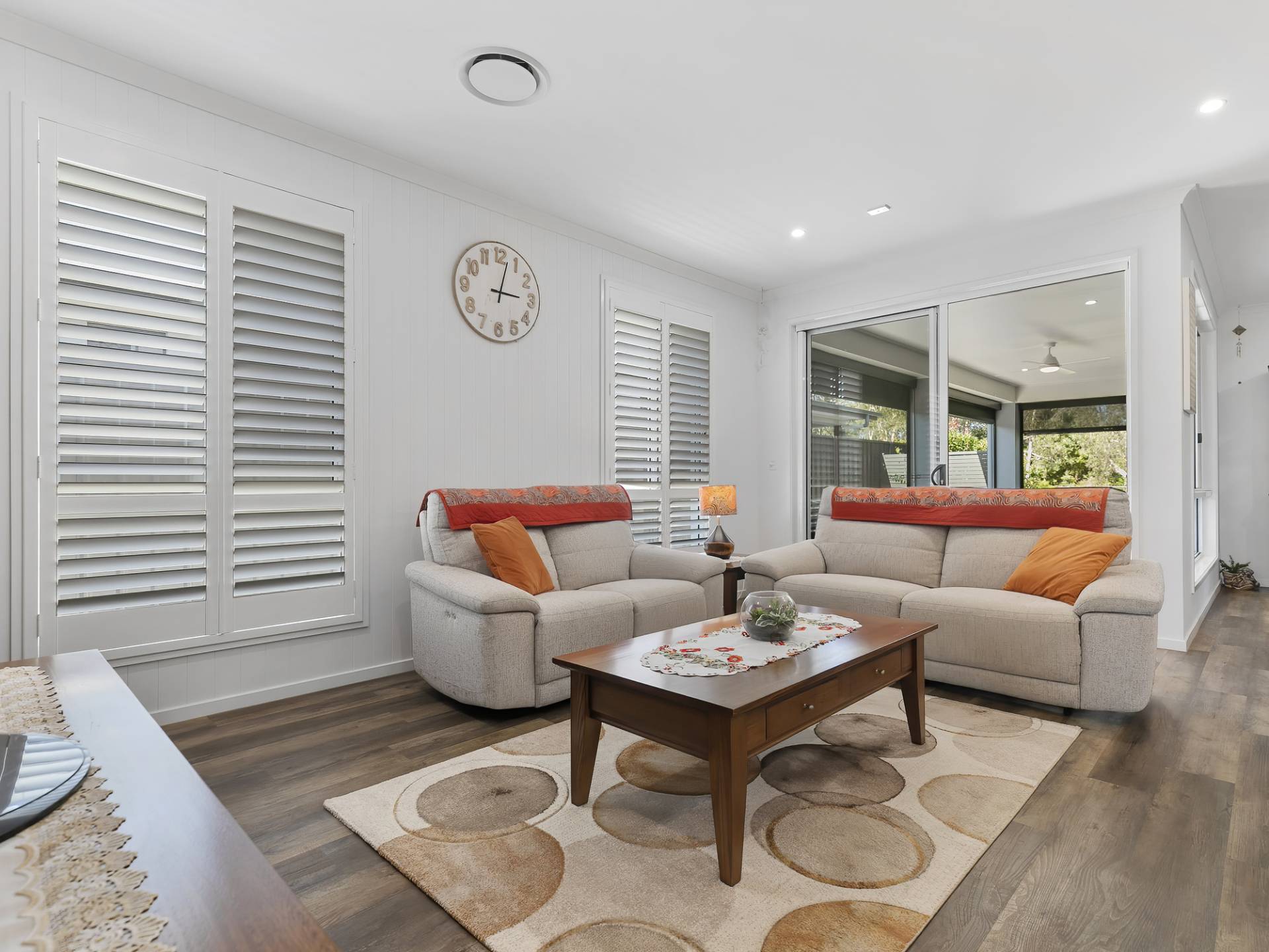 • Family room with Hampton’s style wall panelling