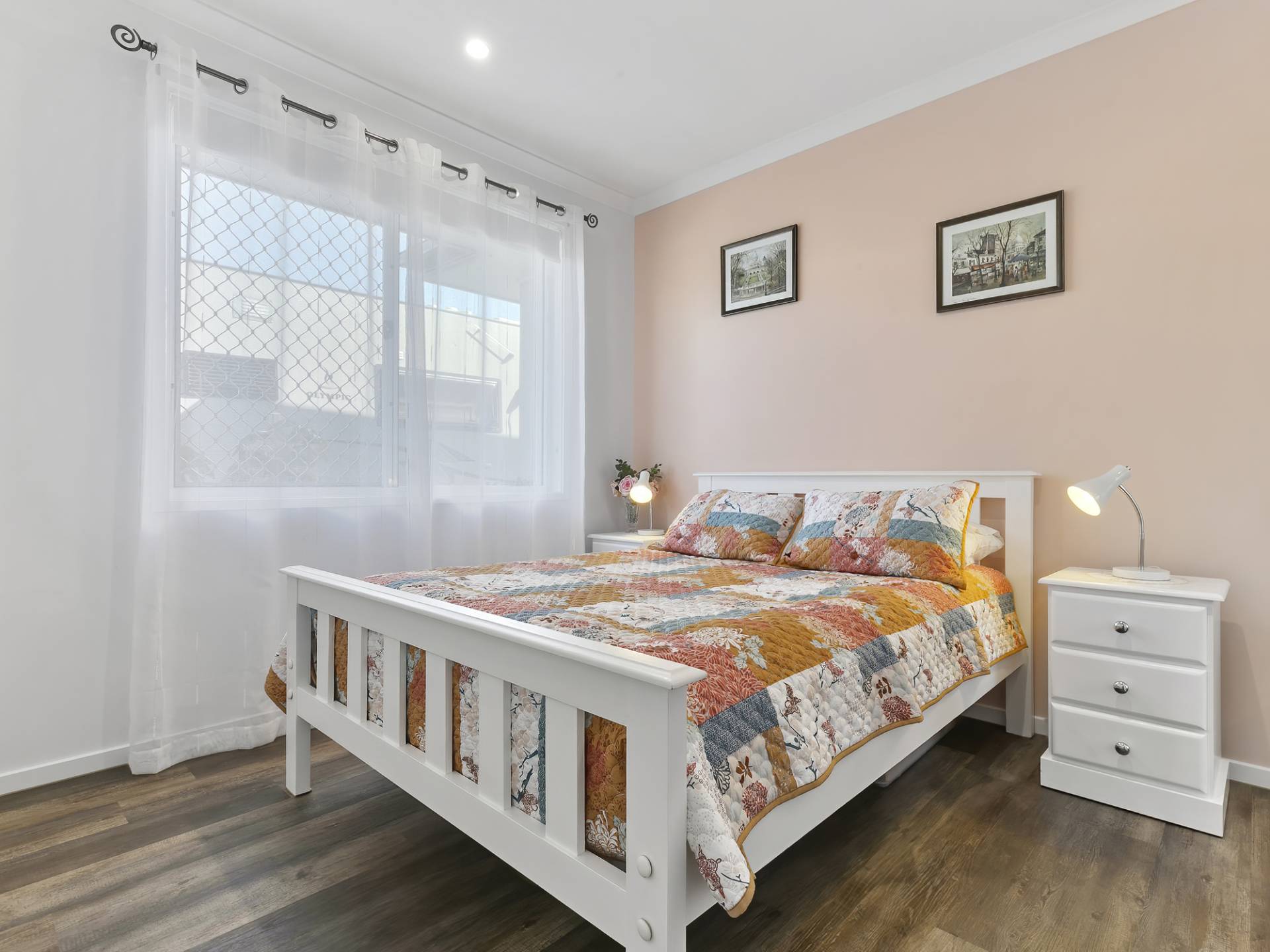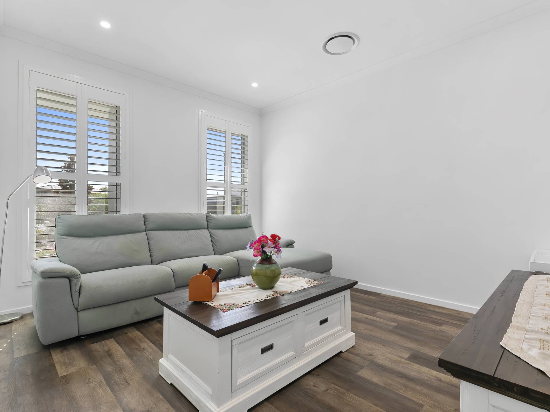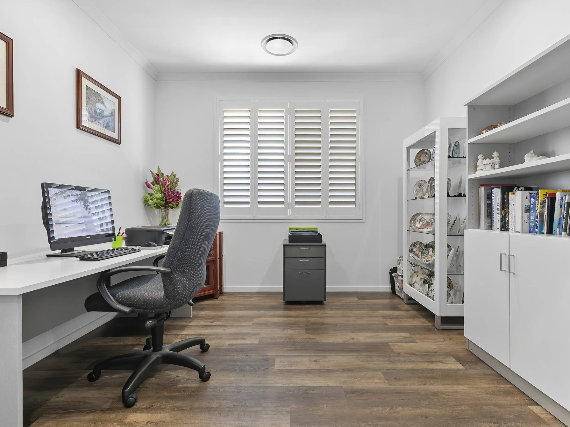 • Crisp white Plantation Shutters