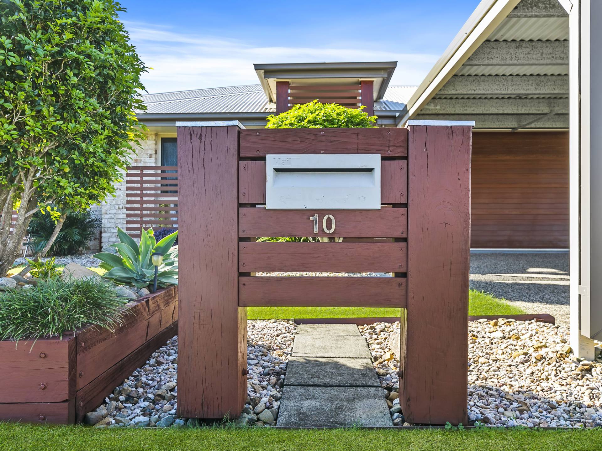 • Appealing front entrance with large feature tallowwood posts