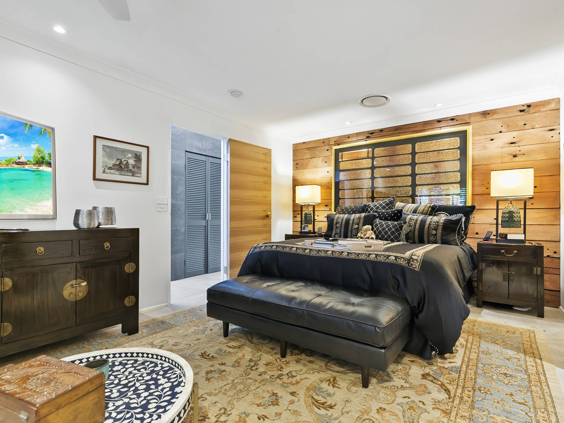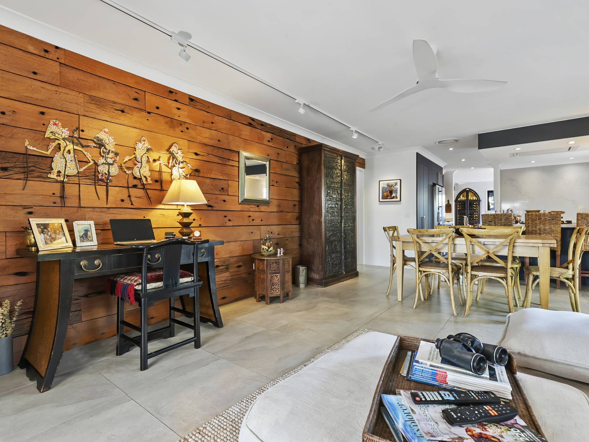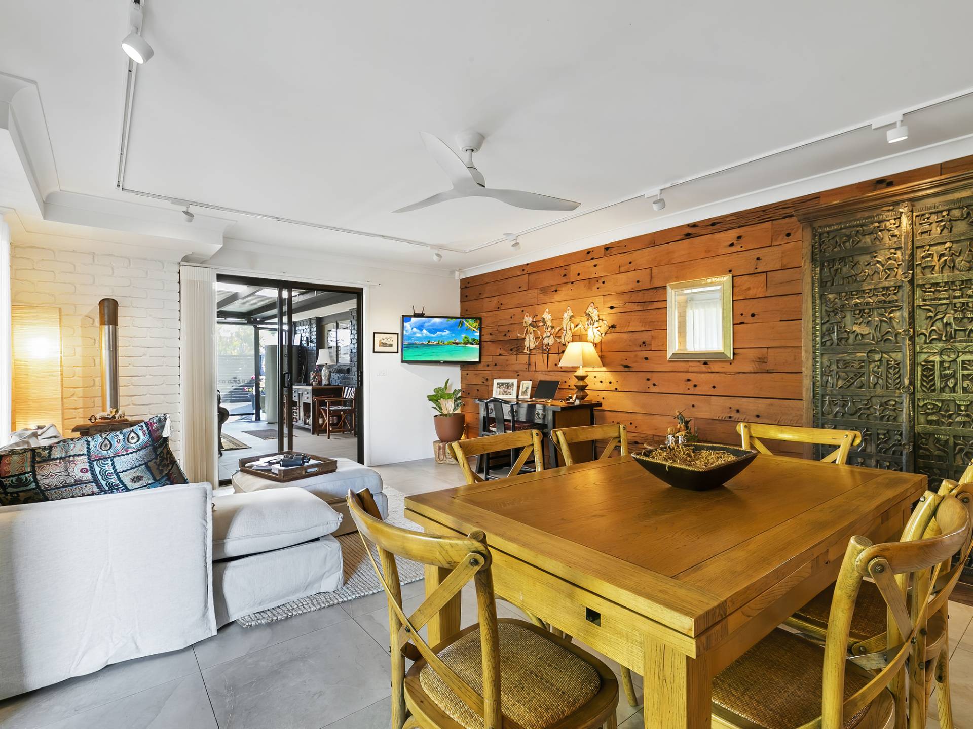 • Feature Redgum wall cladding and DC ceiling fan