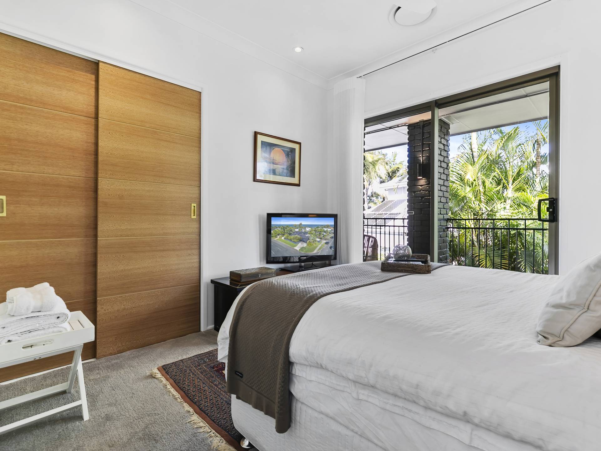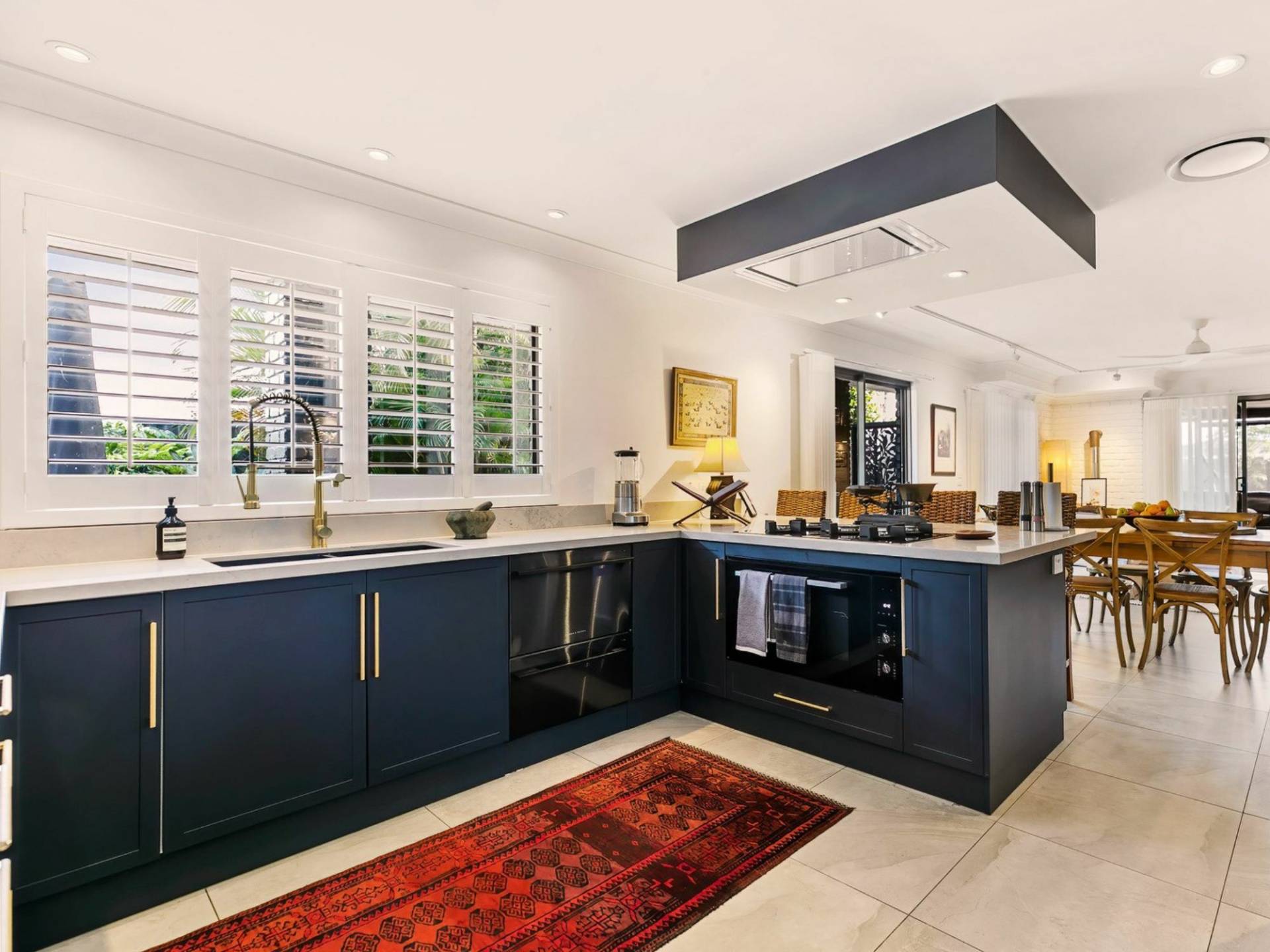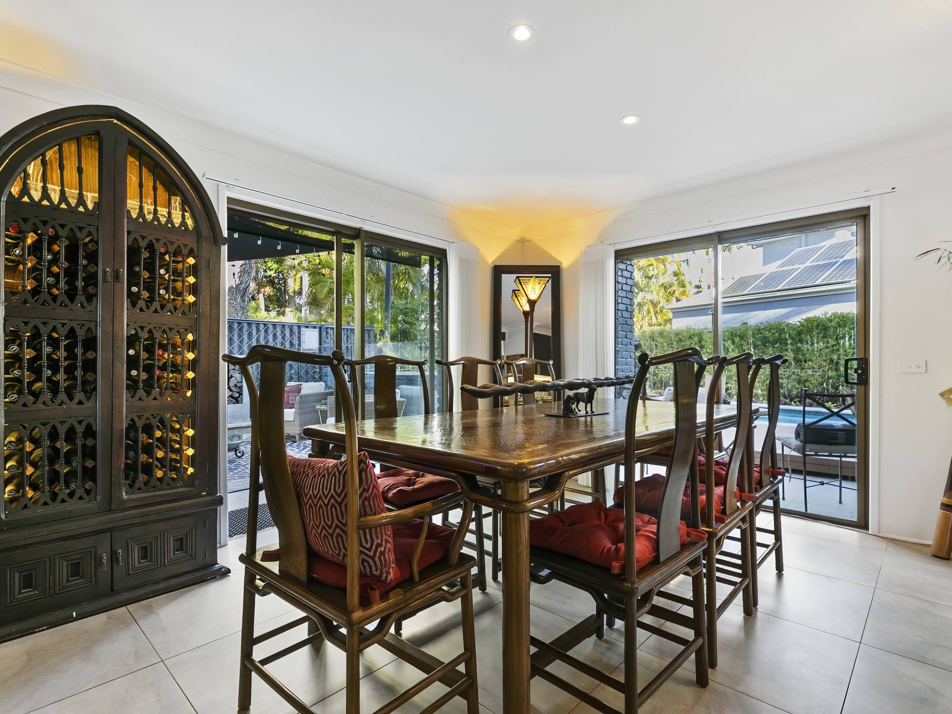 • Bedrooms 1, 2 and 3: Views to the pool and all new built-in robes with Art-Deco wood grain doors, brass handles and new DC ceiling fan