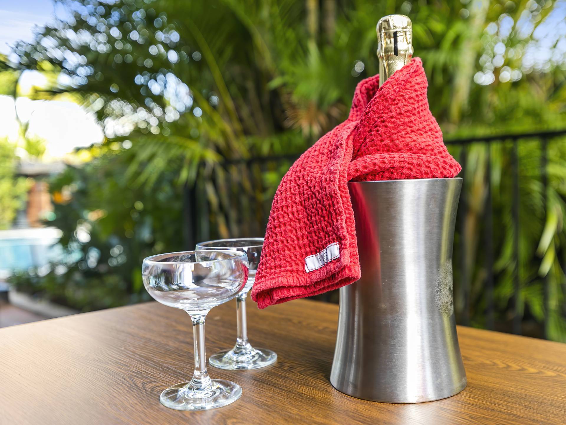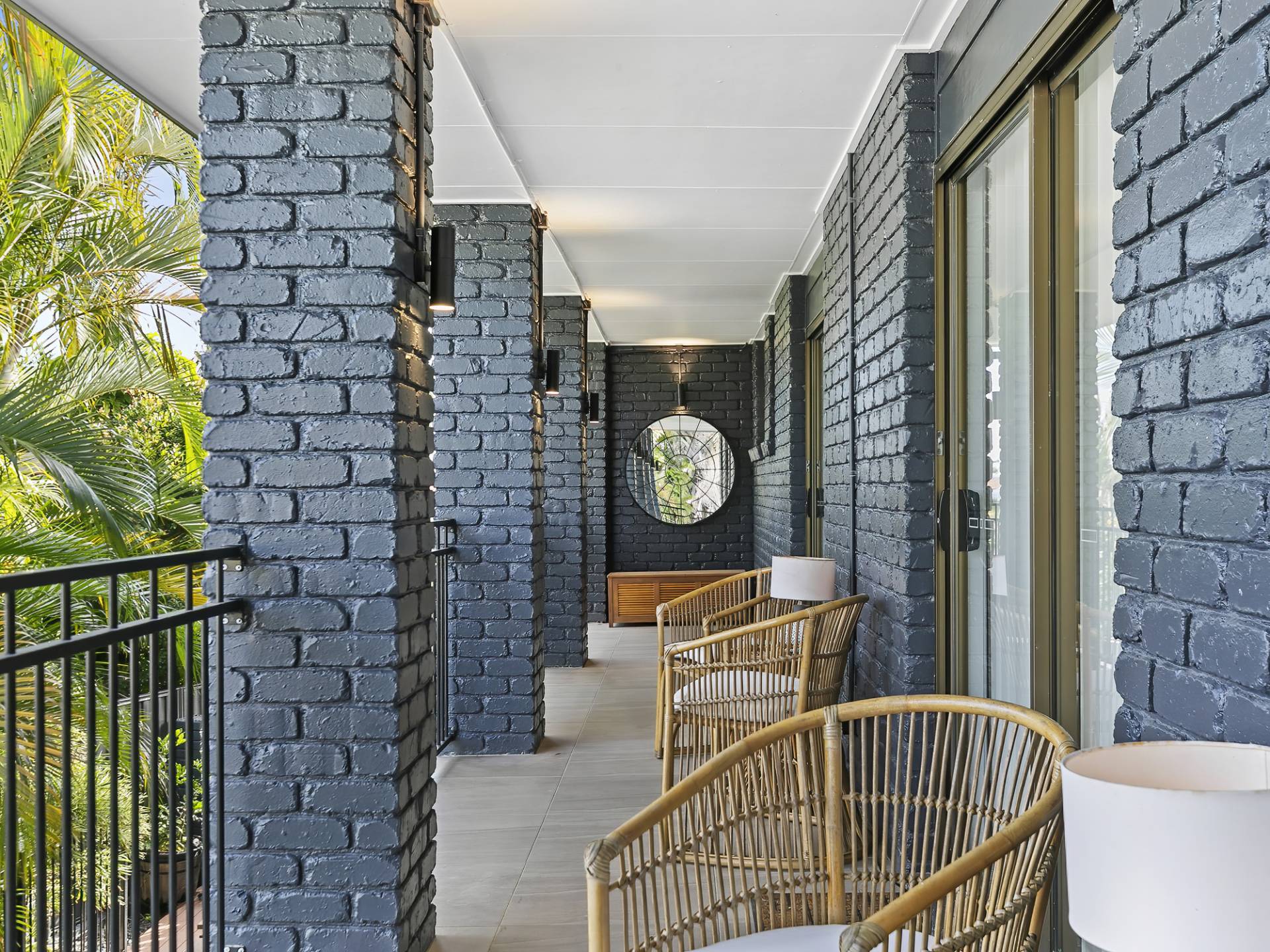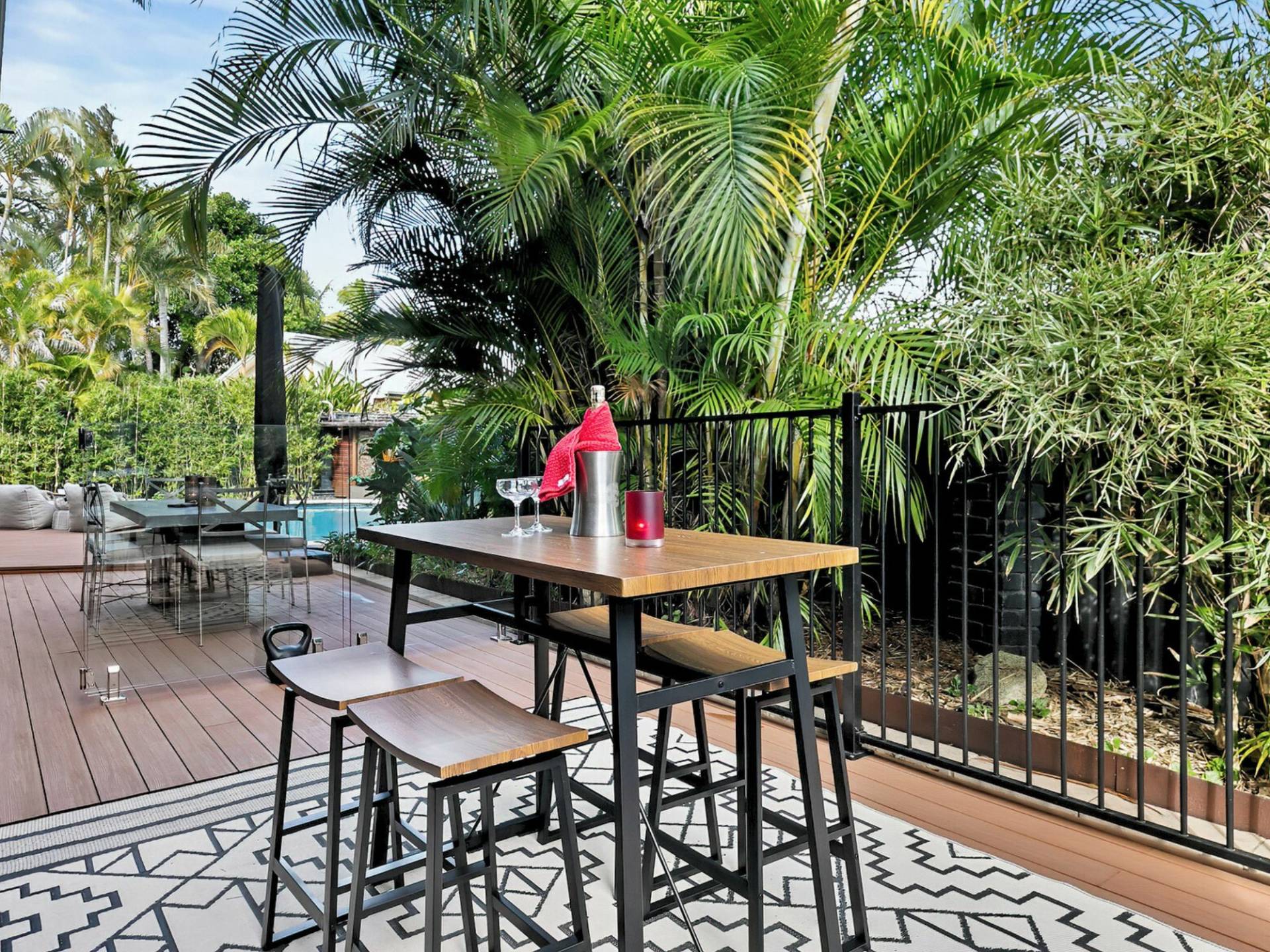 • Bedrooms 1, 2 and 3: Views to the pool and all new built-in robes with Art-Deco wood grain doors, brass handles and new DC ceiling fan