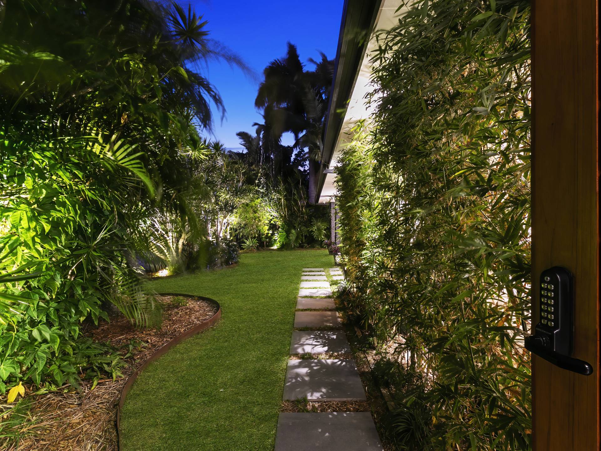 • Auto uplighting installed in gardens
