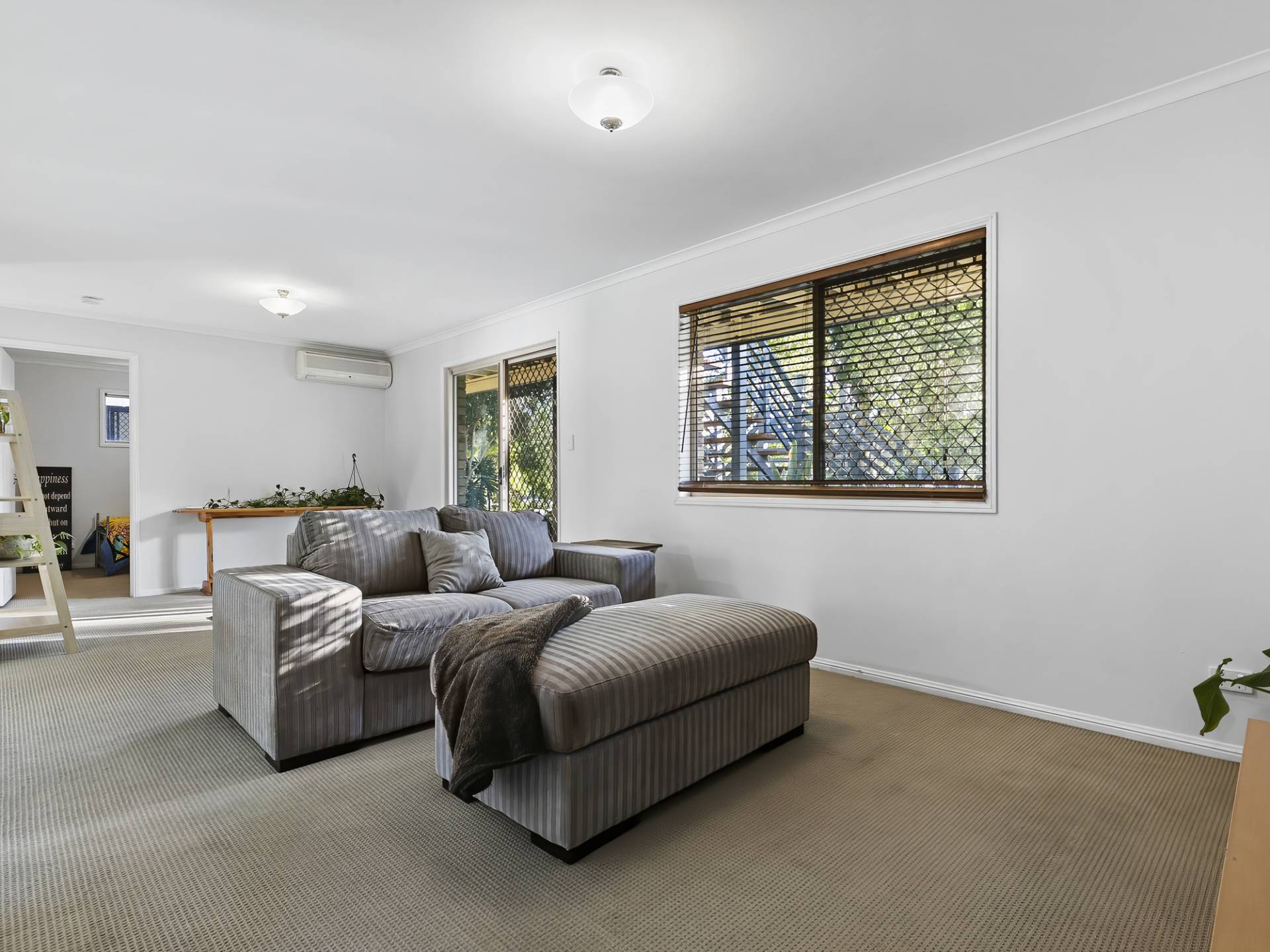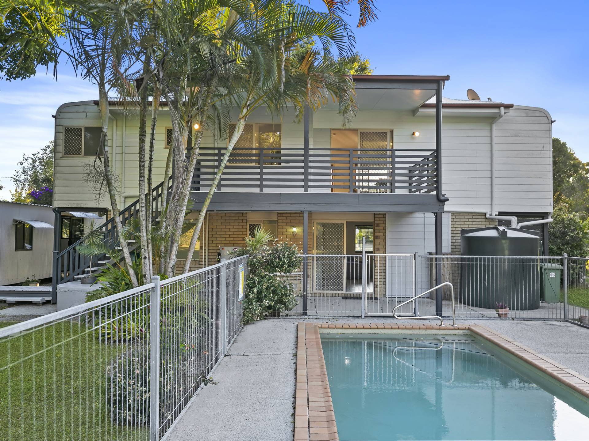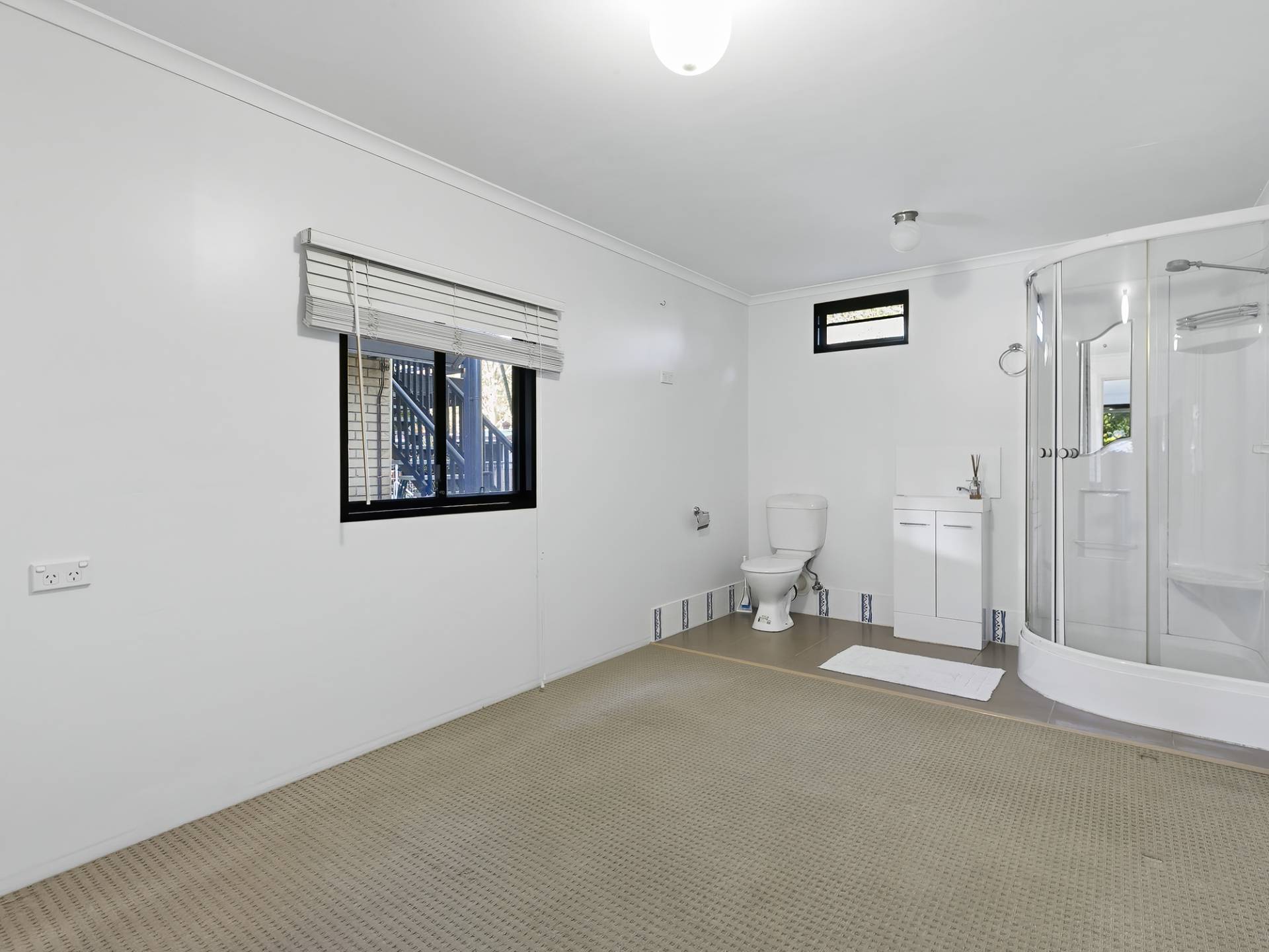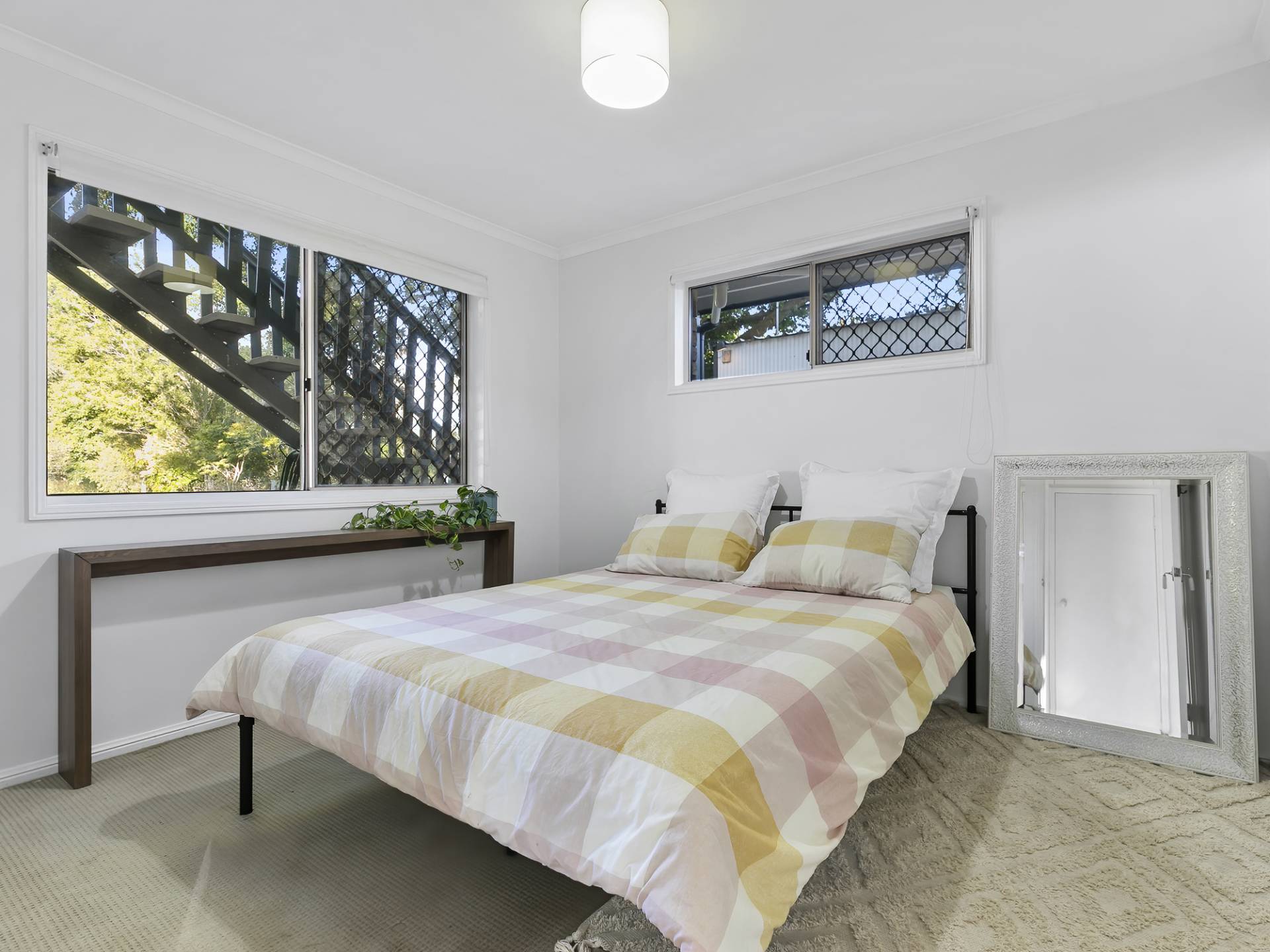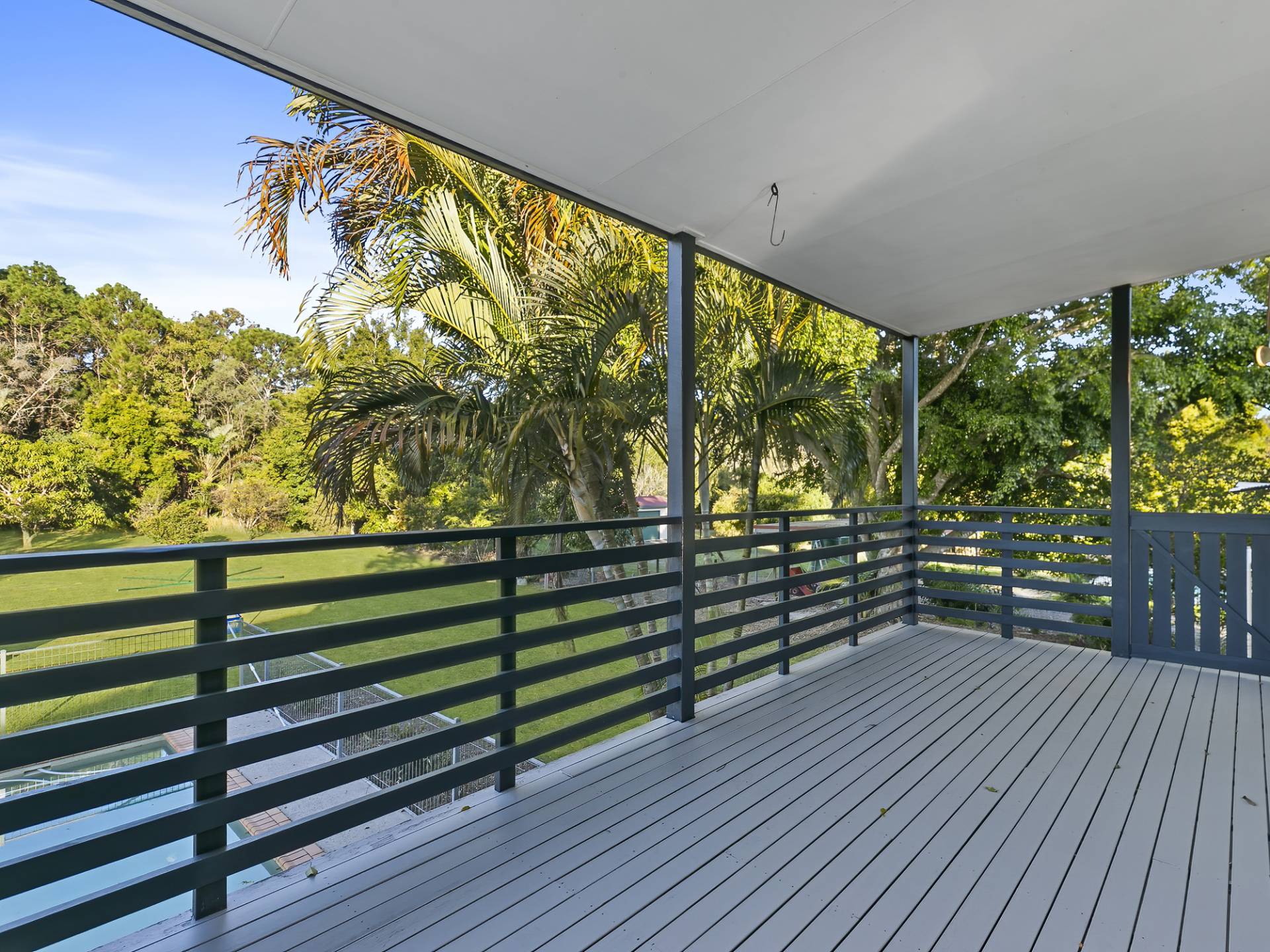 You are greeted upstairs by a wrap-around veranda with awnings providing a perfect place to take in the afternoon sunshine leading to double entry doors. 9ft ceilings, air-conditioning, timber floors, security screens and a rear entertaining deck that makes the most of the acreage views across the pool and back garden. The kitchen has a dishwasher and gas cook top, pantry and breakfast bar. The Master Bedroom is complimented by a large walk-in-robe. The second bedroom has a built-in-robe. A separate toilet and large bathroom complete the upstairs living.