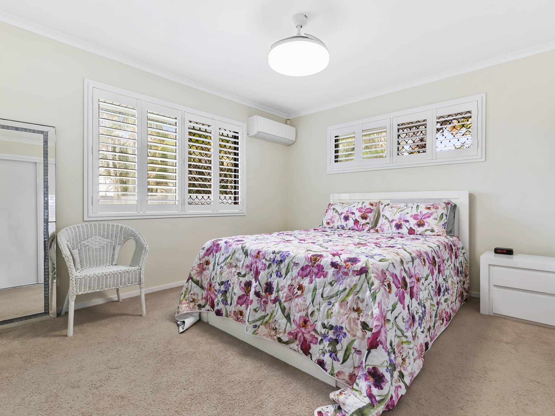 Sleeping accommodation is well catered for, consisting of four good sized bedrooms.  The airconditioned master suite is complimented by vast wardrobing with built in shelves and drawers, plantation shutters and a good sized ensuite with shower, vanity and modern toilet.