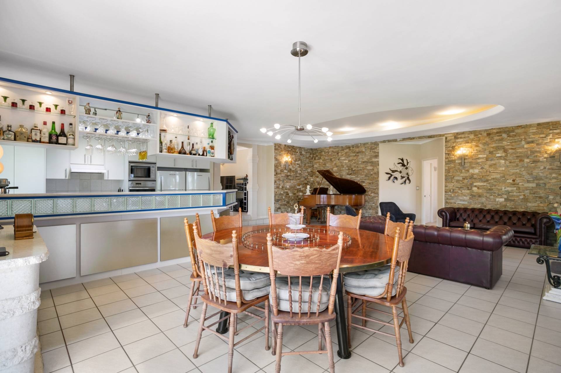 Undeniably the most extraordinary space of the home is the second living area, the open plan living, kitchen and dining room which boasts canal views, high feature ceilings and the timeless appeal of a natural stone clad wall.