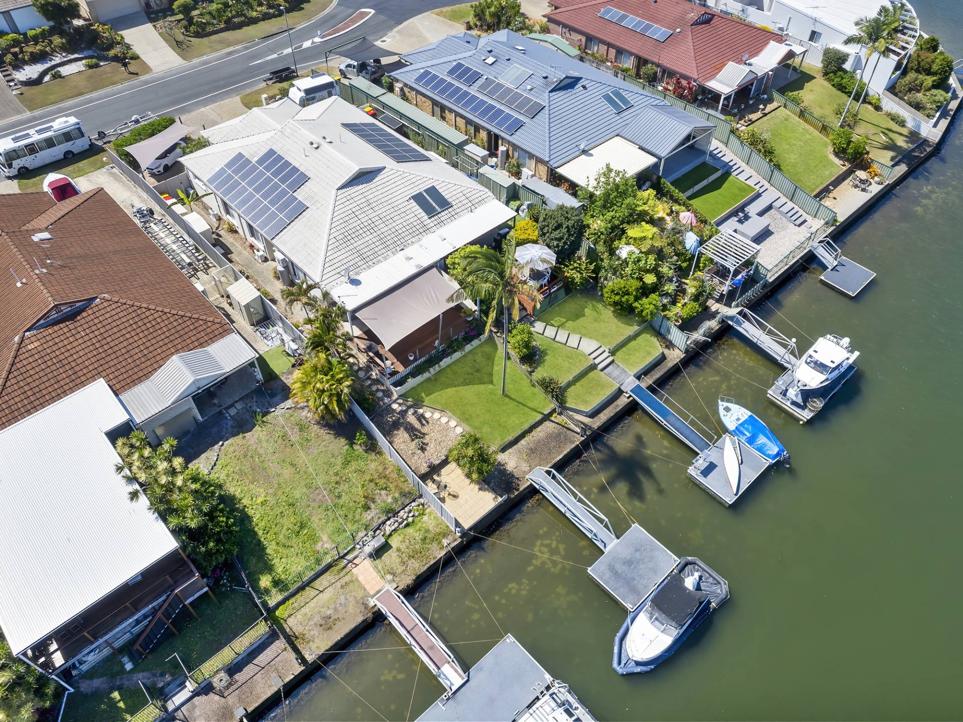Balcony Deck Terrace/Paved Courtyard Outdoor entertainment area Undercover outdoor area Jetty Water frontage Water access Fenced Skylight Low maintenance Sprinkler System Safety Switch Smoke Alarms Garage Remote Close to beach Level Block Close to school Borewater Air Conditioning Solar Power Security Screens Garden Shed Pontoon Open Plan Living Canal Views Close to shops Water Views solar panels Ducted air conditioning Built-in wardrobe Air conditioning Dishwasher Ducted Cooling