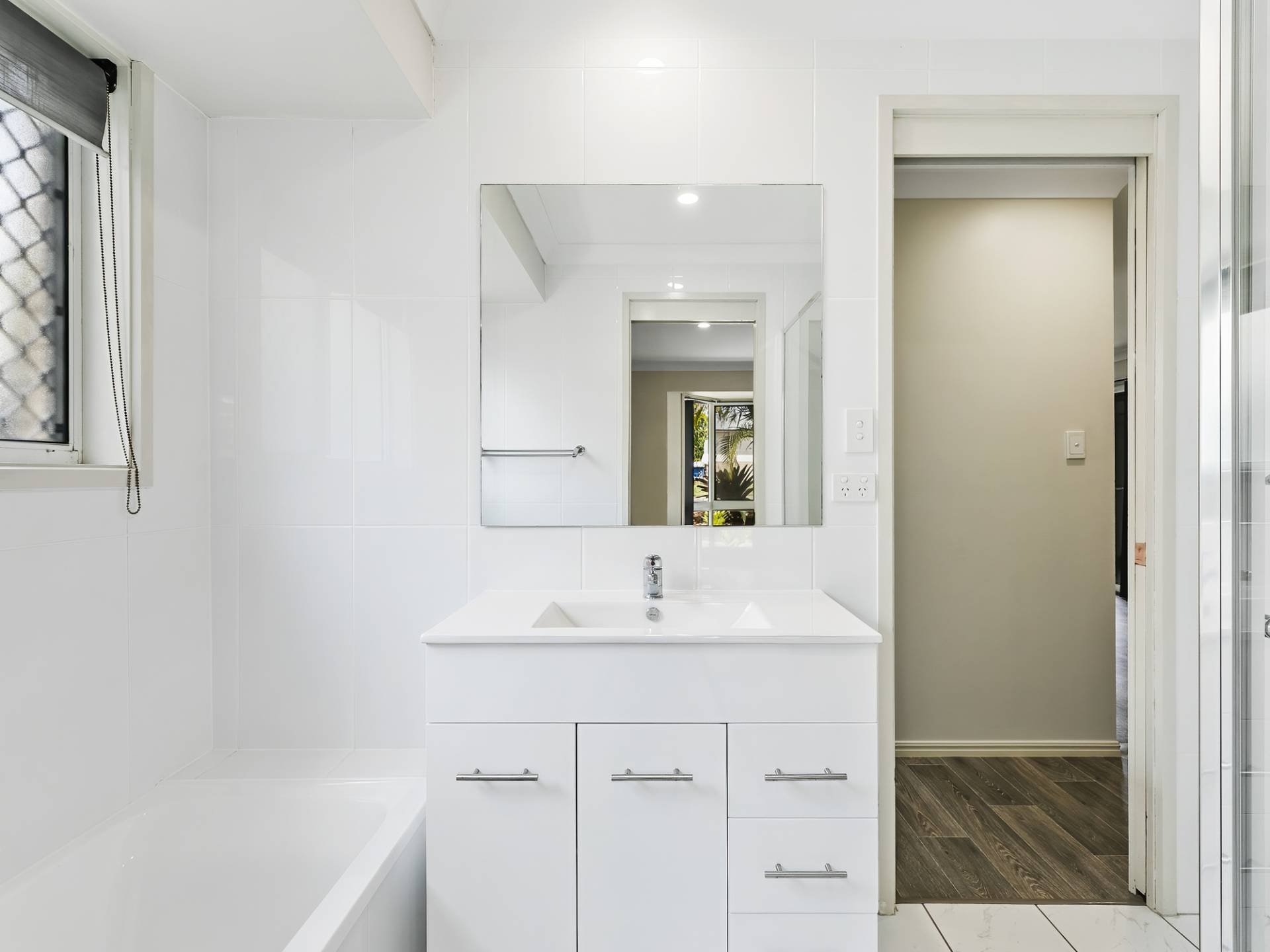 Bathroom newly upgraded with separate shower and bath, new vanity, lovely floor to ceiling tiling and new fixtures