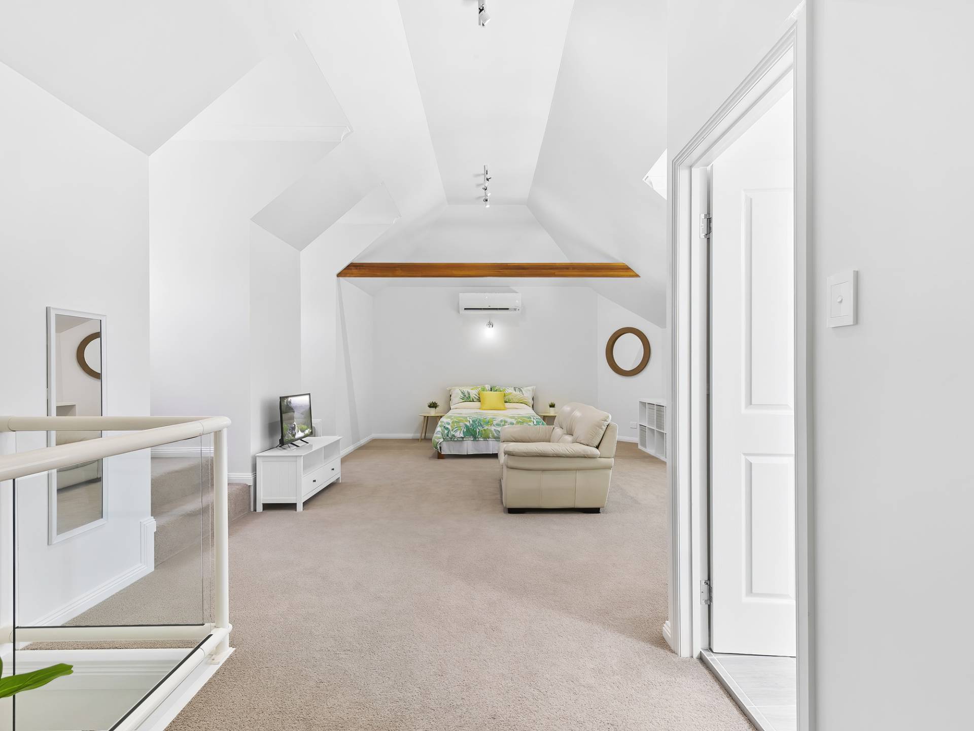 Two light filled living spaces cooled and heated by air-conditioning, and an air-conditioned mezzanine floor space all provide ample room for the larger family to enjoy.  Use the large top level mezzanine, complete with dormer windows for natural light and a beautifully designed bathroom, as a guest/teenager retreat, games area/play room, art studio, work space, library, simply whatever your living requirements may be this area offers the versatility to cater to your lifestyle.