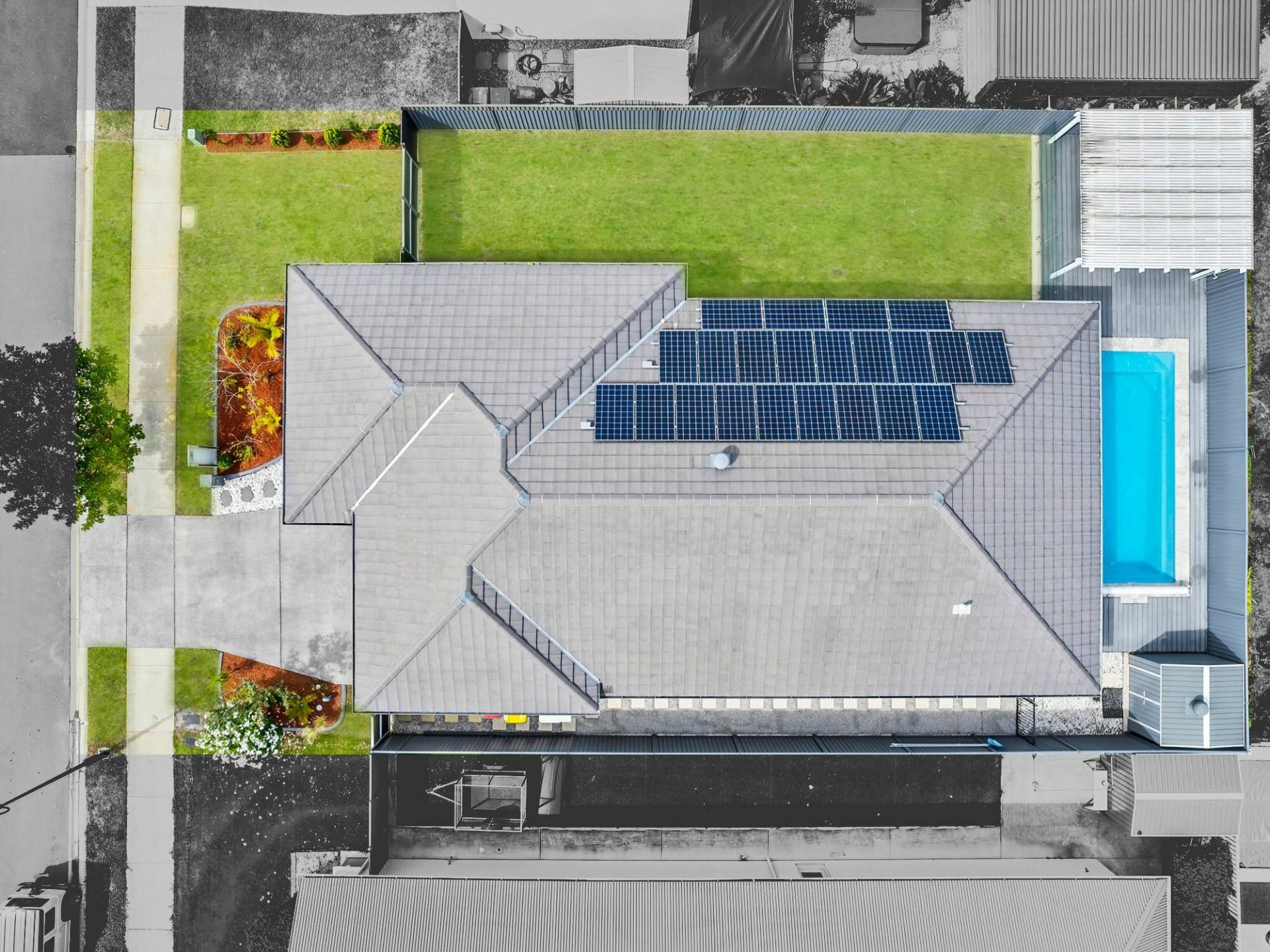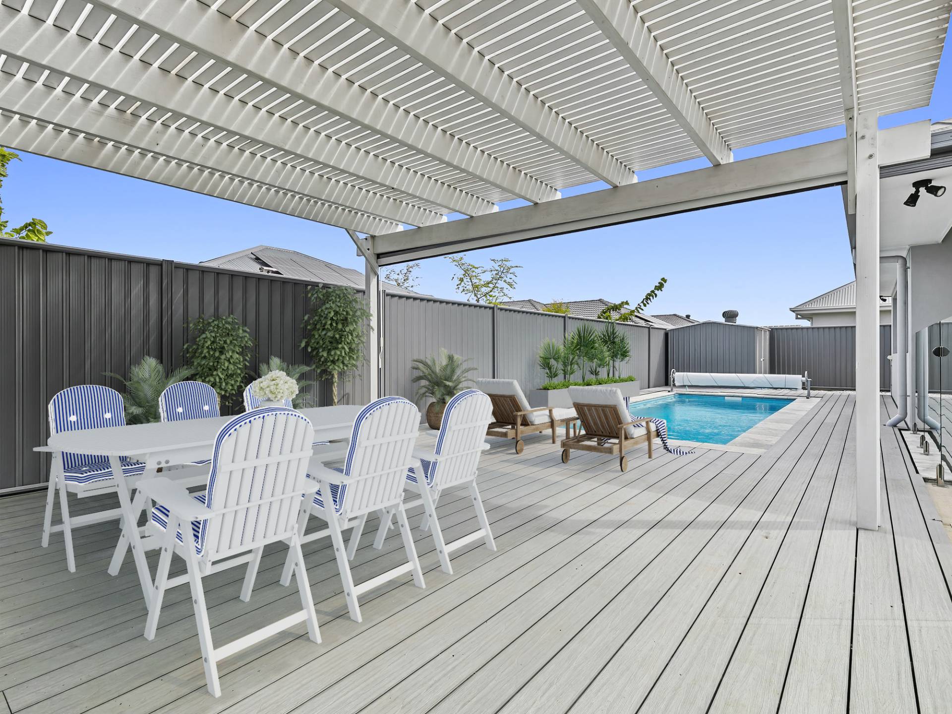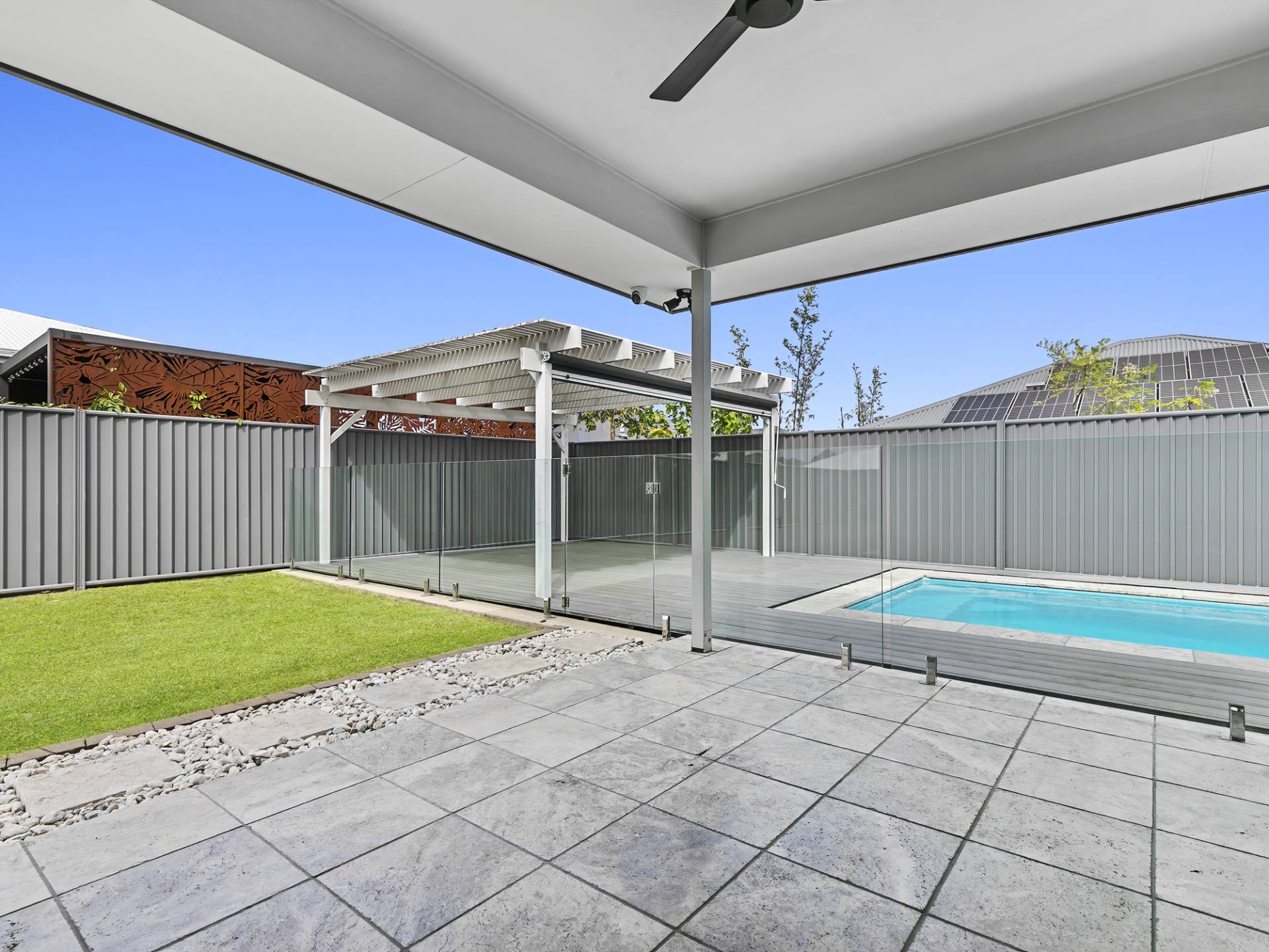 • Covered outdoor entertaining areas including poolside cabana with roller blind