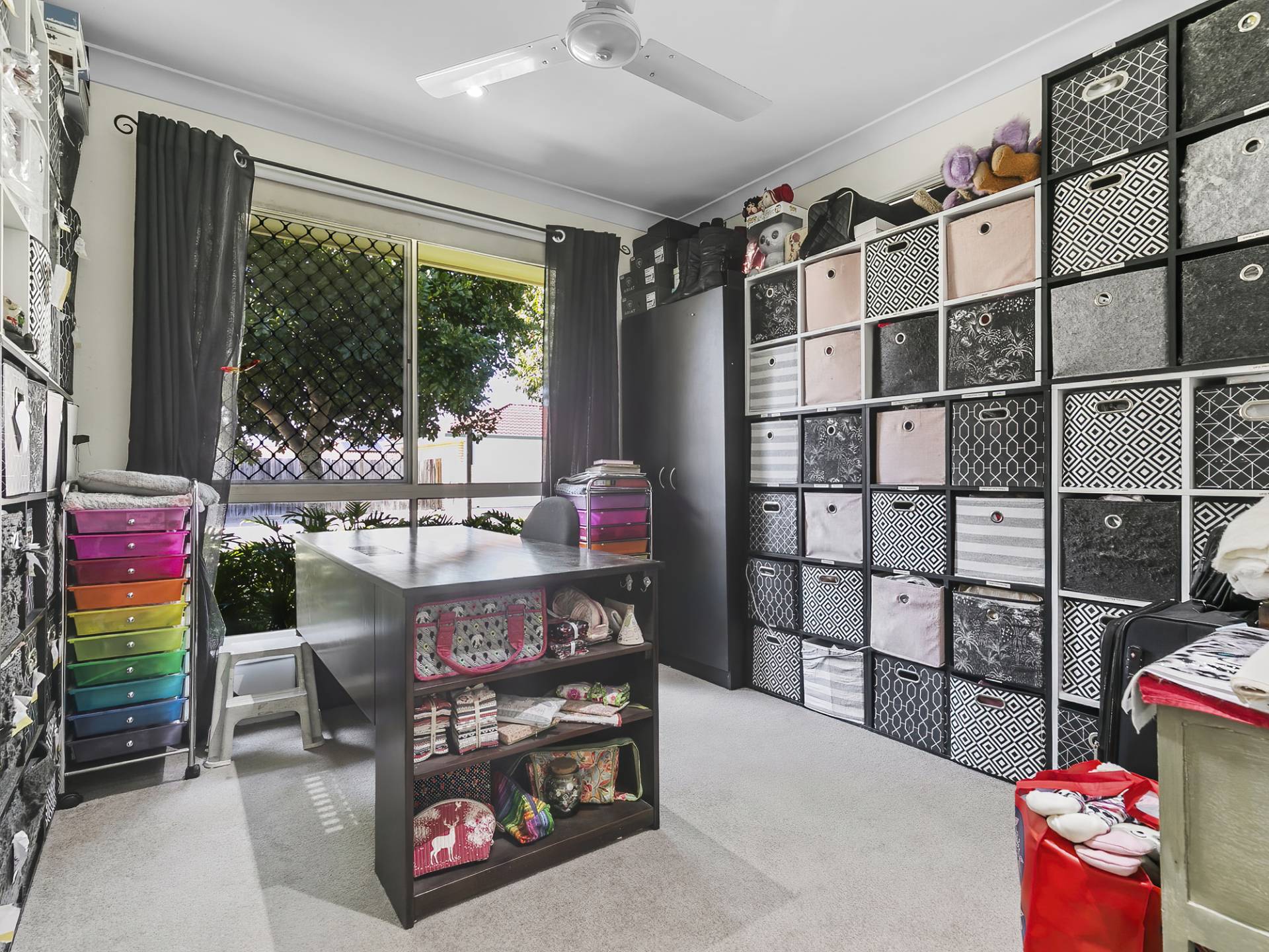 The guest bedroom offers ceiling fan, built in robe and views of the front garden area. It is serviced by a second powder room toilet.