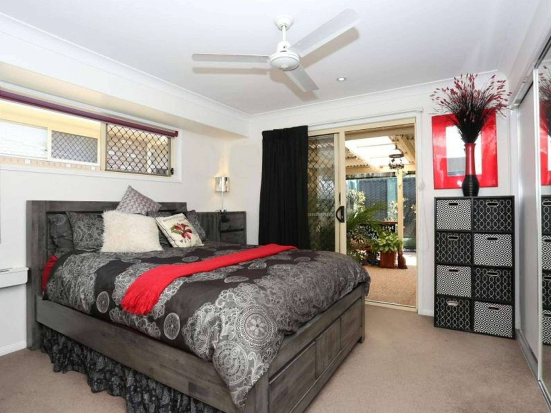 The master bedroom features ceiling fan, built-in-wardrobe and an ensuited bathroom with shower, toilet and vanity, and opens via a sliding door to the courtyard.
