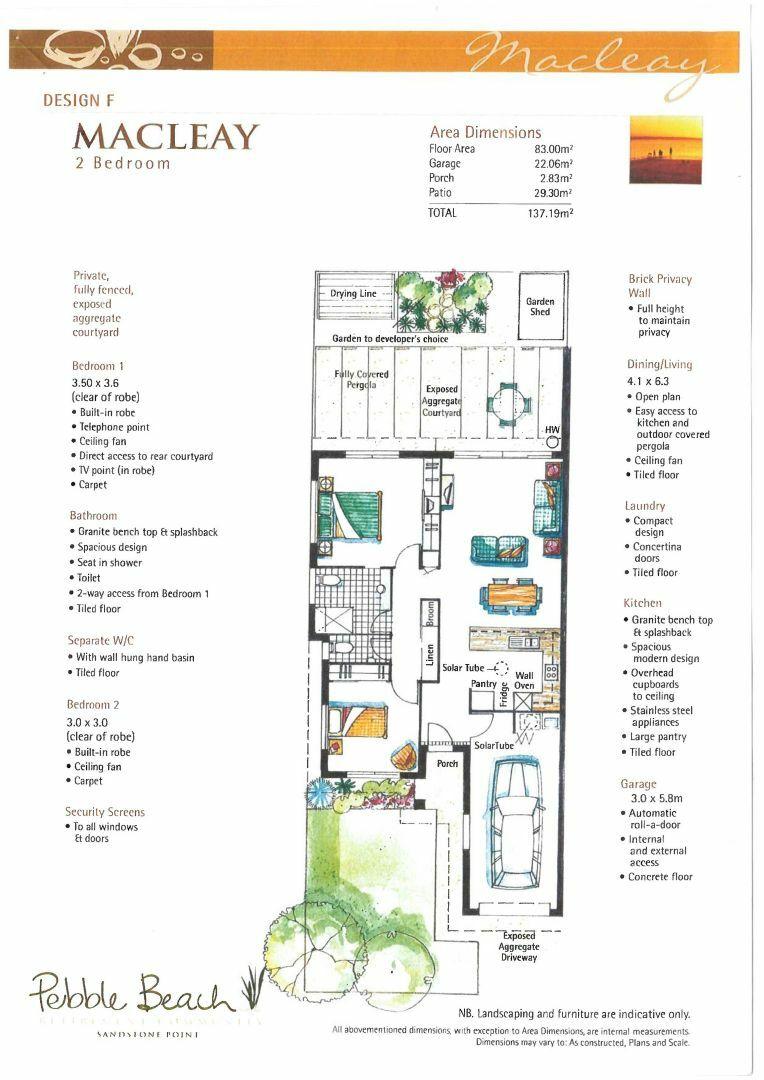 Featuring the open plan Macleay design floor plan, with  2 bedrooms, good sized living, stylish kitchen with great storage, single car garaging and a wonderful alfresco courtyard with a bushland setting backdrop.
