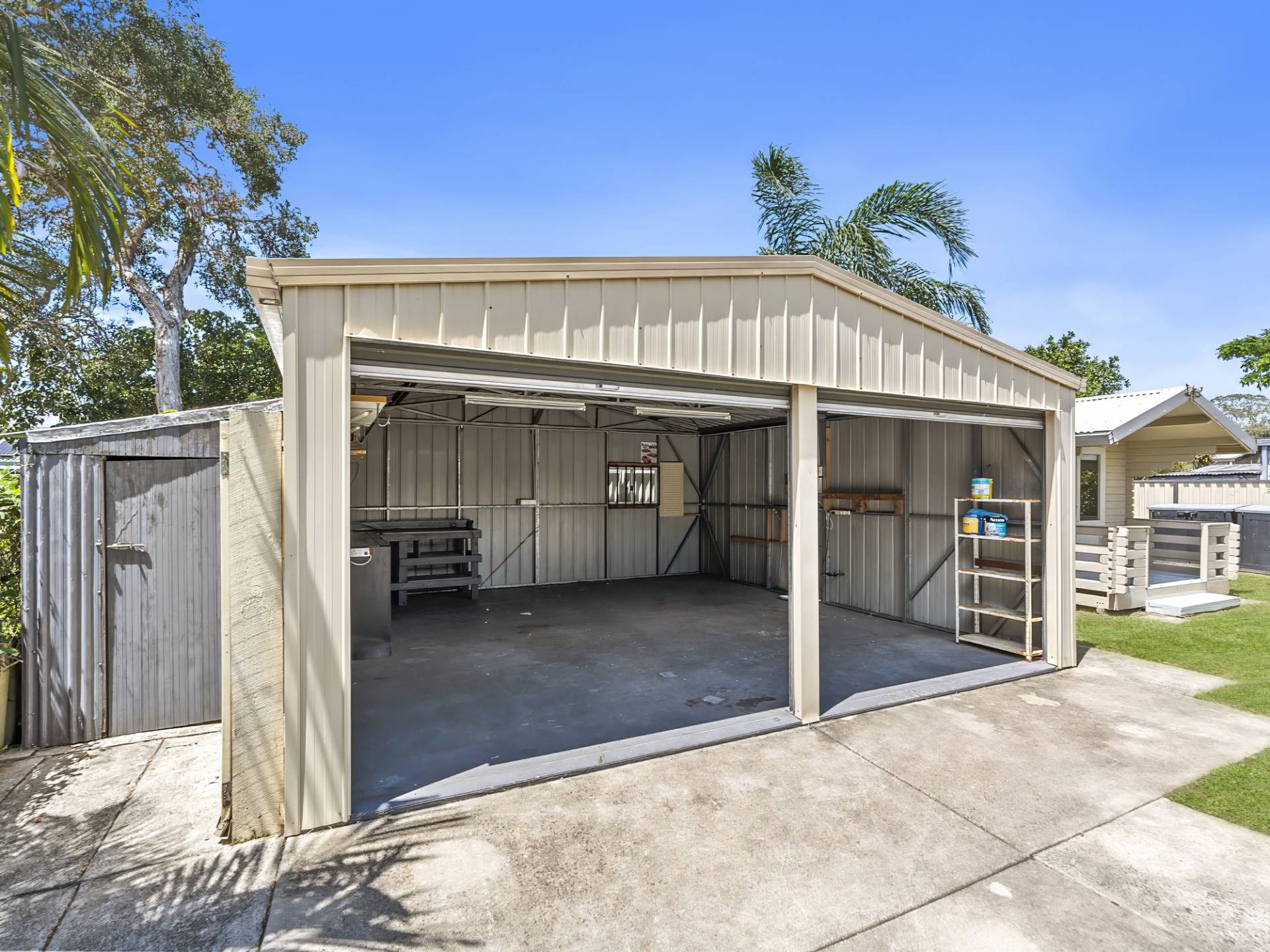 Dual side access on the property takes you through to the rear where a 6m x 6m double bay shed is ready to house your tools, toys and tinny.  It has power and lighting and comes with shelving and work benches. Car parking is catered for with the single carport and front shade sail parking spaces.