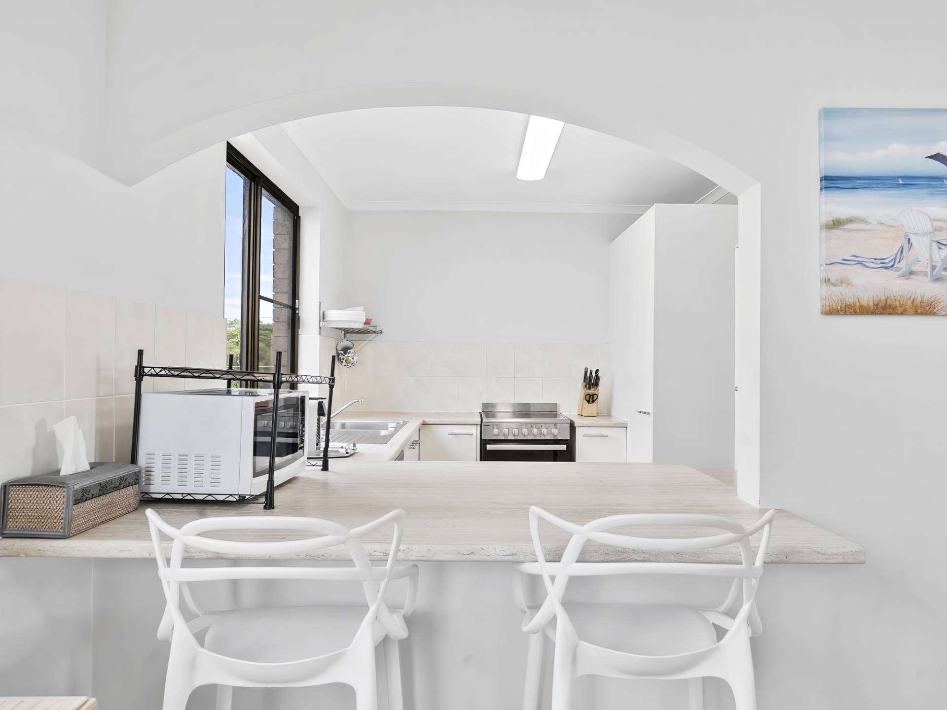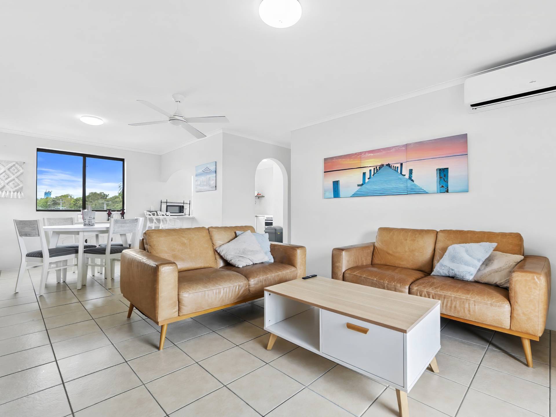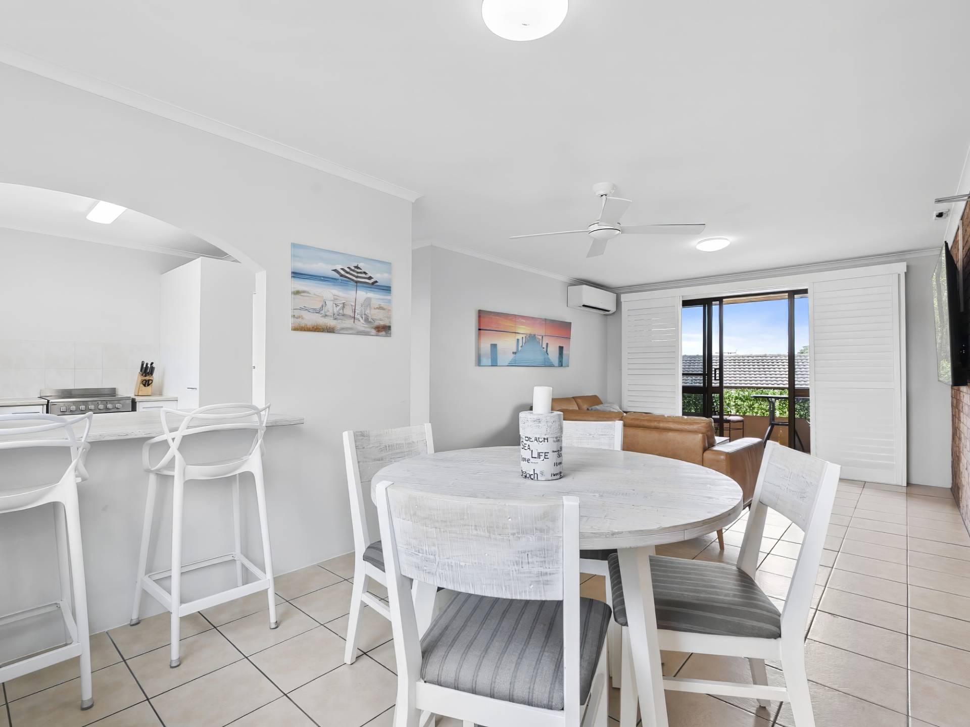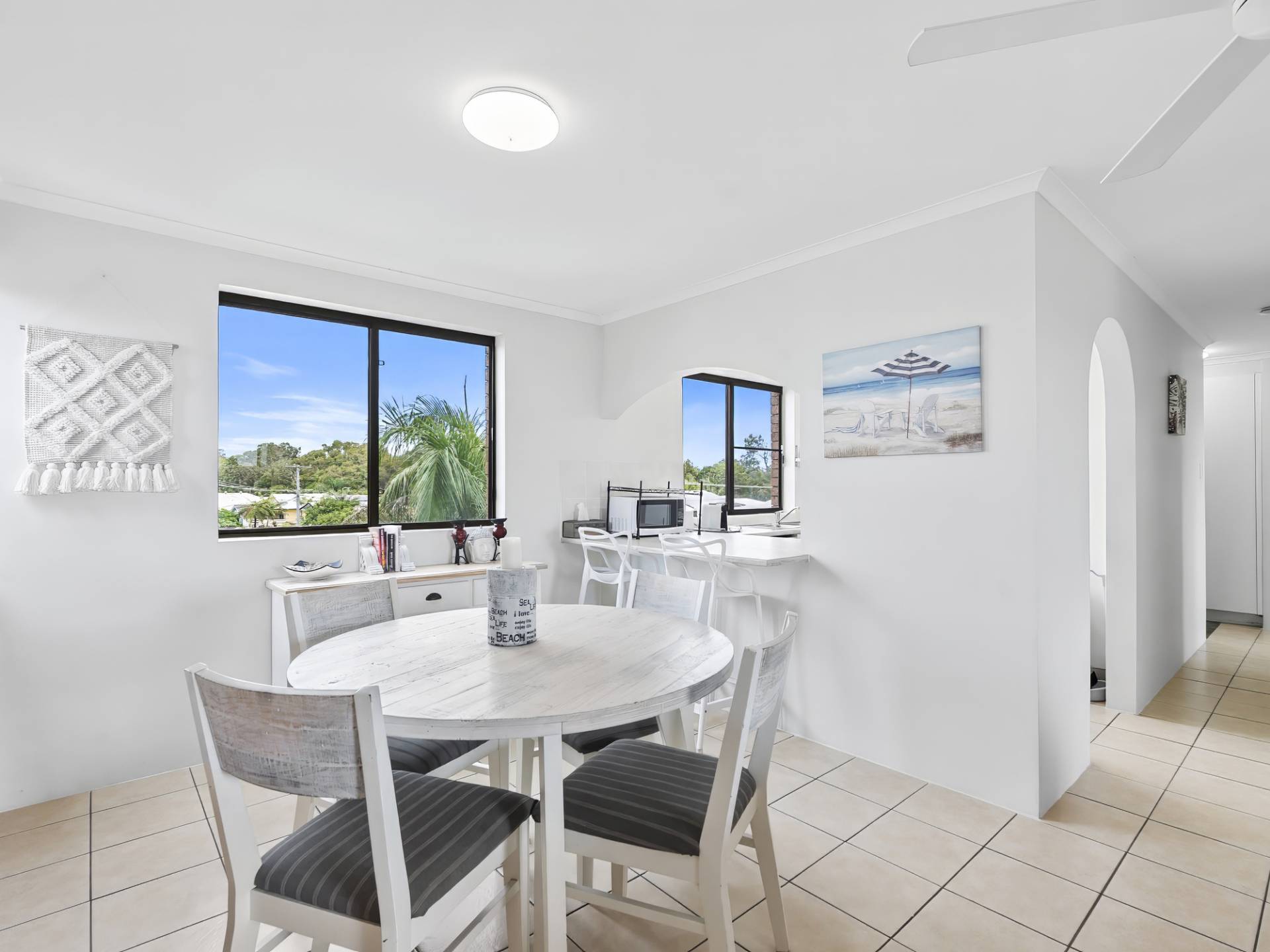 Freshly updated, the unit features air-conditioning to all living spaces, ceiling fans and crisp white Plantation Shutters, giving the space a clean, coastal feel.