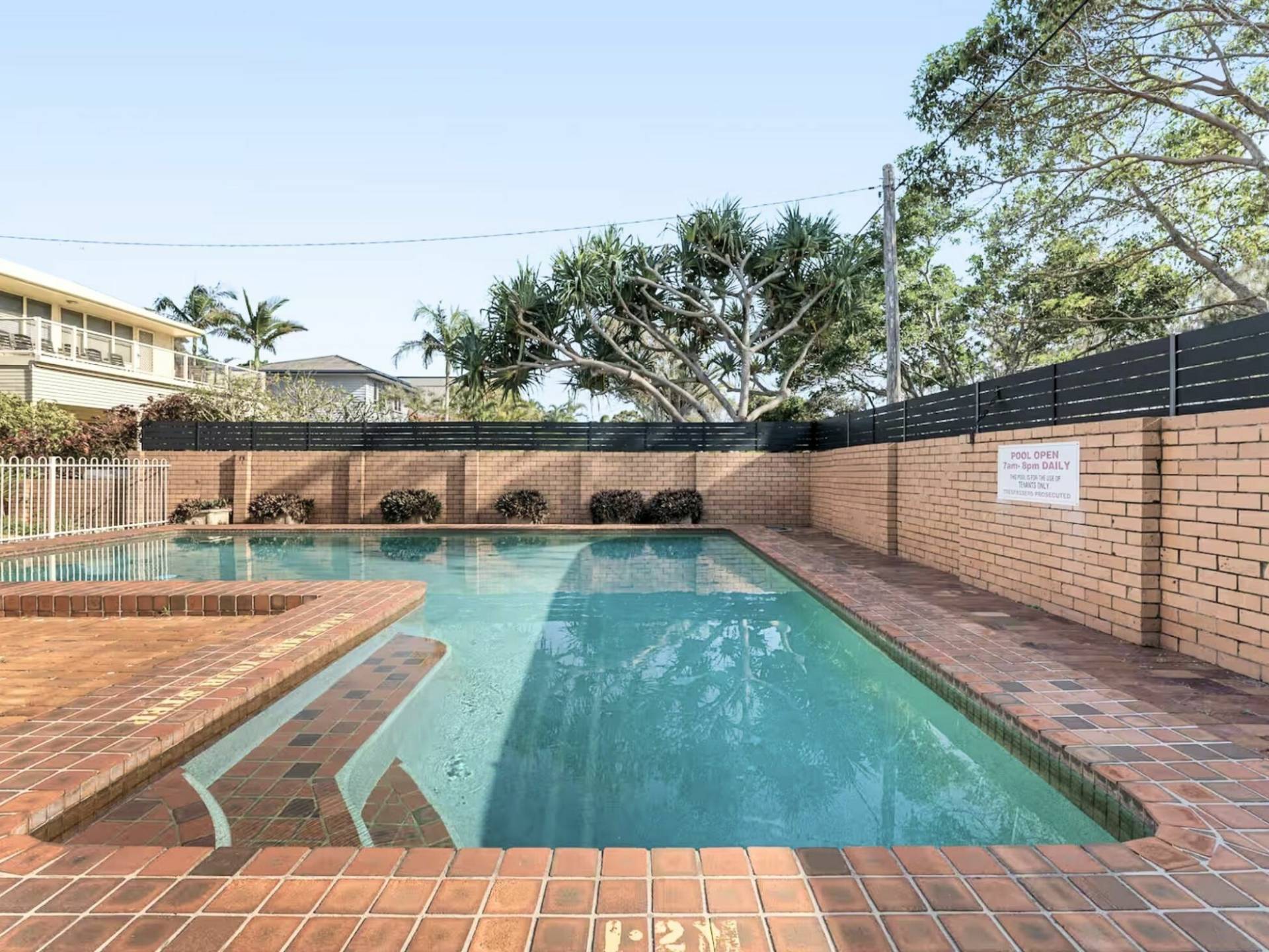 The complex has a fully serviced inground saltwater pool for you and your guests to enjoy, complete with an outdoor shower and tap to wash away the sand after a beach visit.