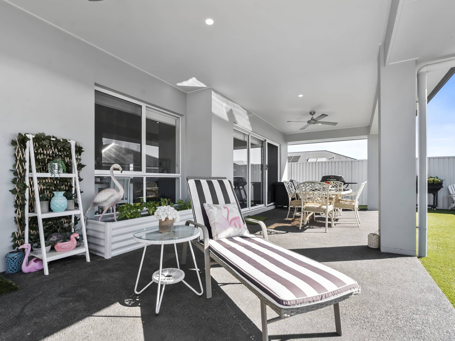 Outdoor living is complete with a full length (11.55mtr) tiled alfresco featuring downlights and two ceiling fans.