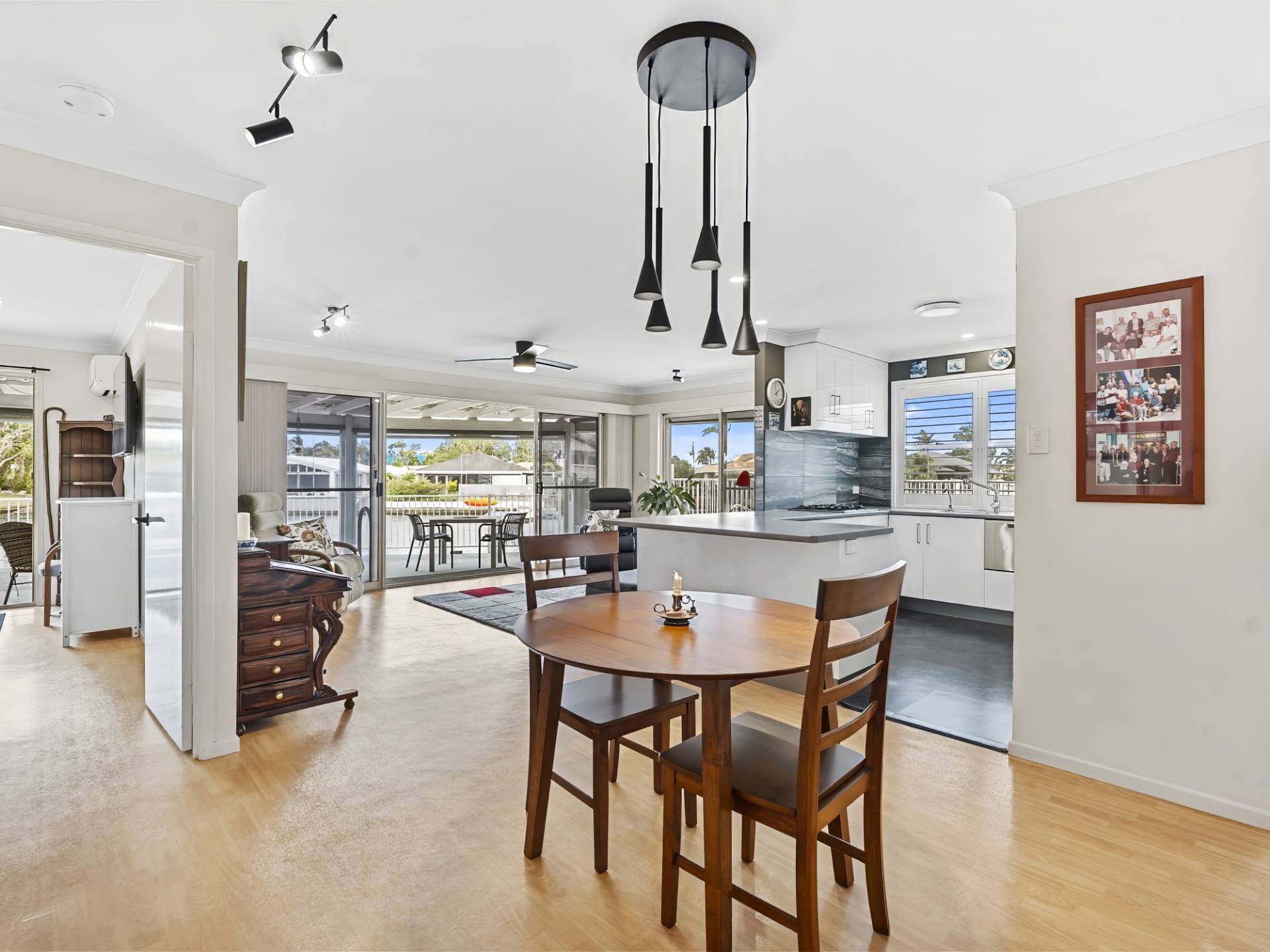 • Air-conditioned open plan living, kitchen and dining with ceiling fans