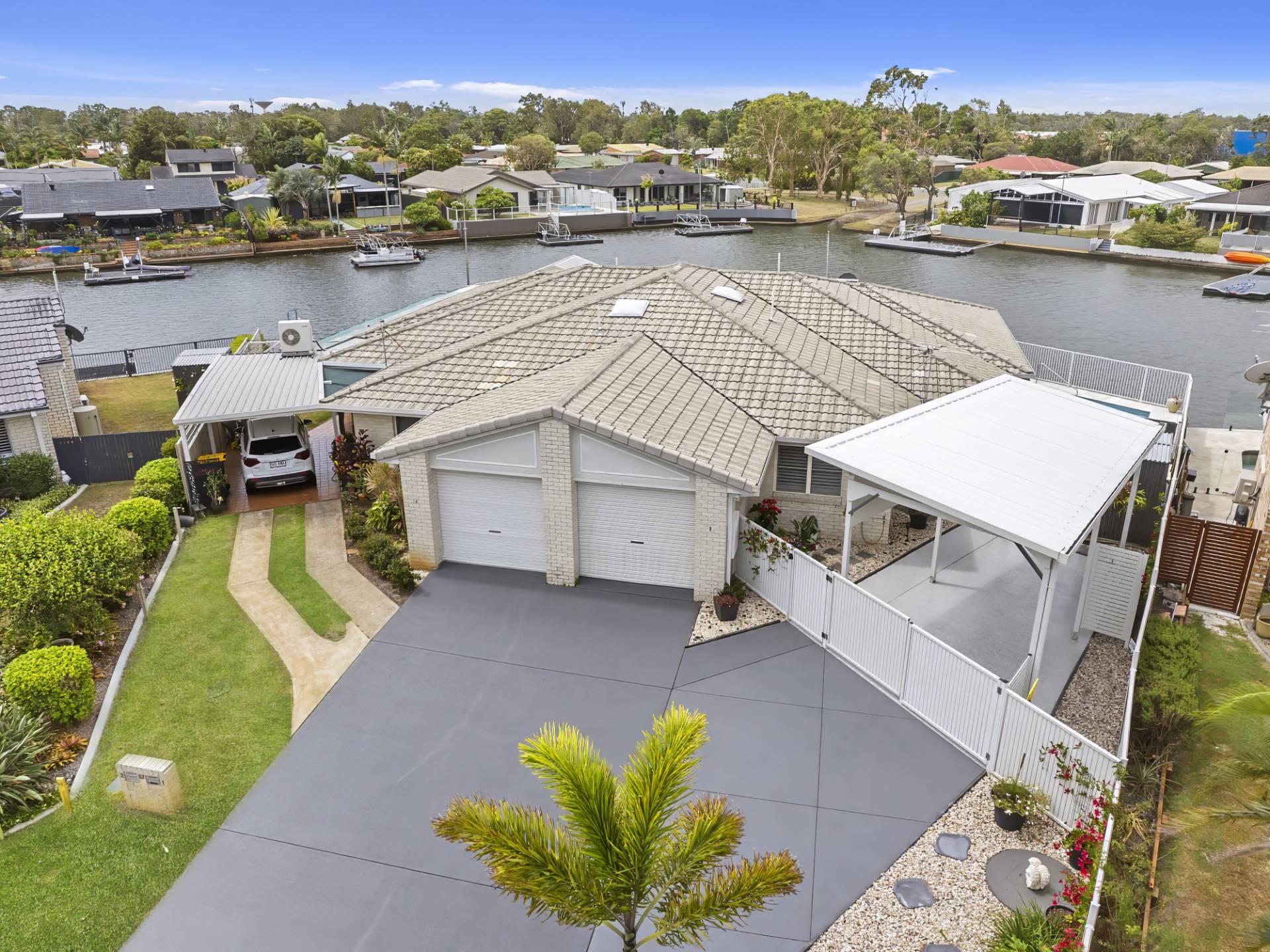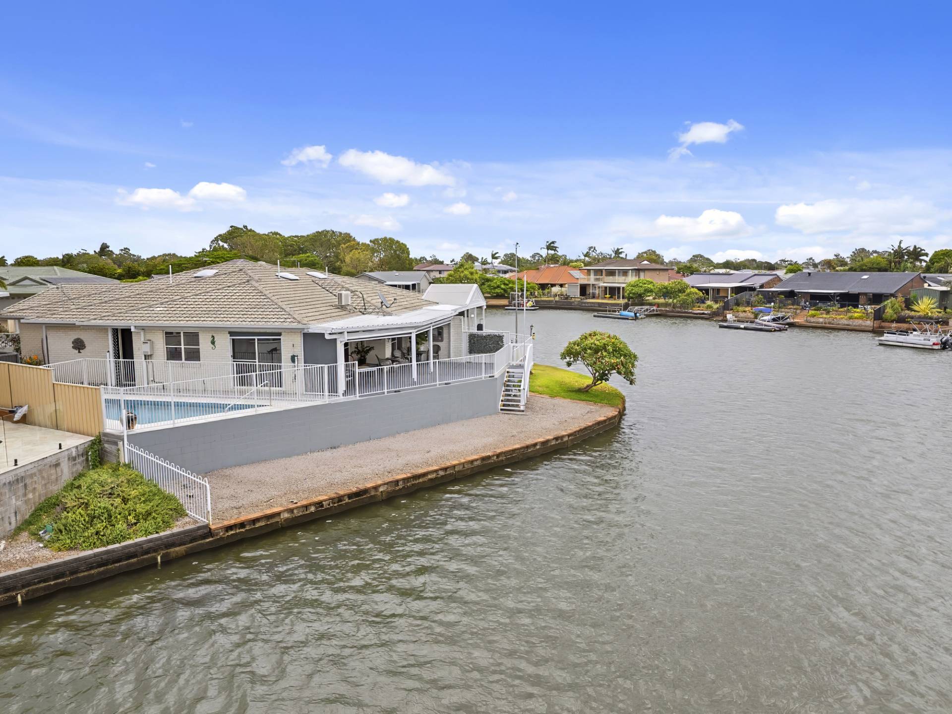 ‘JACARANDA POINT’ CANAL DUPLEX WITH INGROUND POOL + SECURE VAN PARKING