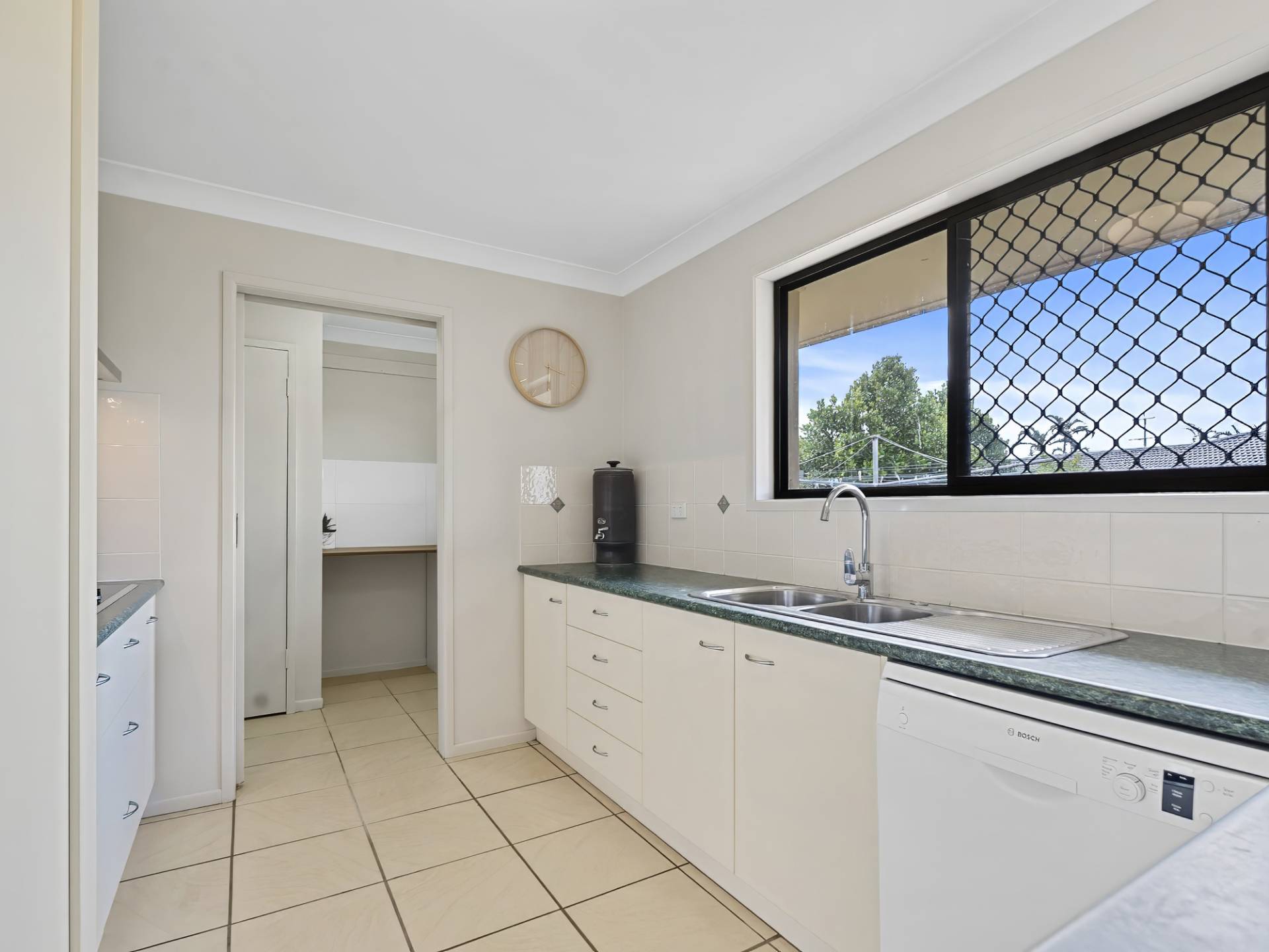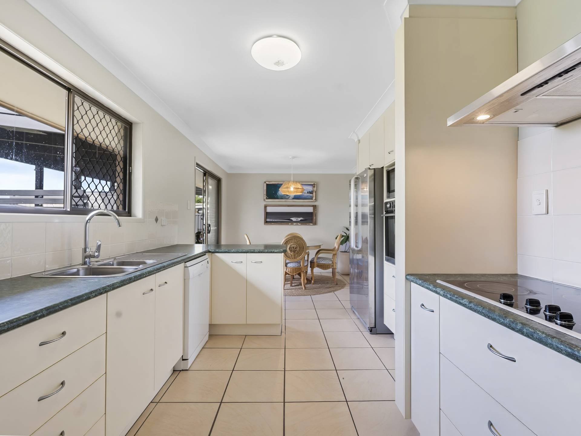 • Good sized kitchen with plenty of storage, breakfast bar, electric appliances including dishwasher and views to backyard