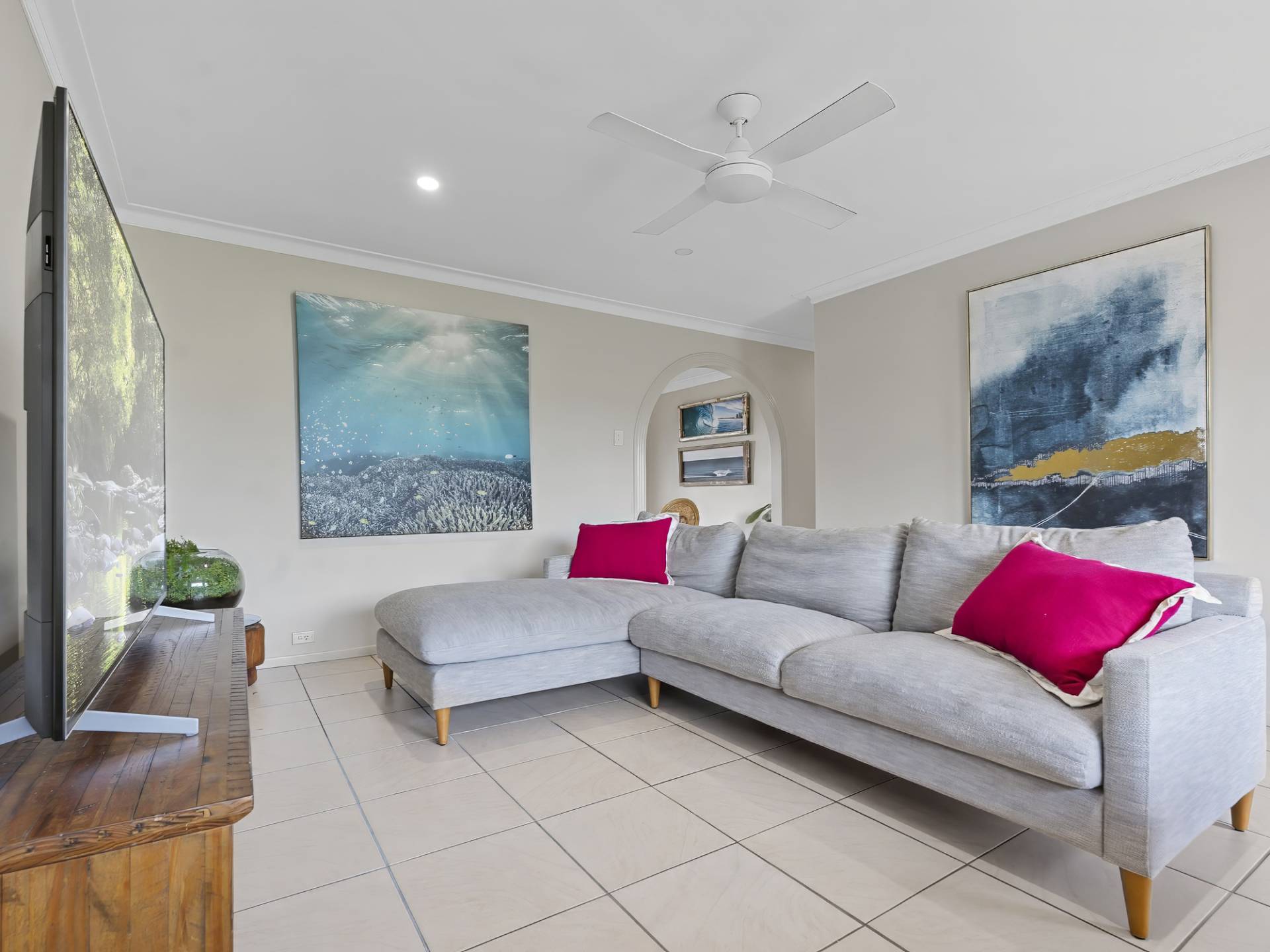 • Air-conditioned living room with ceiling fan