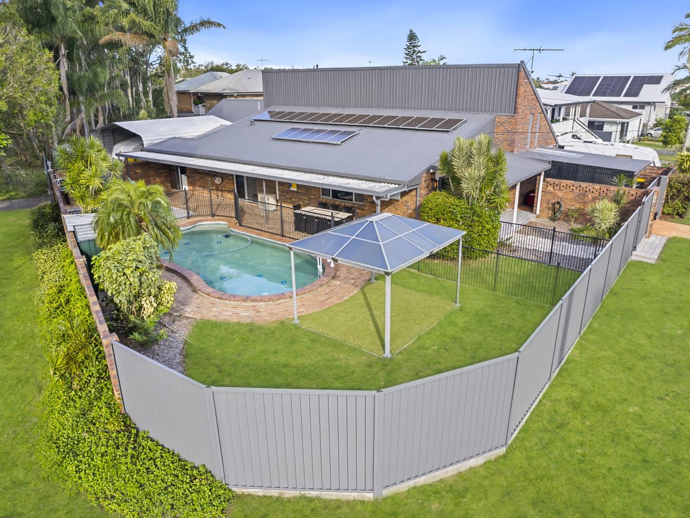 Outdoor living features a large inground concrete pool, surrounded by ample entertainment spaces perfect for hosting memorable gatherings. The property is fully fenced ensuring exceptional privacy and security and best of all only one neighbour!