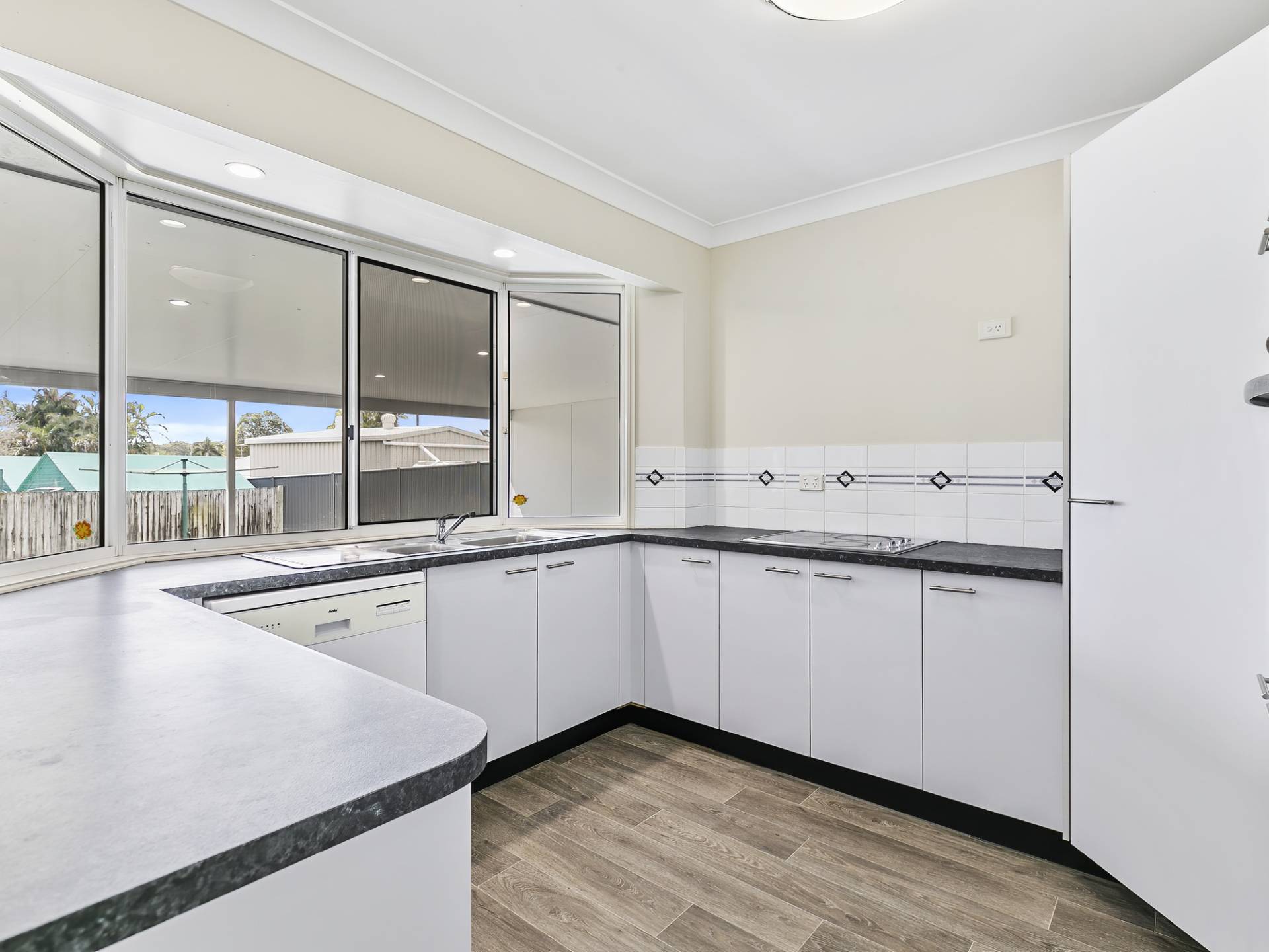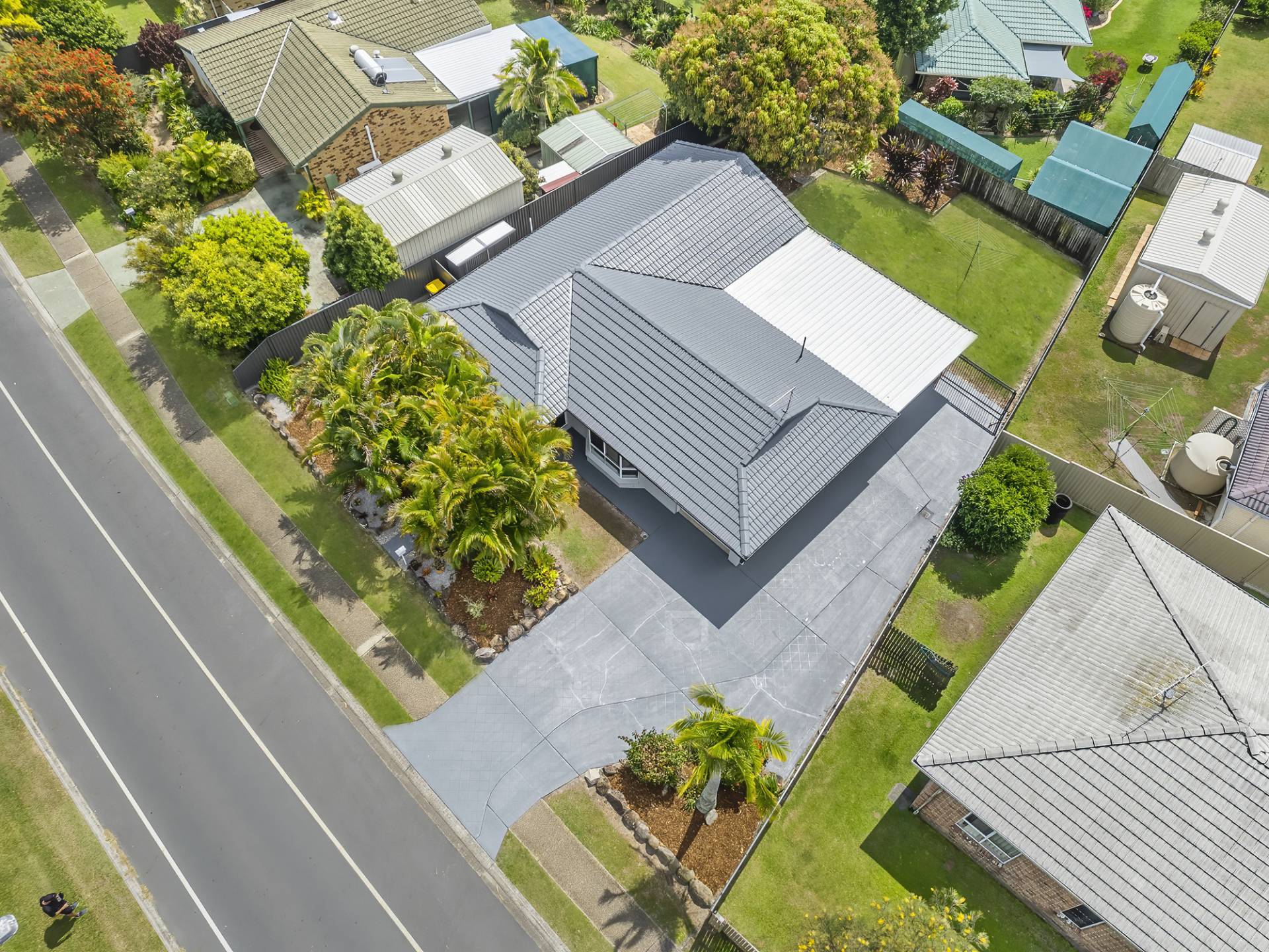 Comprising two air-conditioned living spaces, three bedrooms (master air-conditioned), a modernised two-way bathroom, light-filled kitchen, a large covered outdoor entertaining area, single lock-up garage with internal/external entry points and plenty of room at the side to park the motorhome, van or boat.