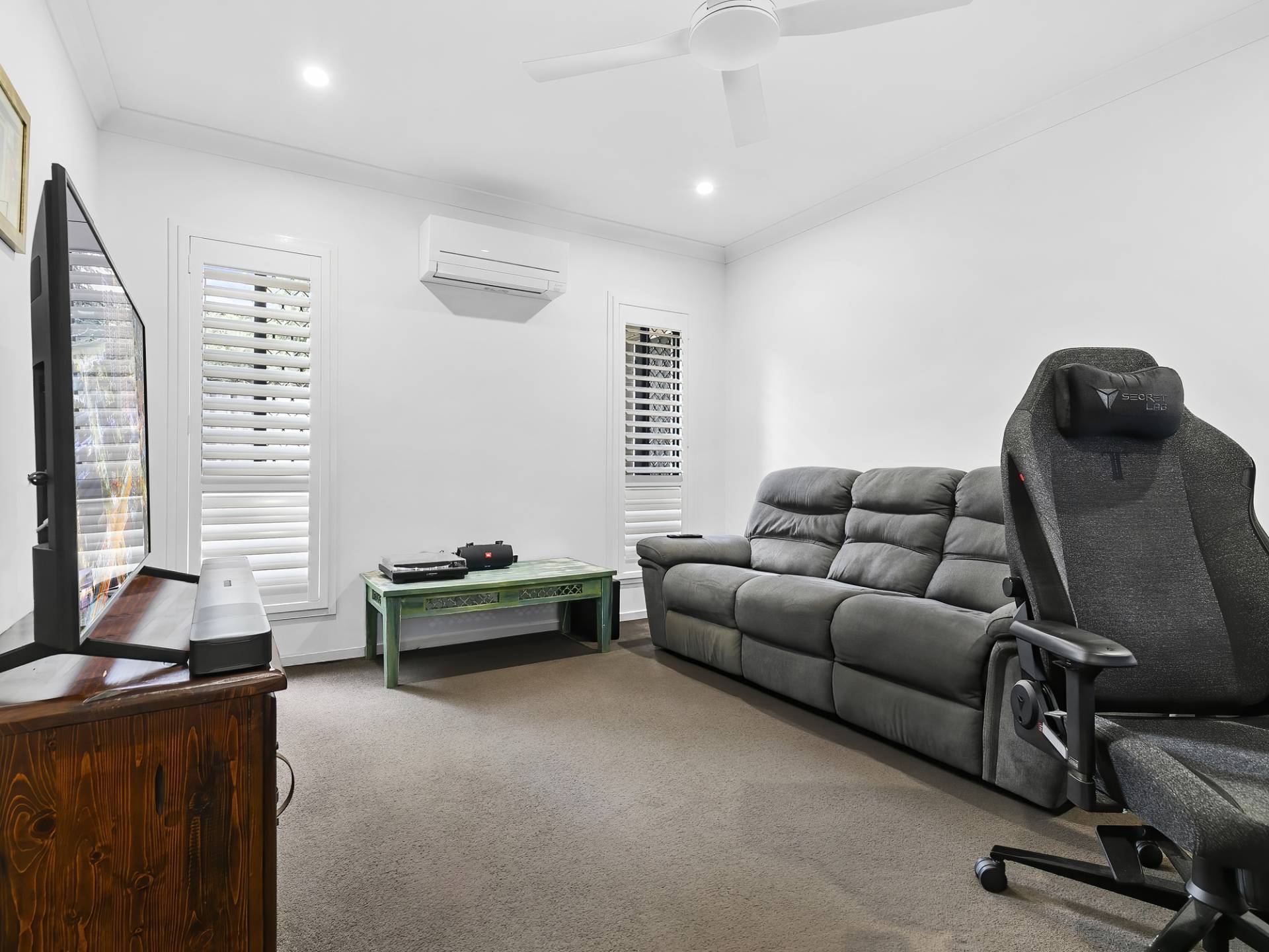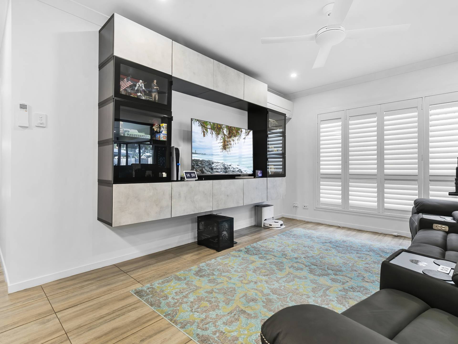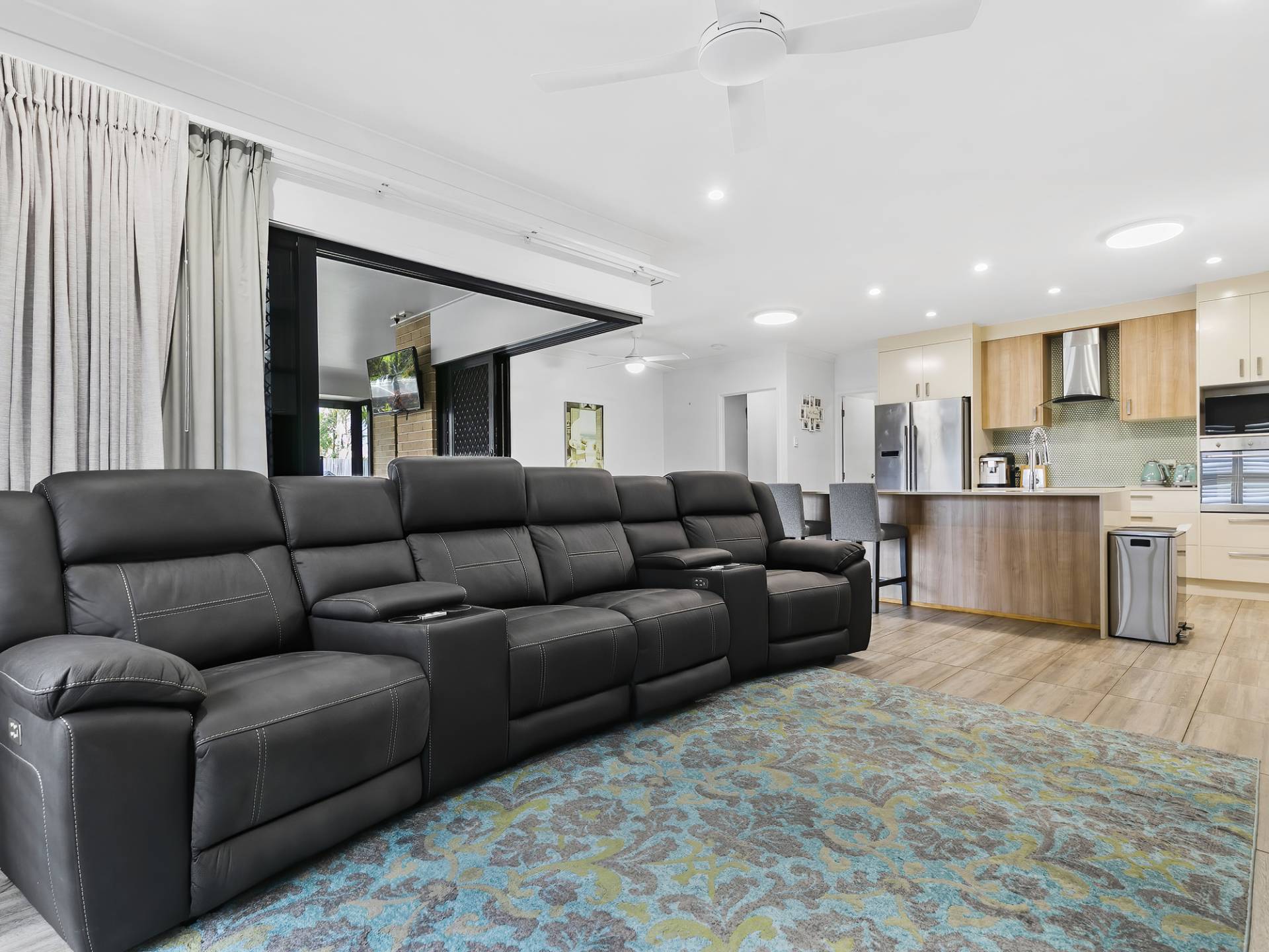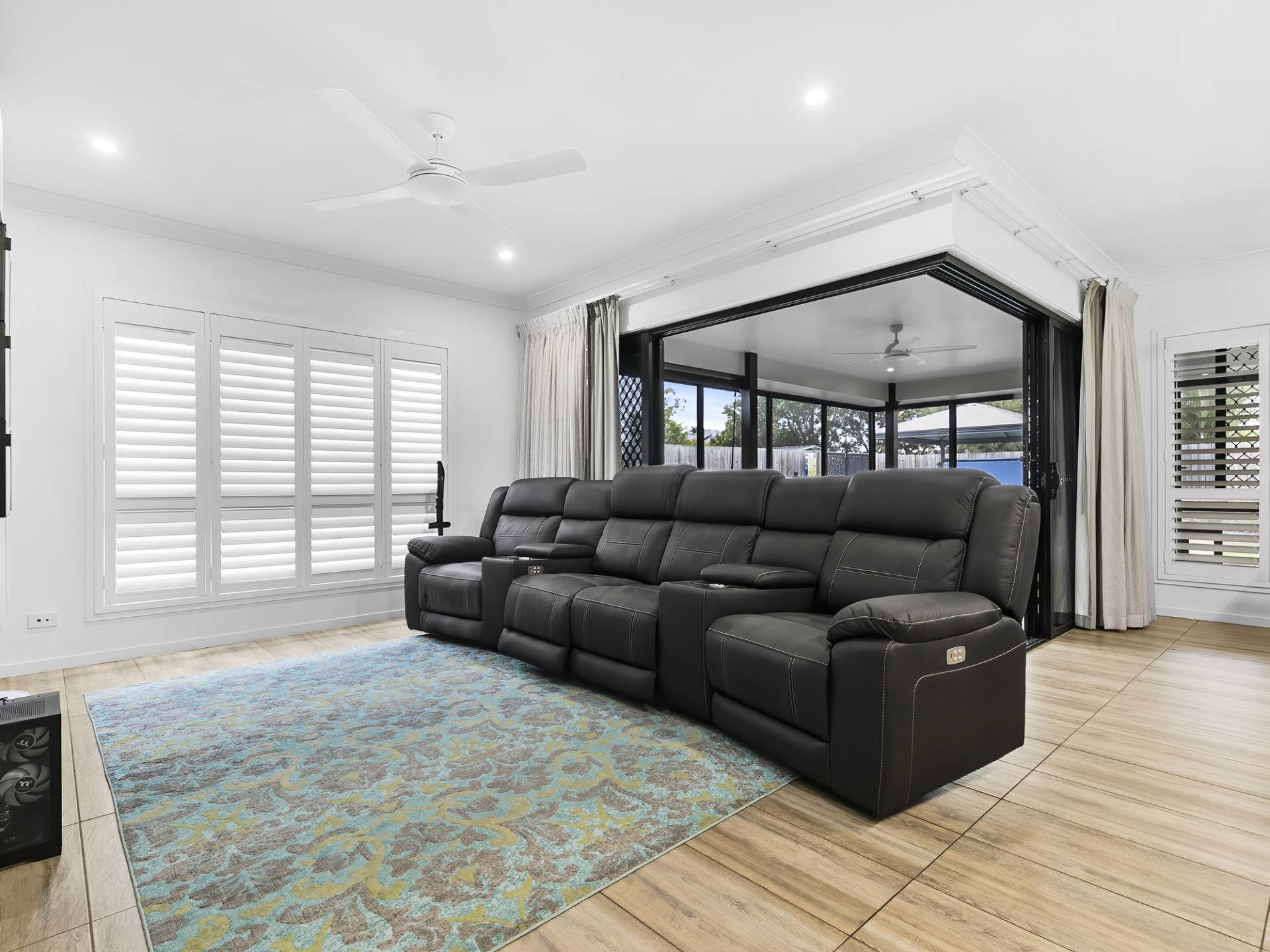 Leave the corner sliding doors open all day to enjoy the natural breeze and liveability of this amazing space. The air-conditioned living room features a custom-built wall unit and there’s the added bonus of a dedicated air-conditioned media room – plenty of space for the entire family to enjoy.