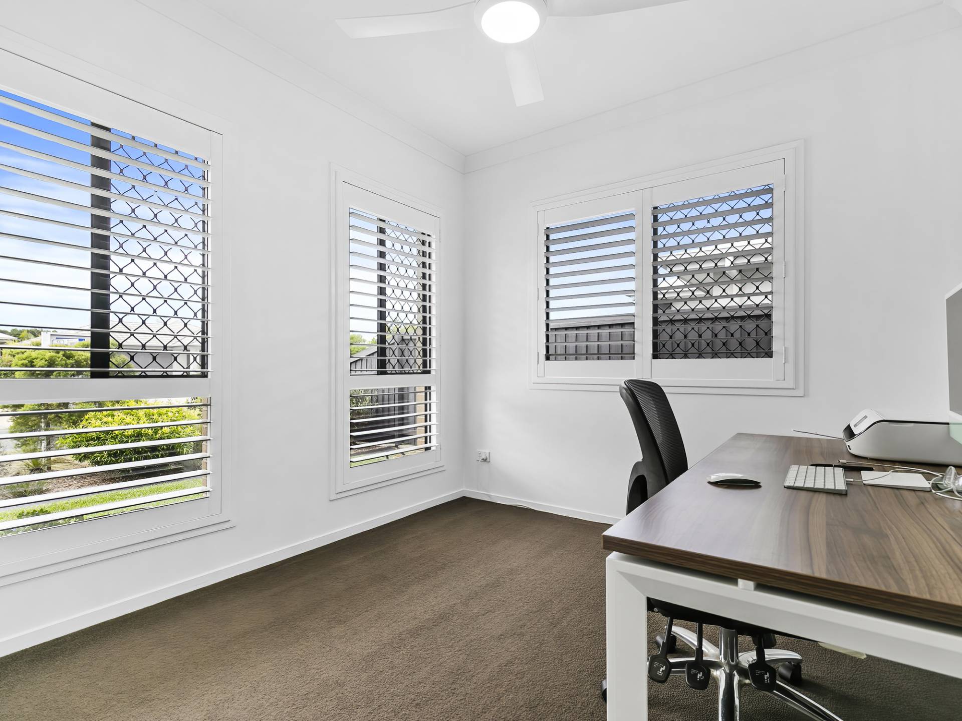 Crisp white Plantation Shutters adorn the windows throughout the living spaces and bedrooms, along with quality double hung (block out and sheer) curtains in the main living area adding to the elegant appeal of this home.