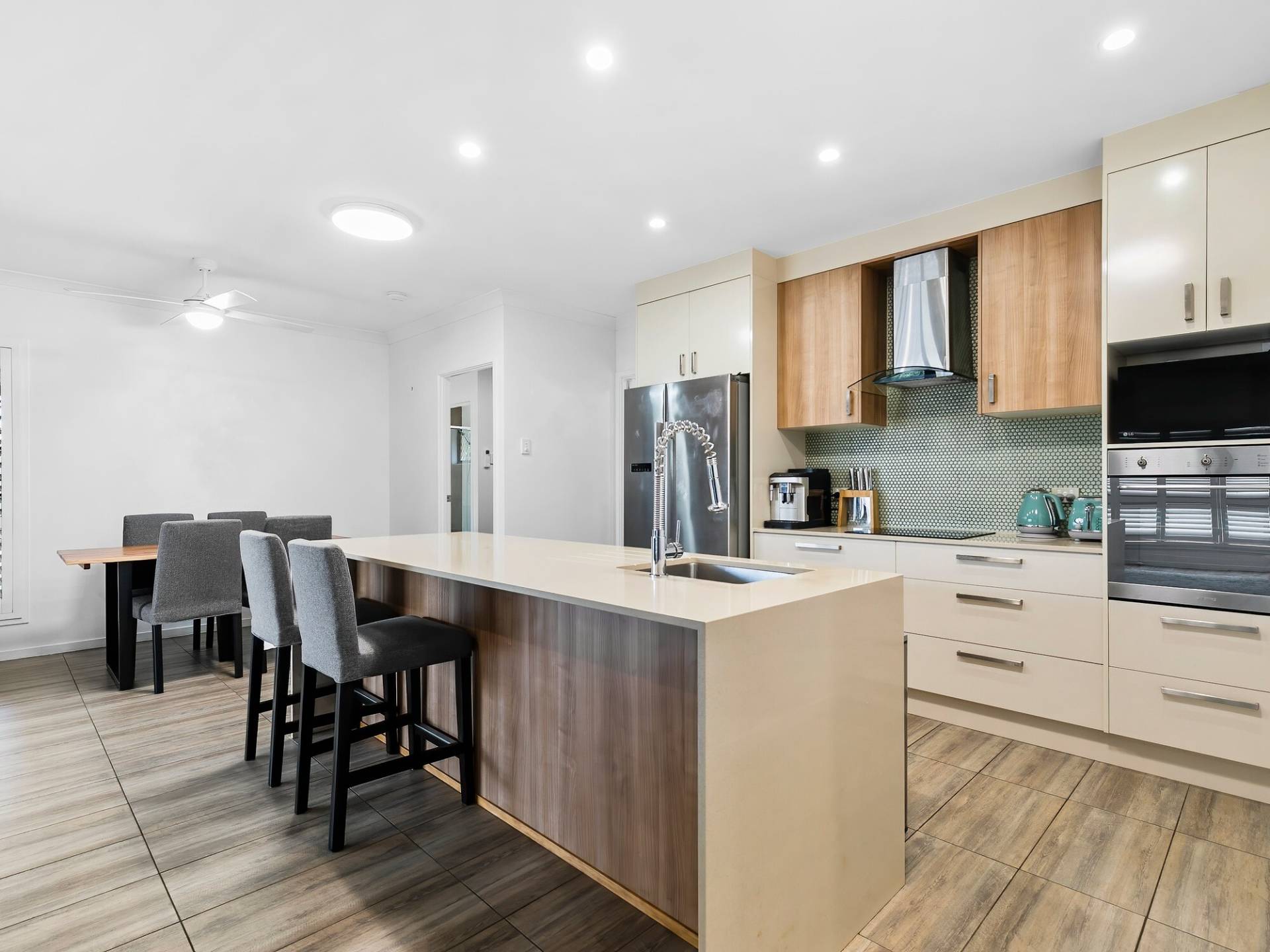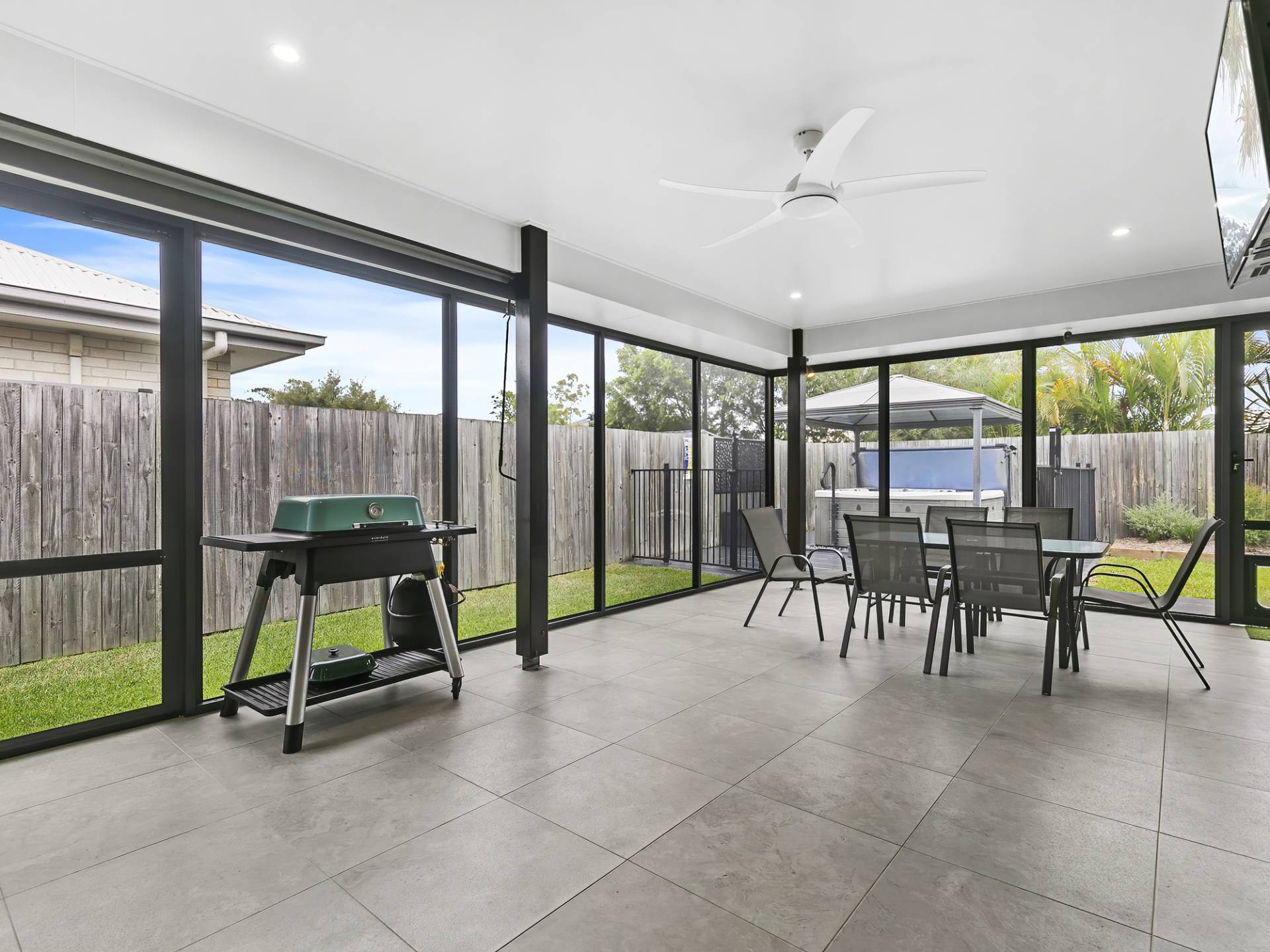 The heart of the home is the open-plan living, dining, and kitchen area bathed in natural light from the open corner sliding doors that combine the ultimate indoor/outdoor living areas to enjoy all year round. This seamless flow extends on your living space and you’ll love the full enclosure with Crimsafe for added peace of mind.