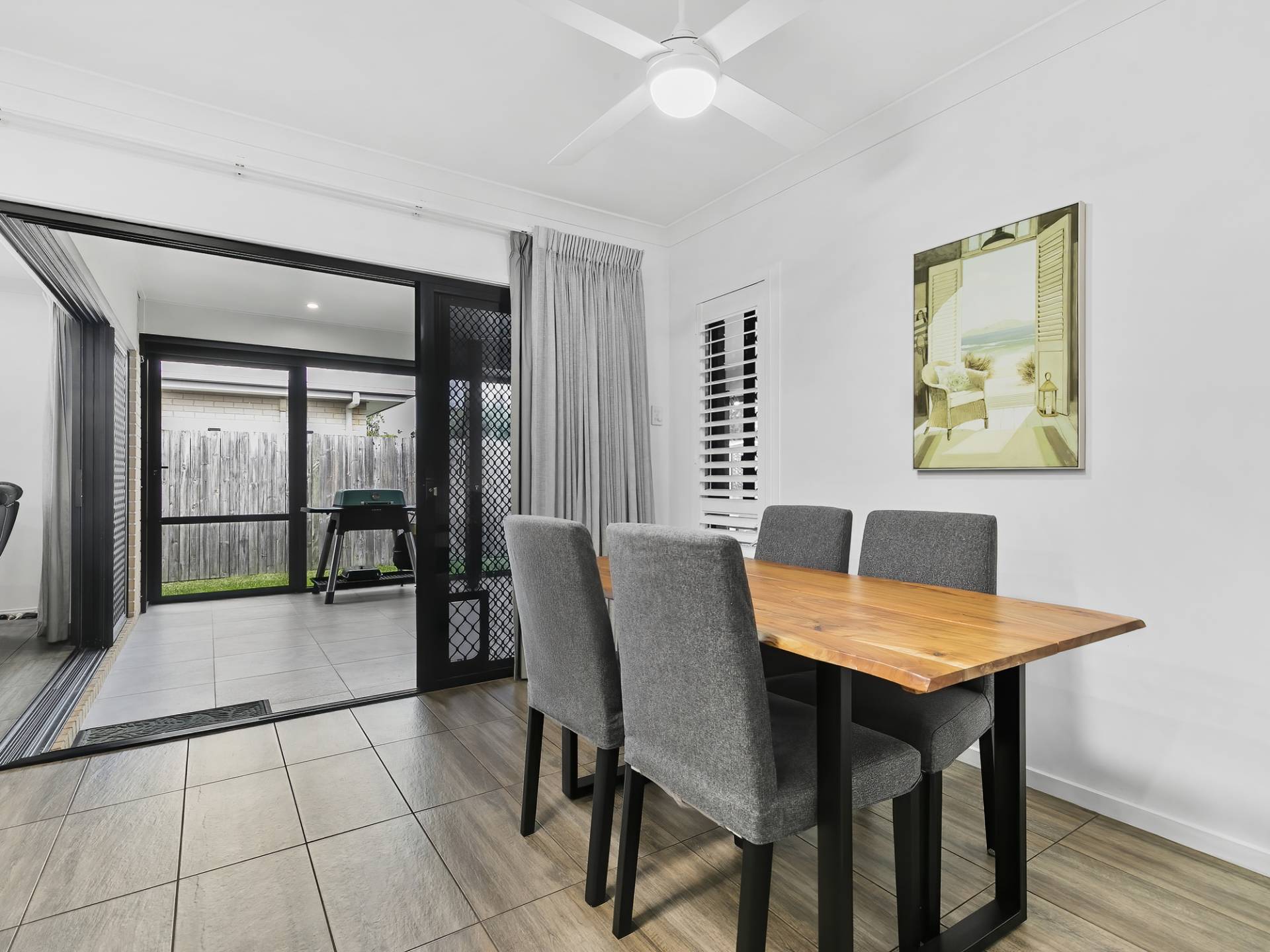 The dining area sits adjacent to the kitchen creating a cosy space for family meals.