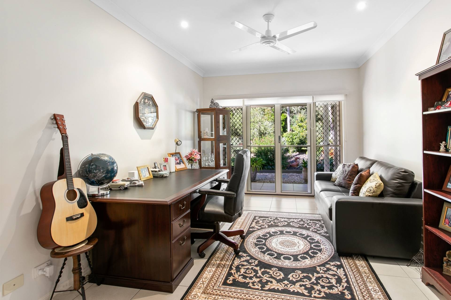 Off from the main living area is a beautifully appointed study, the ideal place to work from home as you look out across the front garden aspect through large sliding glass doors. Double French internal entry doors beautifully complete this space.