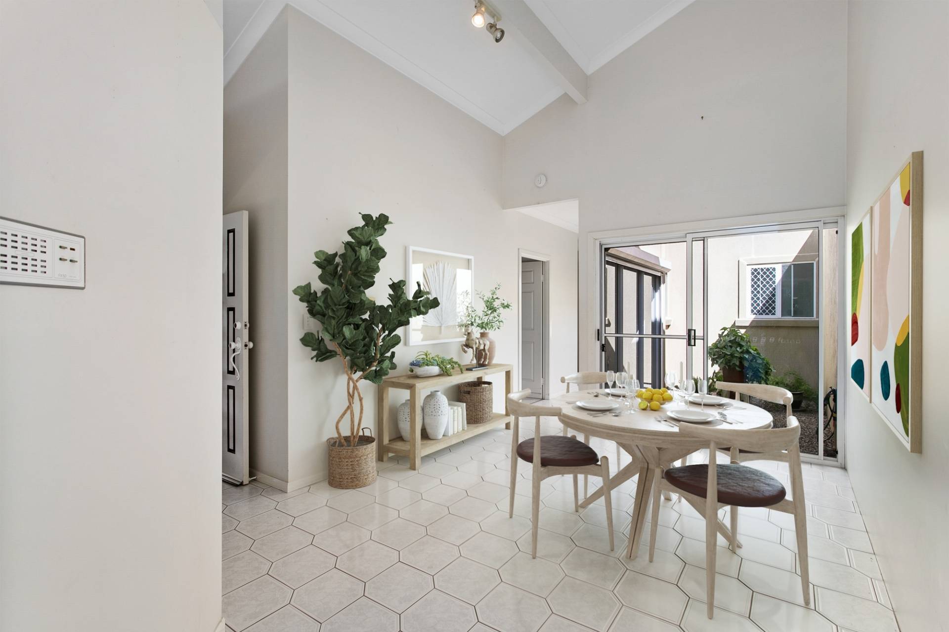 This home has been cleverly zoned with the air-conditioned open plan living area combining the kitchen and living area at the front of the home. A separate dining area has a rather unique open-air atrium as the backdrop, surrounded by large windows and accessed by a sliding glass door. Roll down security shutters complete this space.