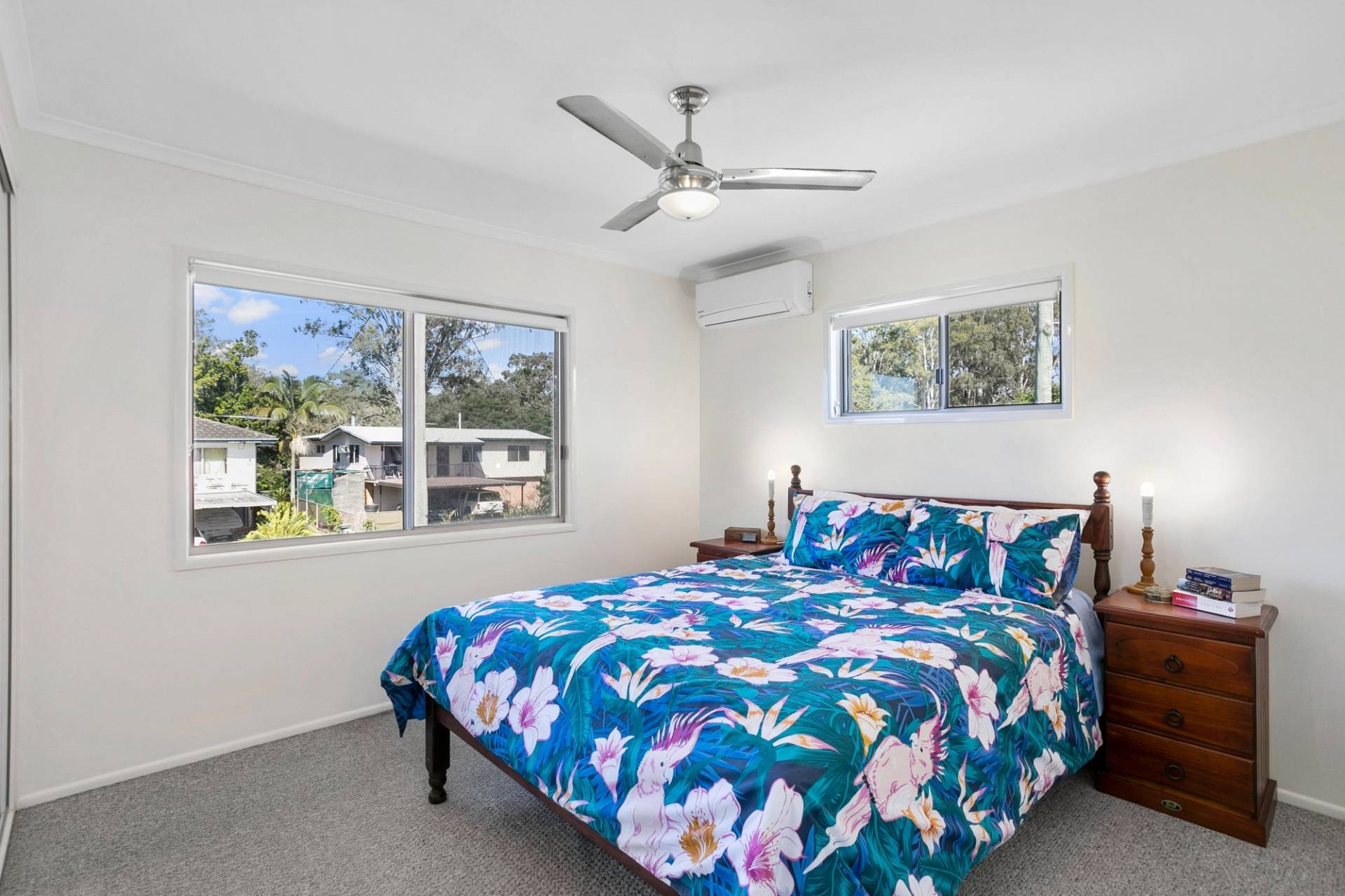 Enter the main living space via the beautiful timber internal staircase where you’ll find the formal lounge room, kitchen and separate dining area, as well as three bedrooms, a newly installed bathroom (with floor to ceiling tiling) and separate toilet. The master bedroom is air-conditioned as is a second upstairs bedroom and each have ceiling fans, carpeting and built-in-robes.