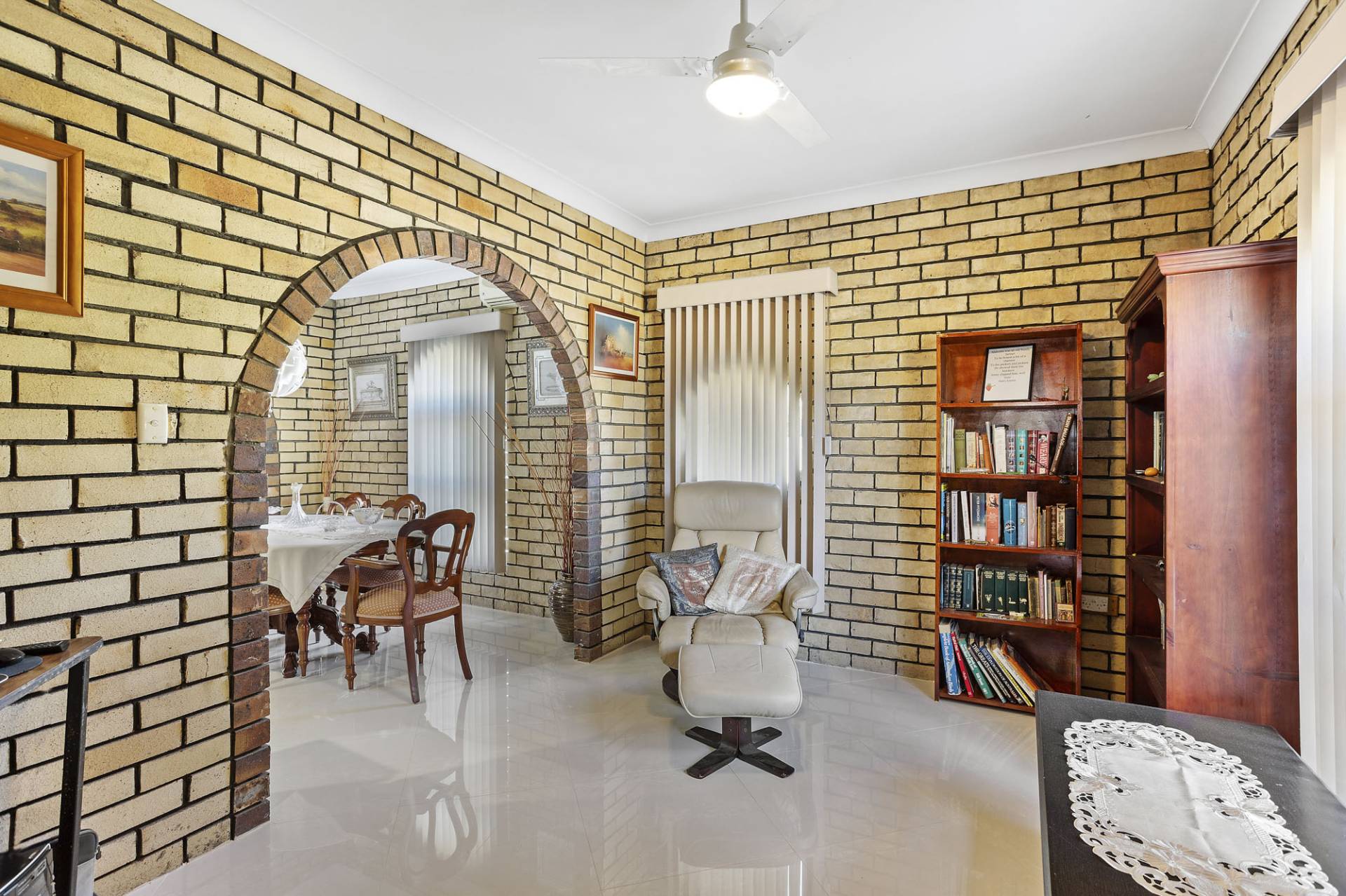 The good sized kitchen is most welcoming and features a dishwasher, gas cooktop, double sink, skylight and plenty of storage. An airconditioned dining area sits adjacent to the kitchen and leads onto a second living space, currently being used as a home office.