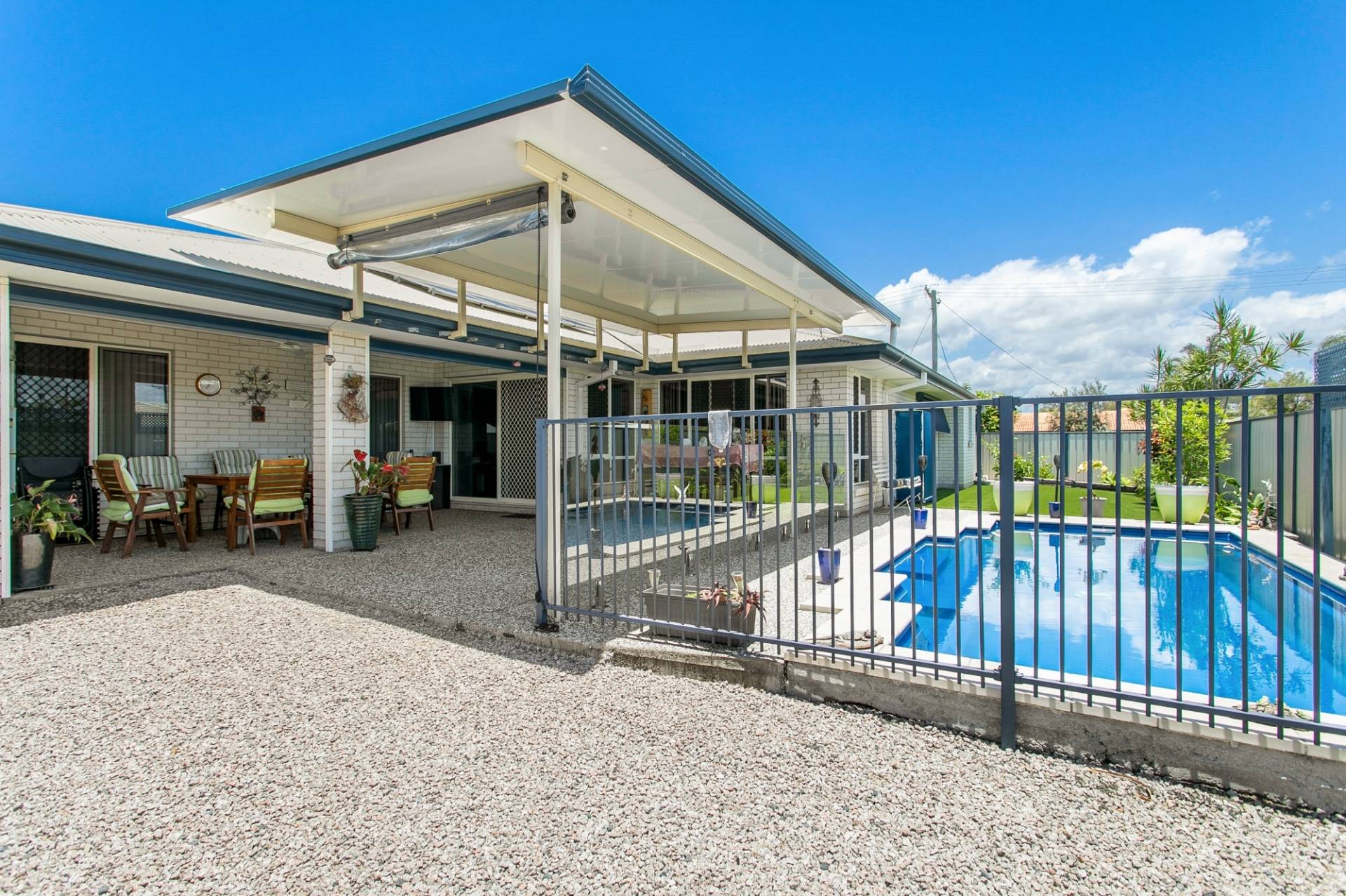 • Two covered outdoor areas with fitted outdoor blinds